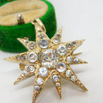 Victorian Sterling Silver Gilt & Paste Set Starburst Drop Pendant Antique c1880