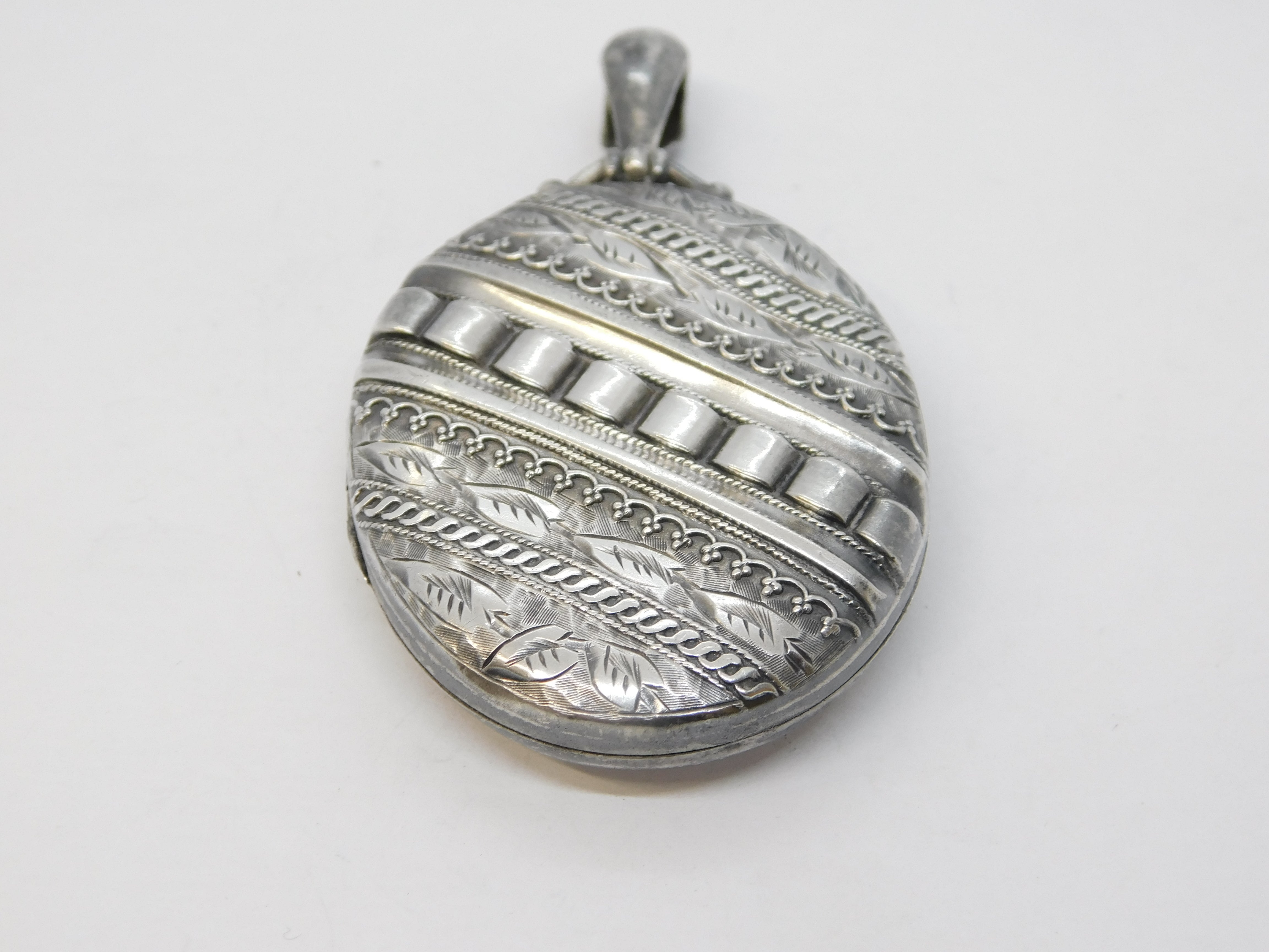 Victorian Sterling Silver Ivy Leaf Sweetheart Locket Pendant Antique c1860