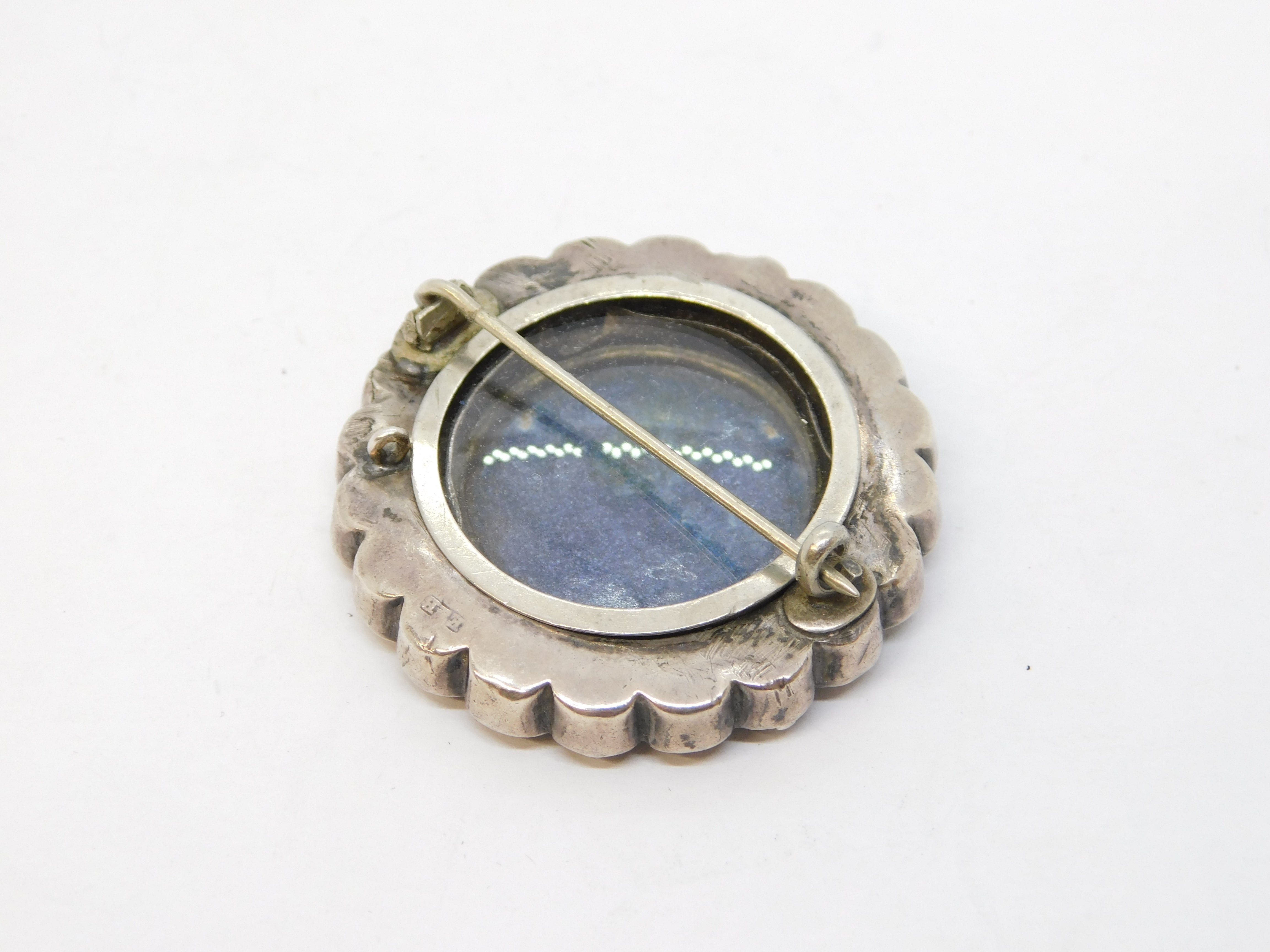 Victorian Sterling Silver Lily Flower Mourning Locket Brooch Antique c1880