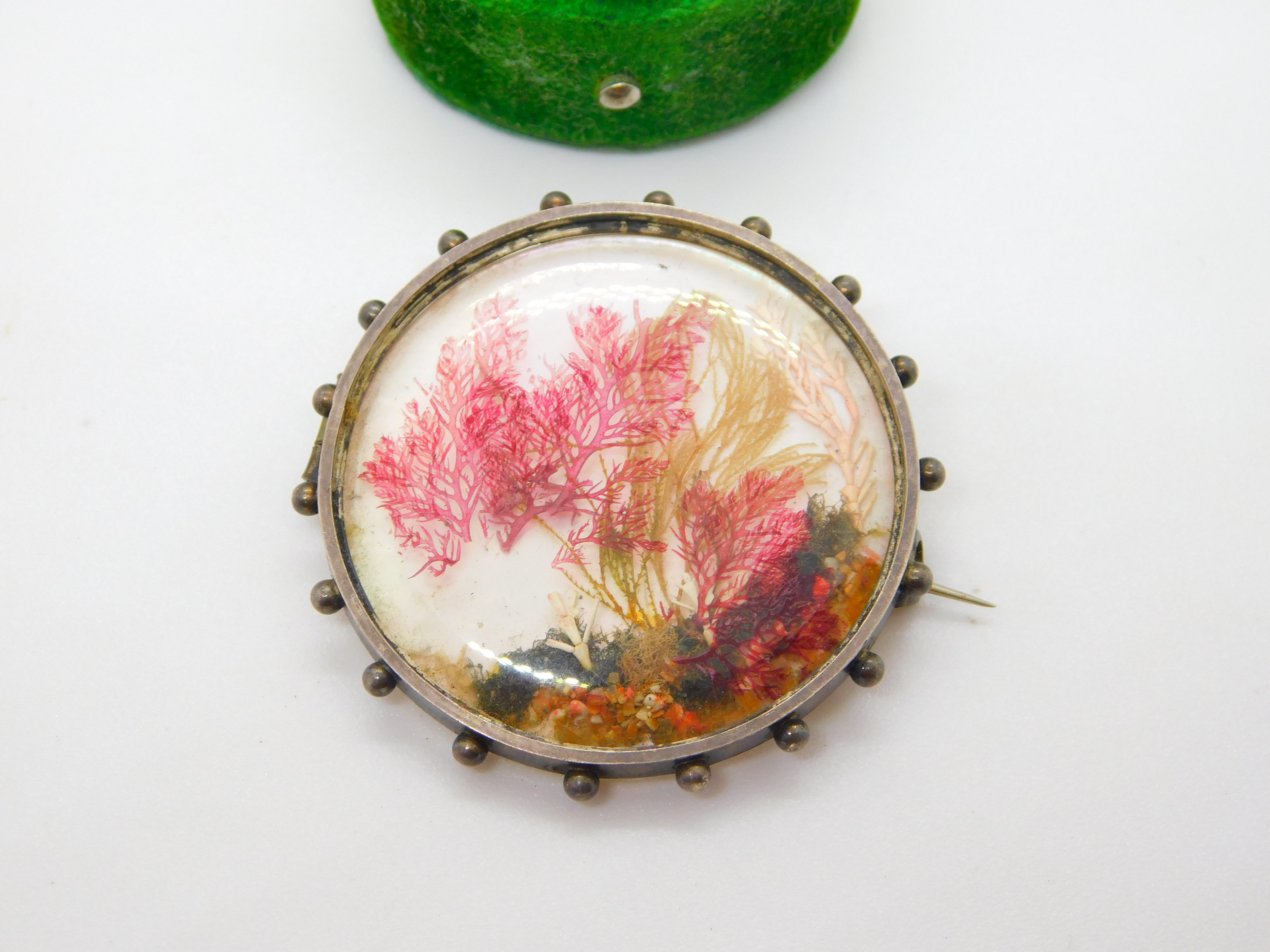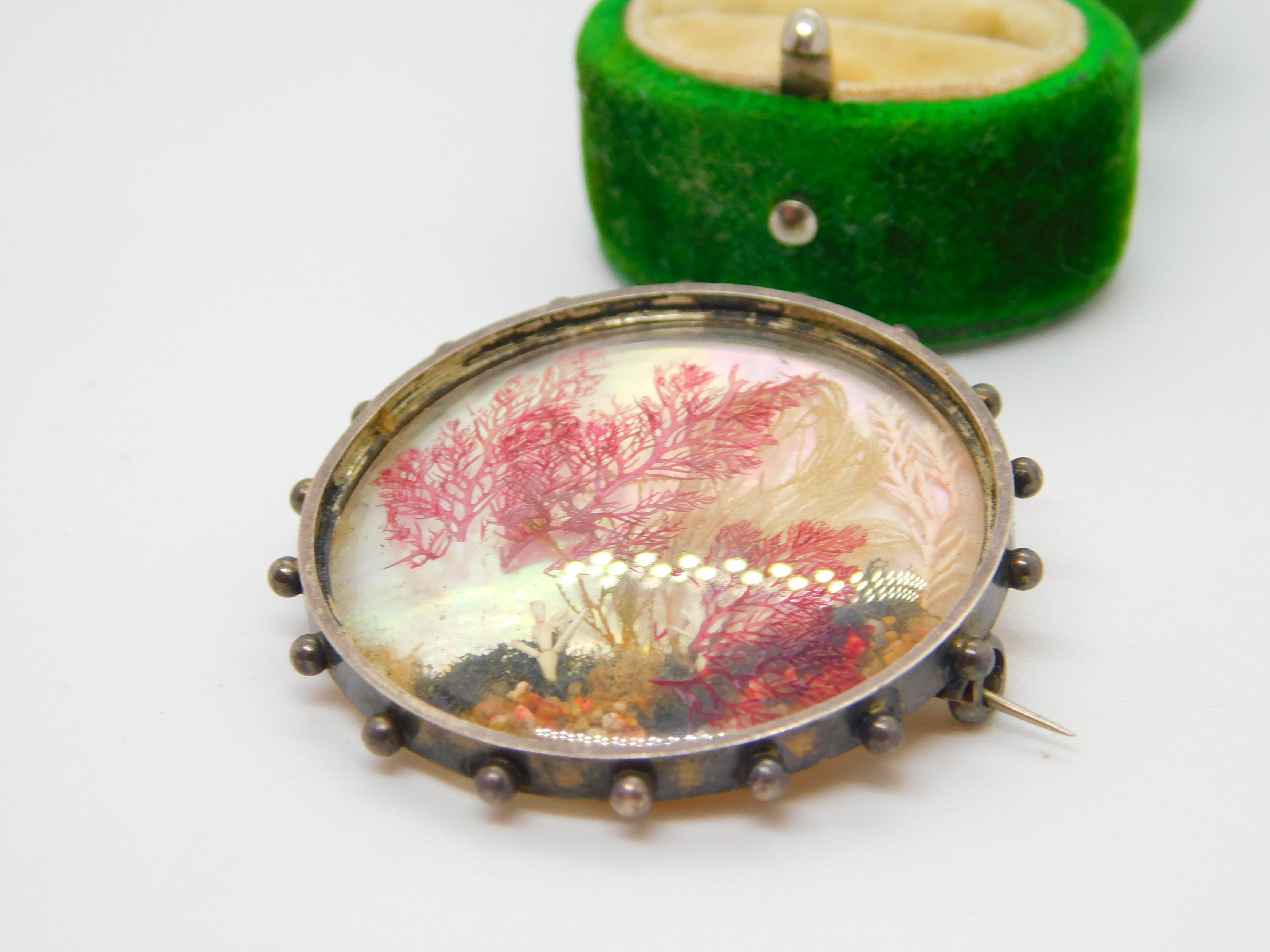 Victorian Sterling Silver Marine Seabed Diorama on Pearl Brooch Antique c1860