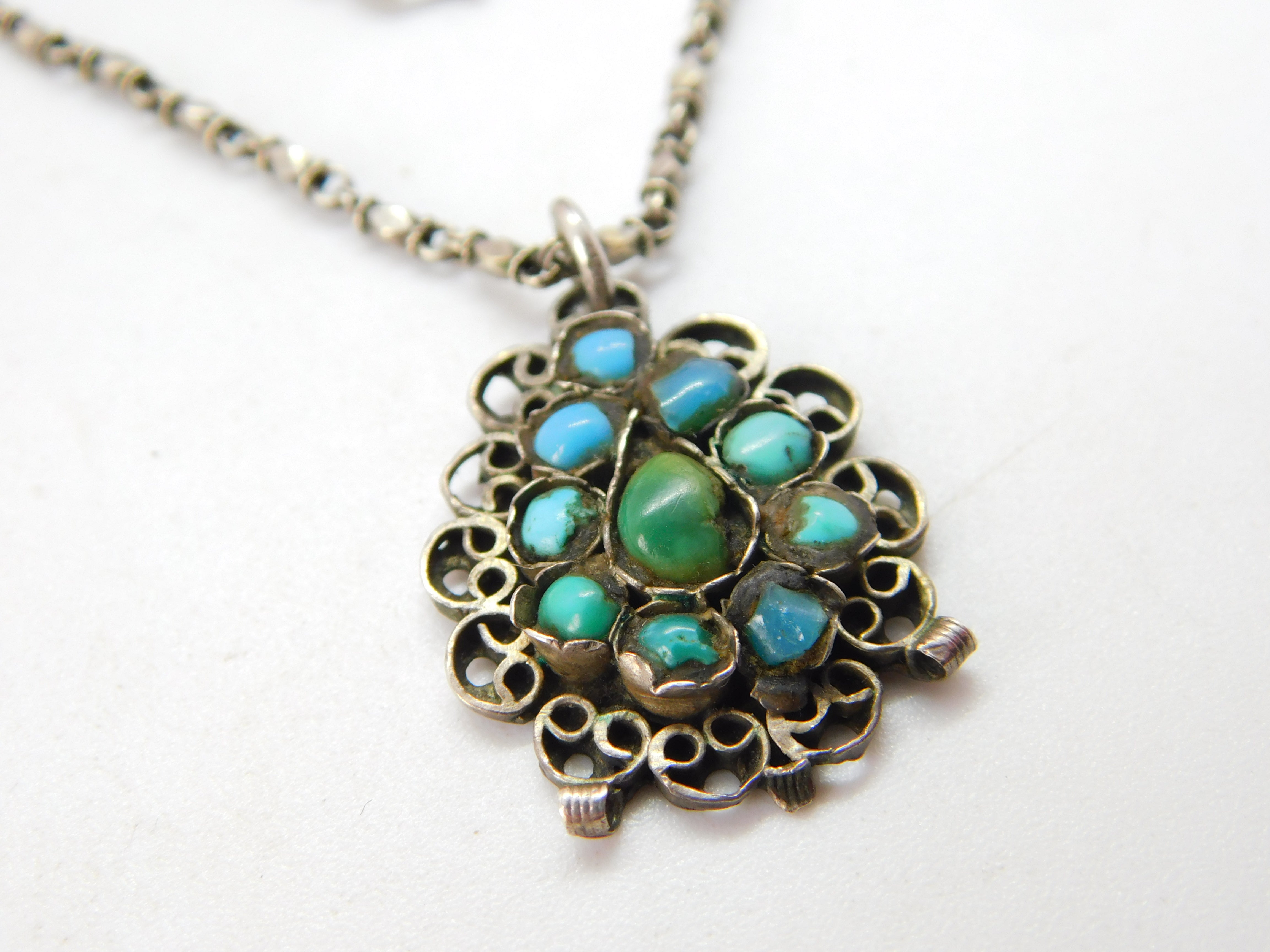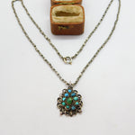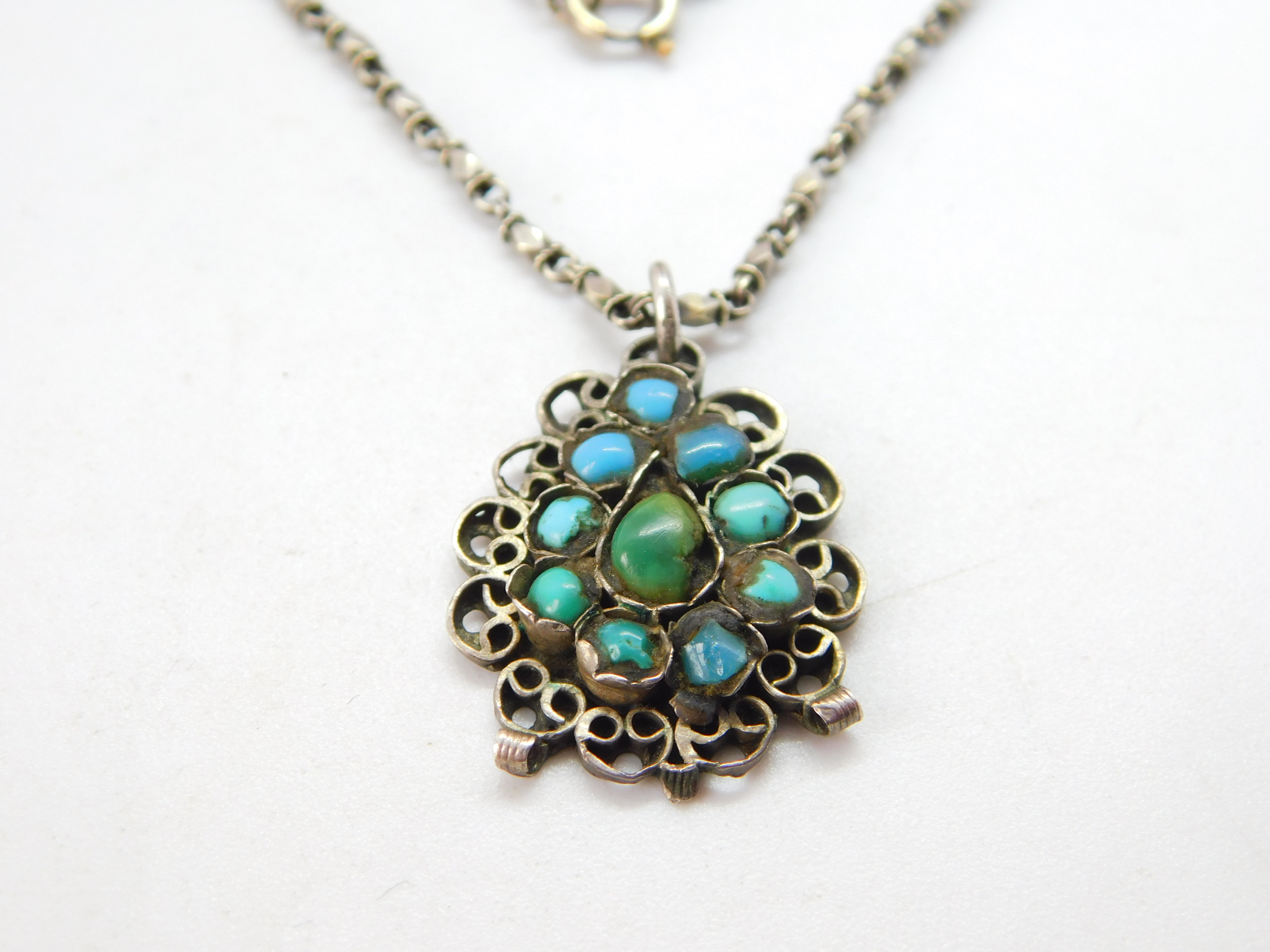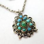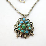 Victorian Sterling Silver Natural Turquoise Set Floral Drop Necklace c1880