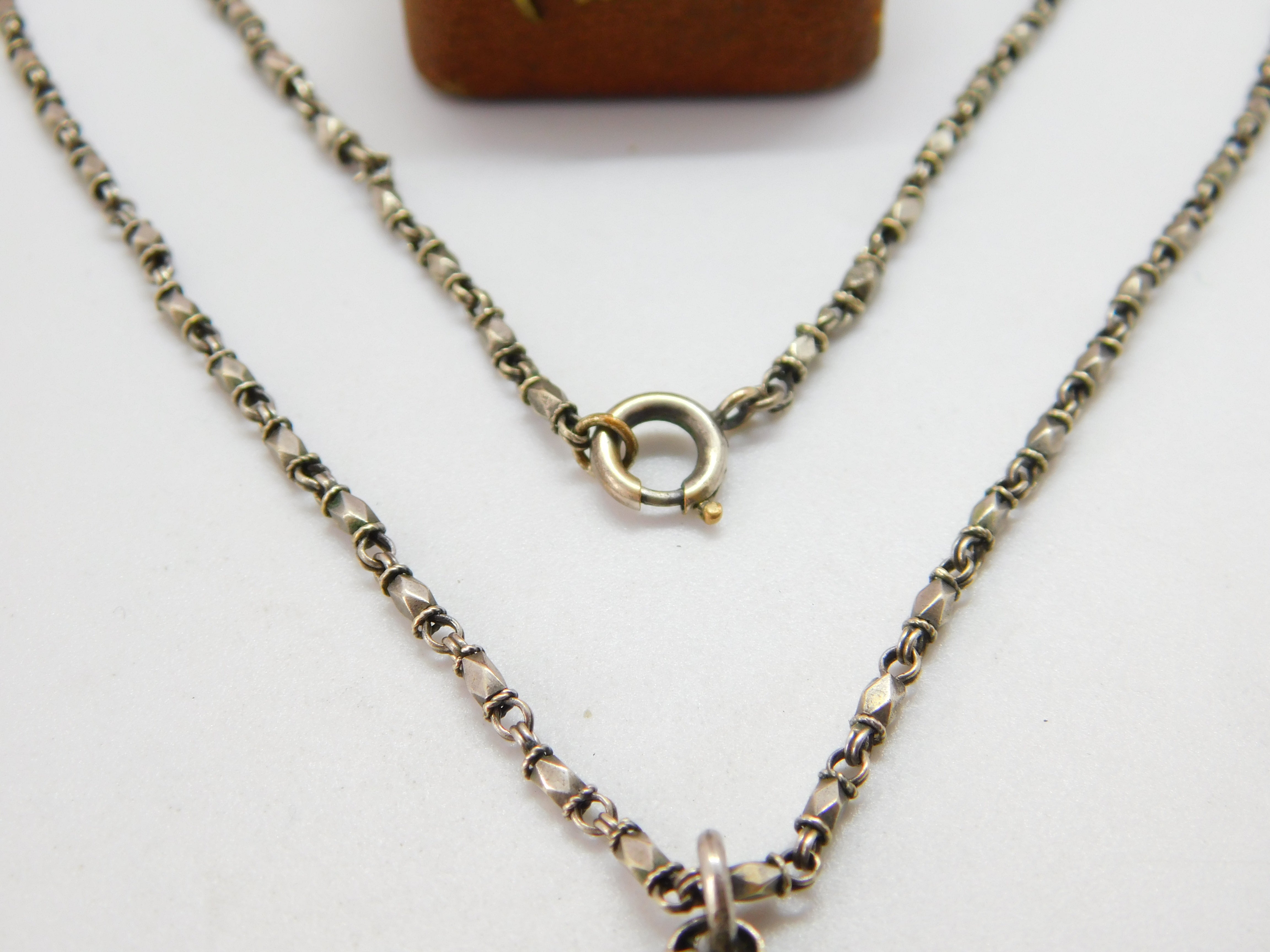 Details: A fantastic and wonderfully designed antique Victorian sterling silver floral pattern drop pendant necklace set with natural turquoise c1880. The silver has been XRF tested as it is unmarked. Possibly Indian in origin. This is a wonderful item that would make a perfect gift or addition to any collection. The BOX pictured is for PRESENTATION ONLY and is NOT included in the listings but used to frame the pictures unless specifically stated otherwise.