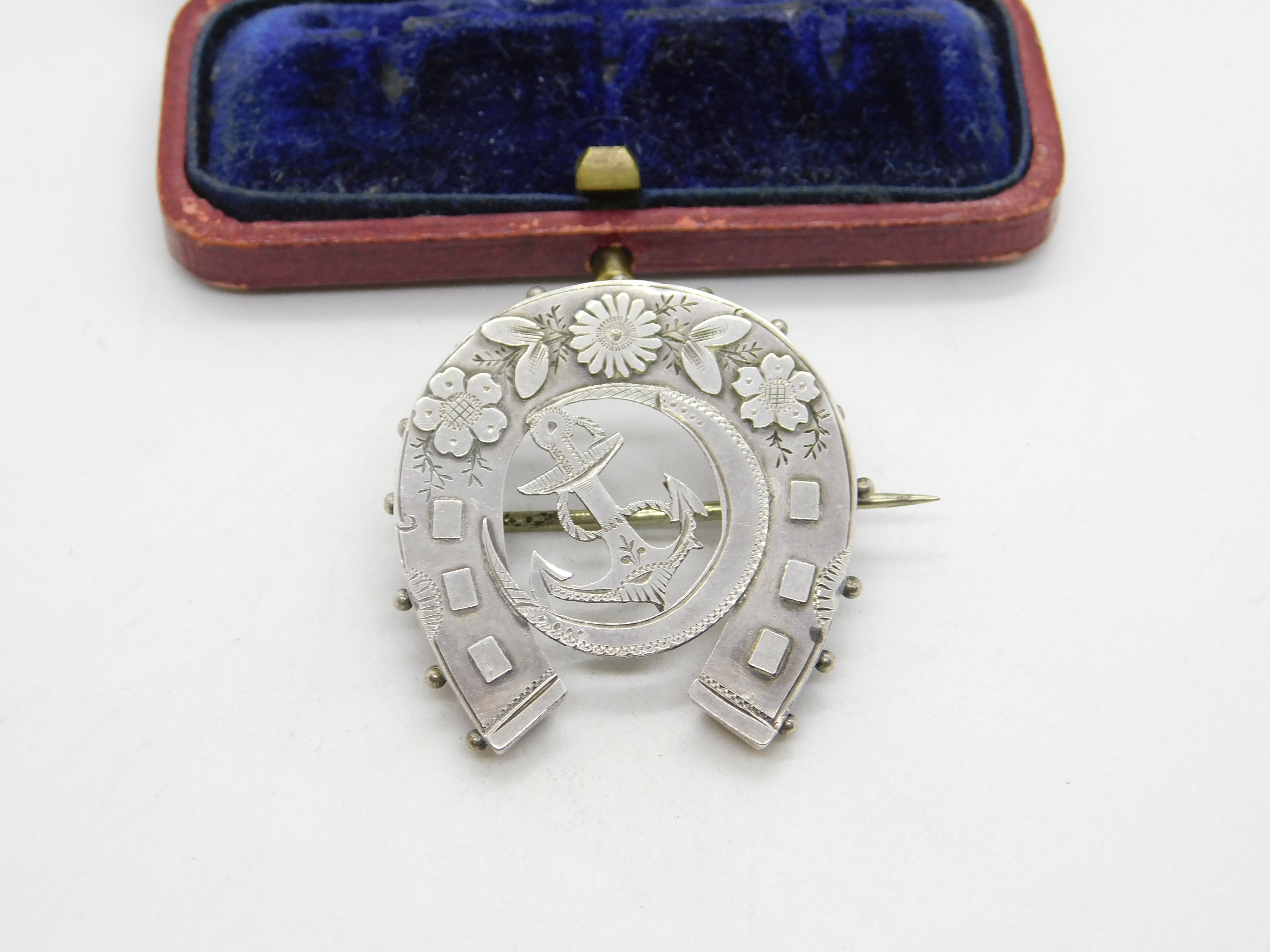 Victorian Sterling Silver Anchor of Hope in Crescent Moon Brooch 1891 Birmingham