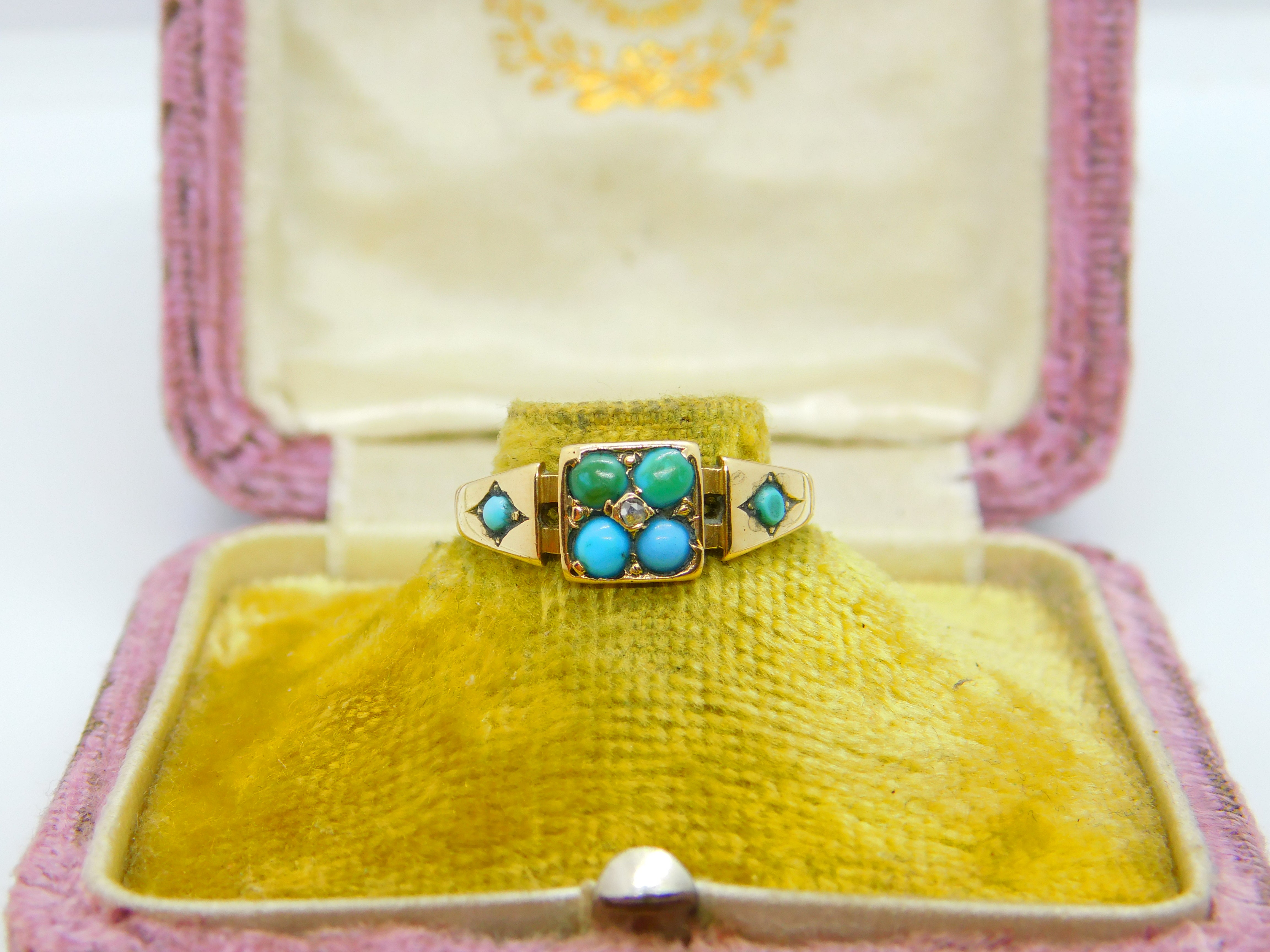 Victorian 15ct Yellow Gold, Turquoise & Diamond Ring 1876 Birmingham Antique