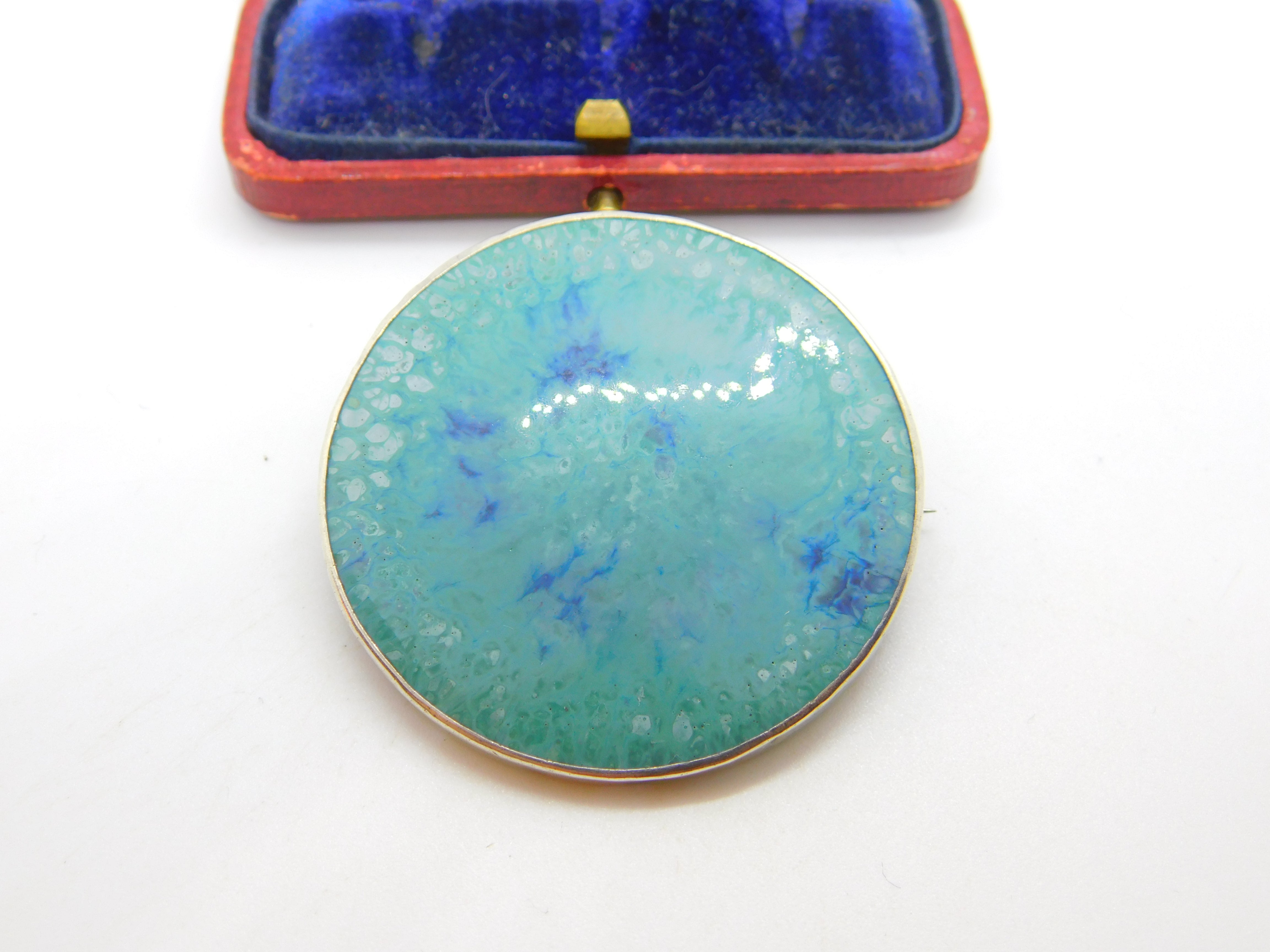 Arts & Crafts Sterling Silver Mounted Ruskin Blue Pottery Brooch c1900 Victorian