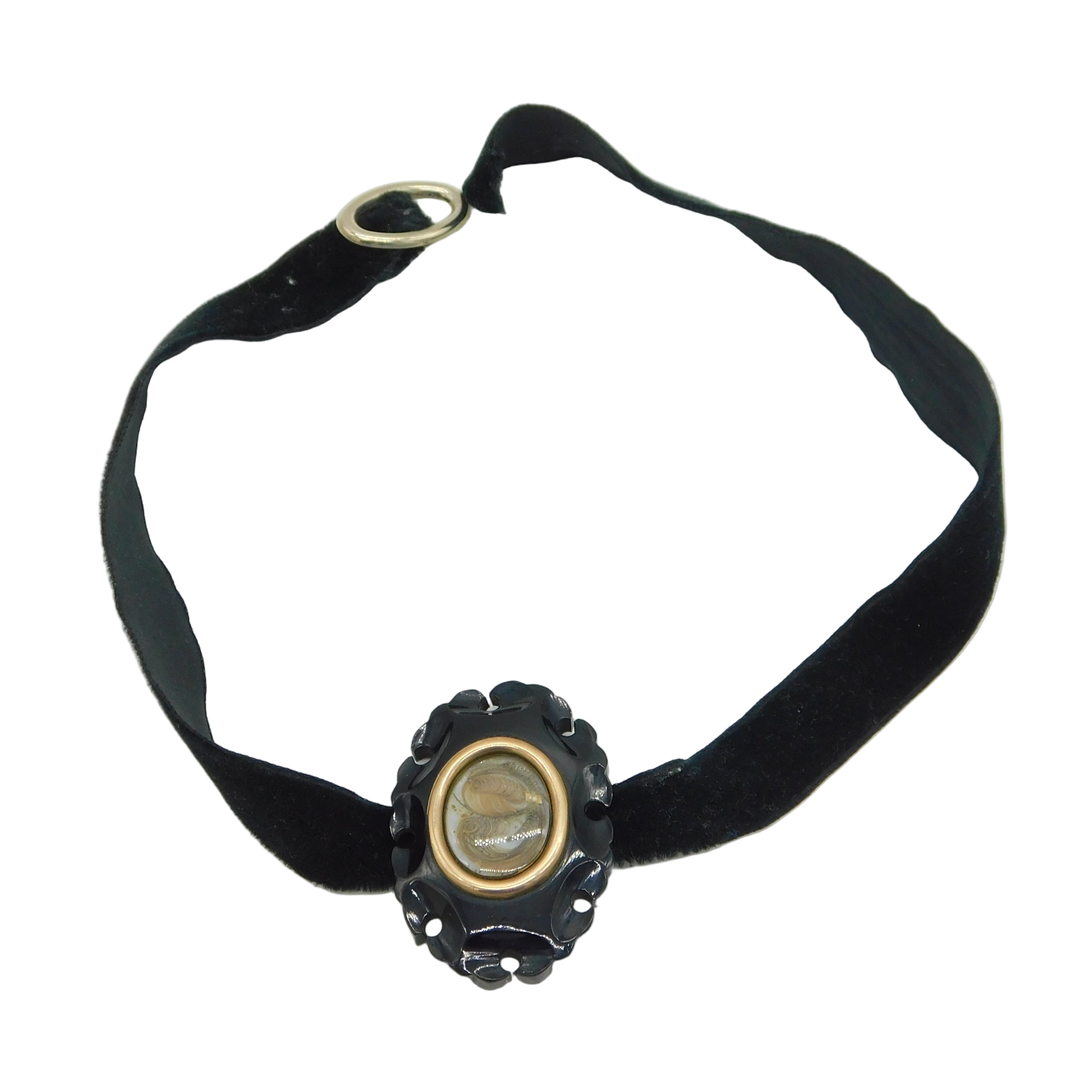 Victorian 9ct Gold, Whitby Jet, Hair Set Mourning Collar Pendant Antique c1850