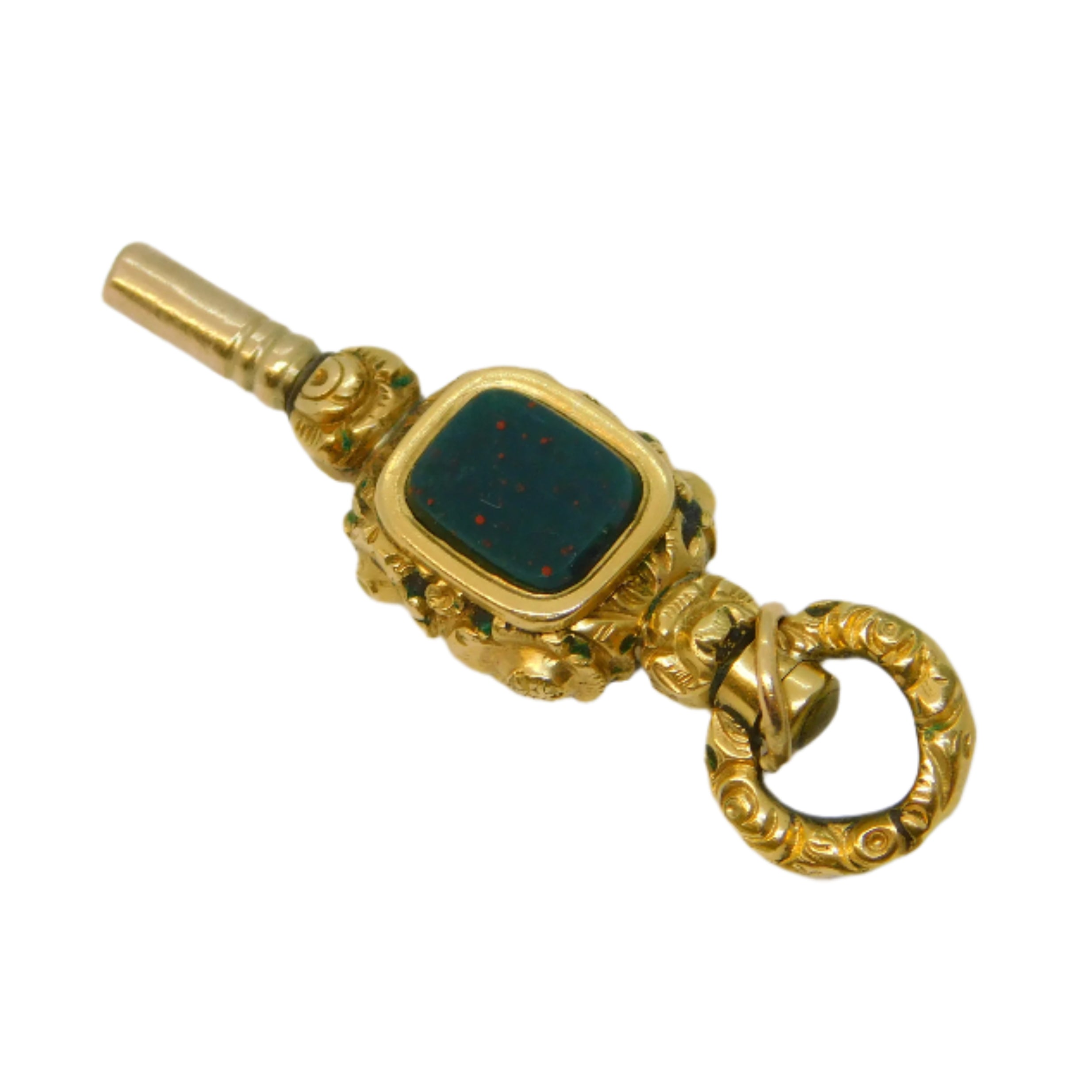 Victorian Yellow Metal, Bloodstone & Chalcedony Watch Key Antique c1860