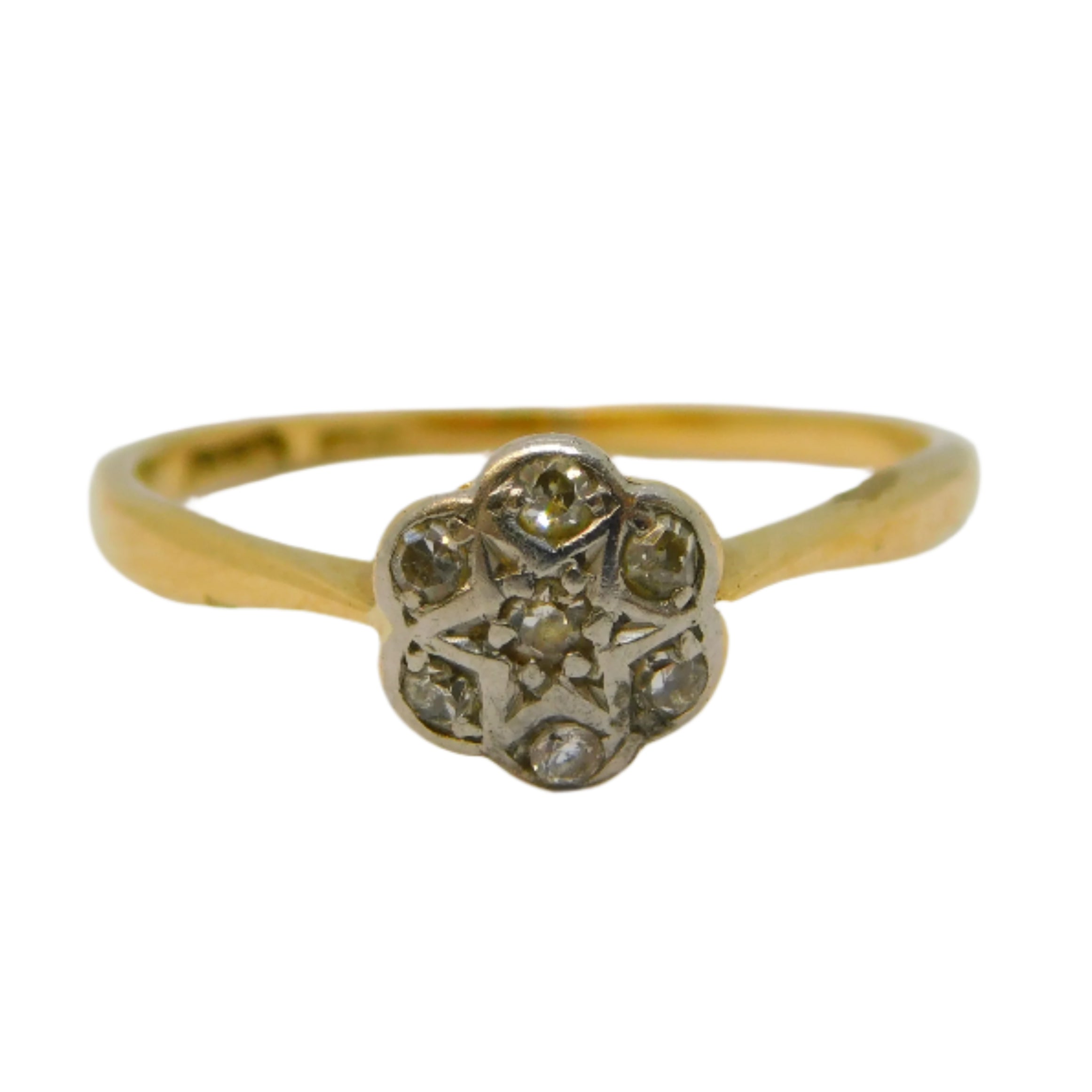 Victorian 18ct Yellow Gold Old-Cut Diamond Daisy Cluster Ring Antique c1890