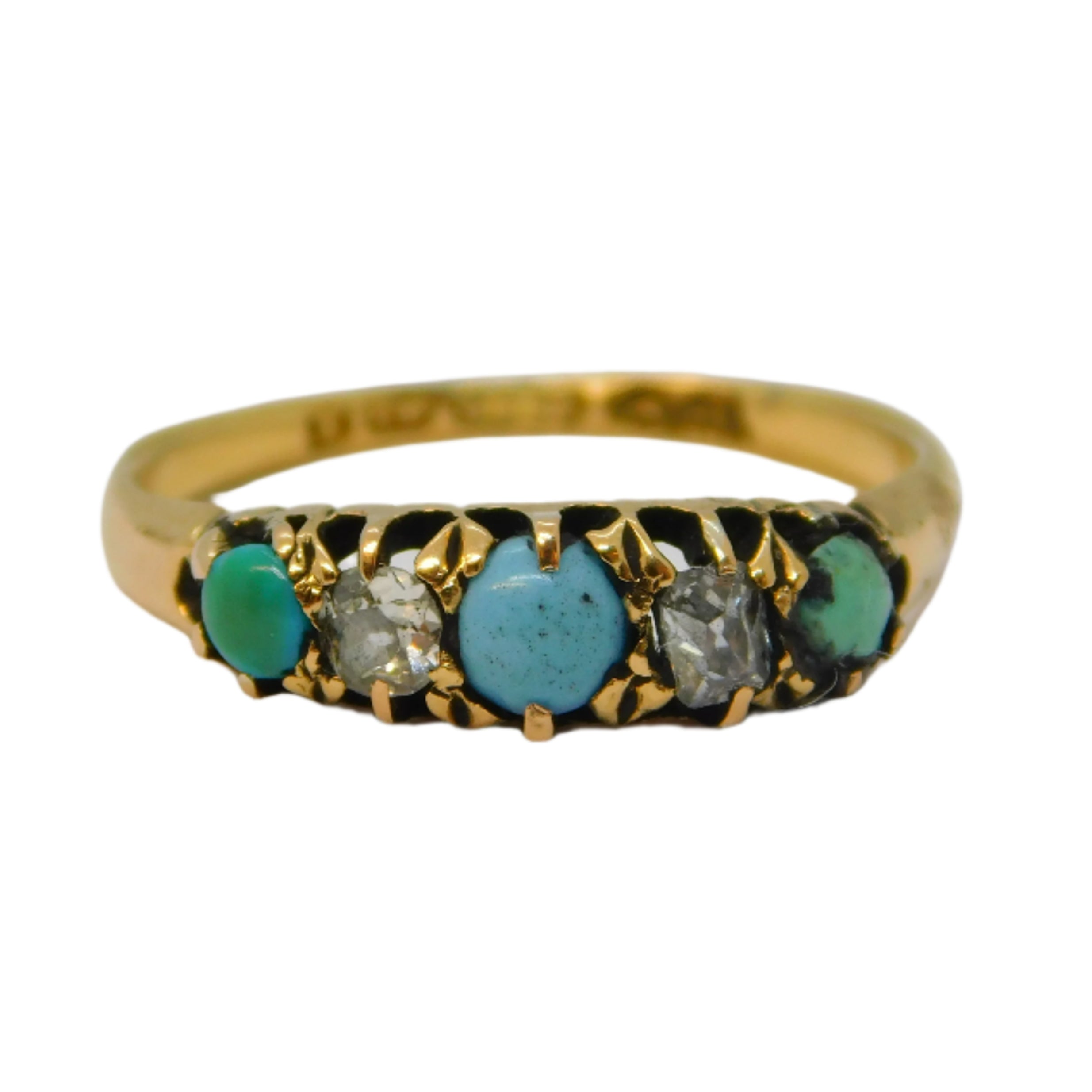 Victorian 18ct Gold, 0.2ct Diamond, Turquoise Boat Ring Antique 1897 Birmingham