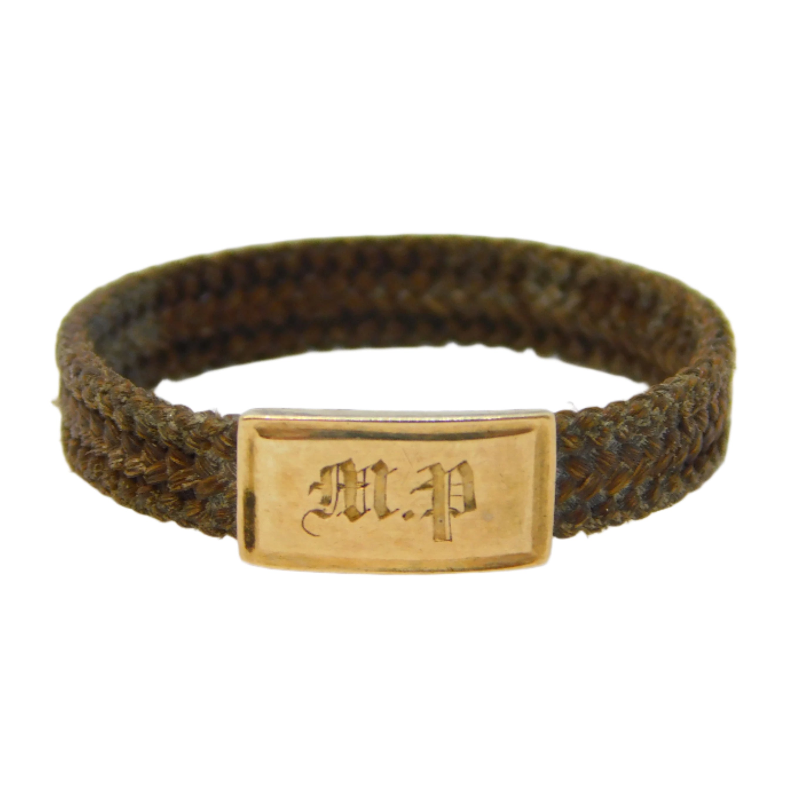 Victorian 9ct Yellow Gold Woven Hair Set Mourning Ring Antique c1840