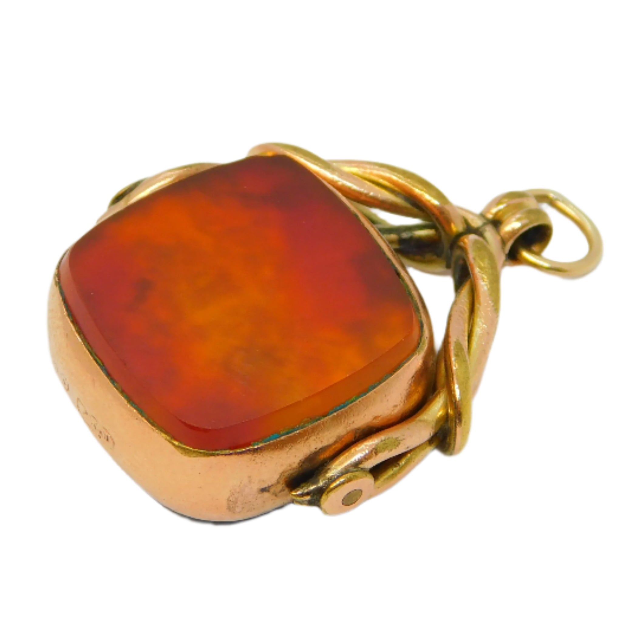 Victorian 9ct Rose Gold, Carnelian & Bloodstone Spinner Fob Pendant Antique c1890