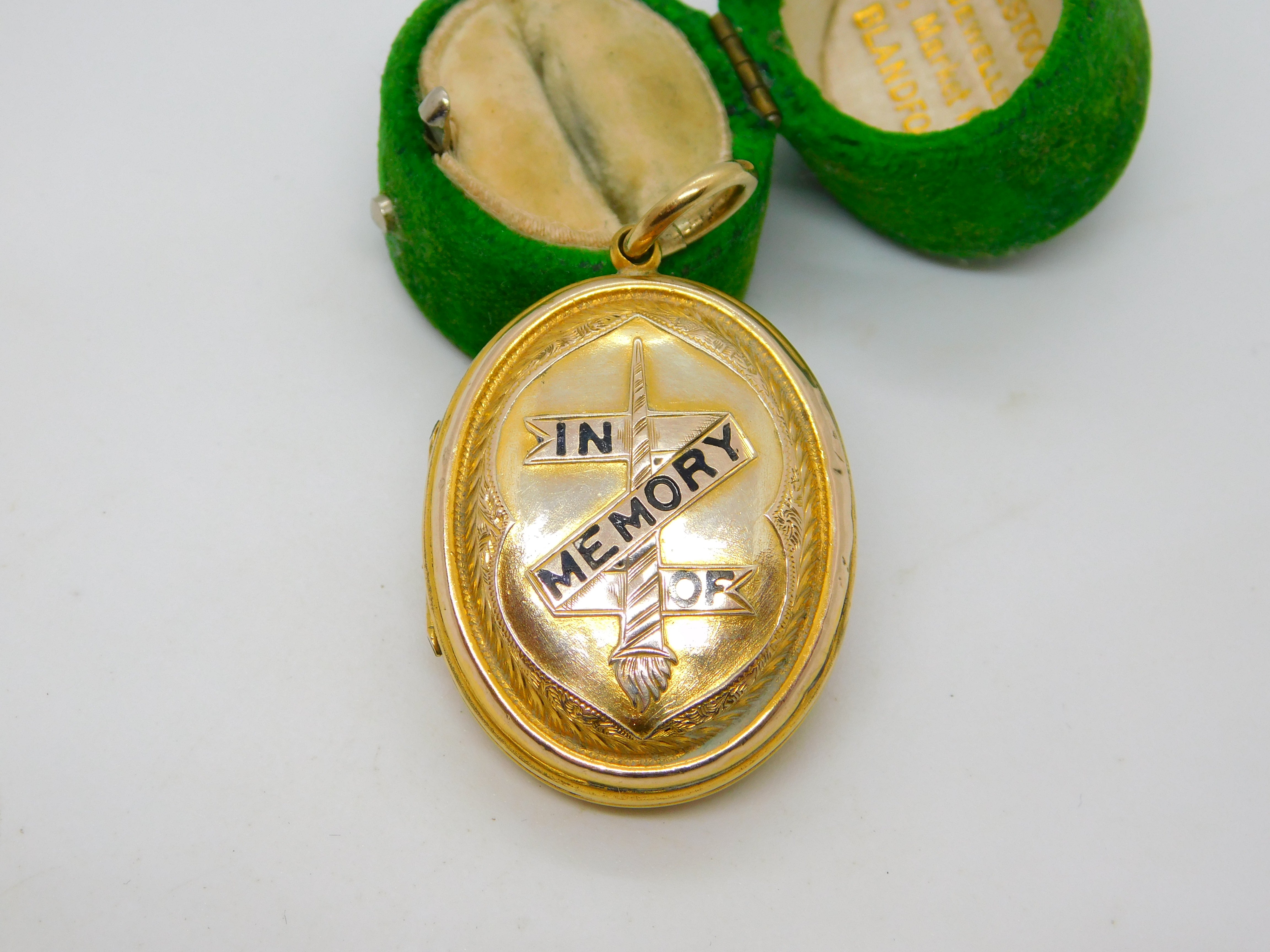 Victorian 9ct Gold Back & Front Enamel 'In Memory Of' Mourning Locket Antique c1860