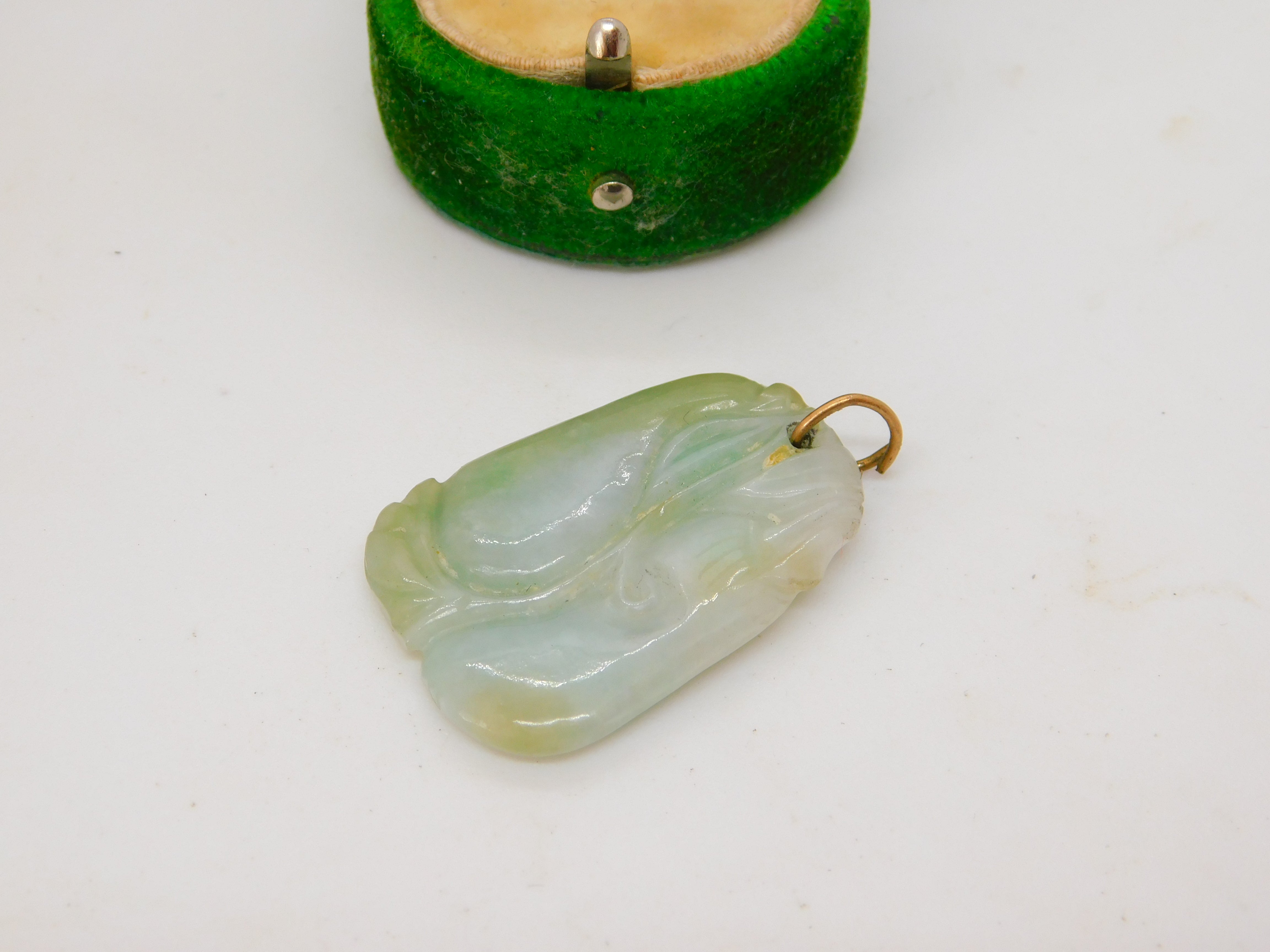Victorian 9ct Gold & Carved Apple Green Jade Mythical Drop Pendant Antique c1860