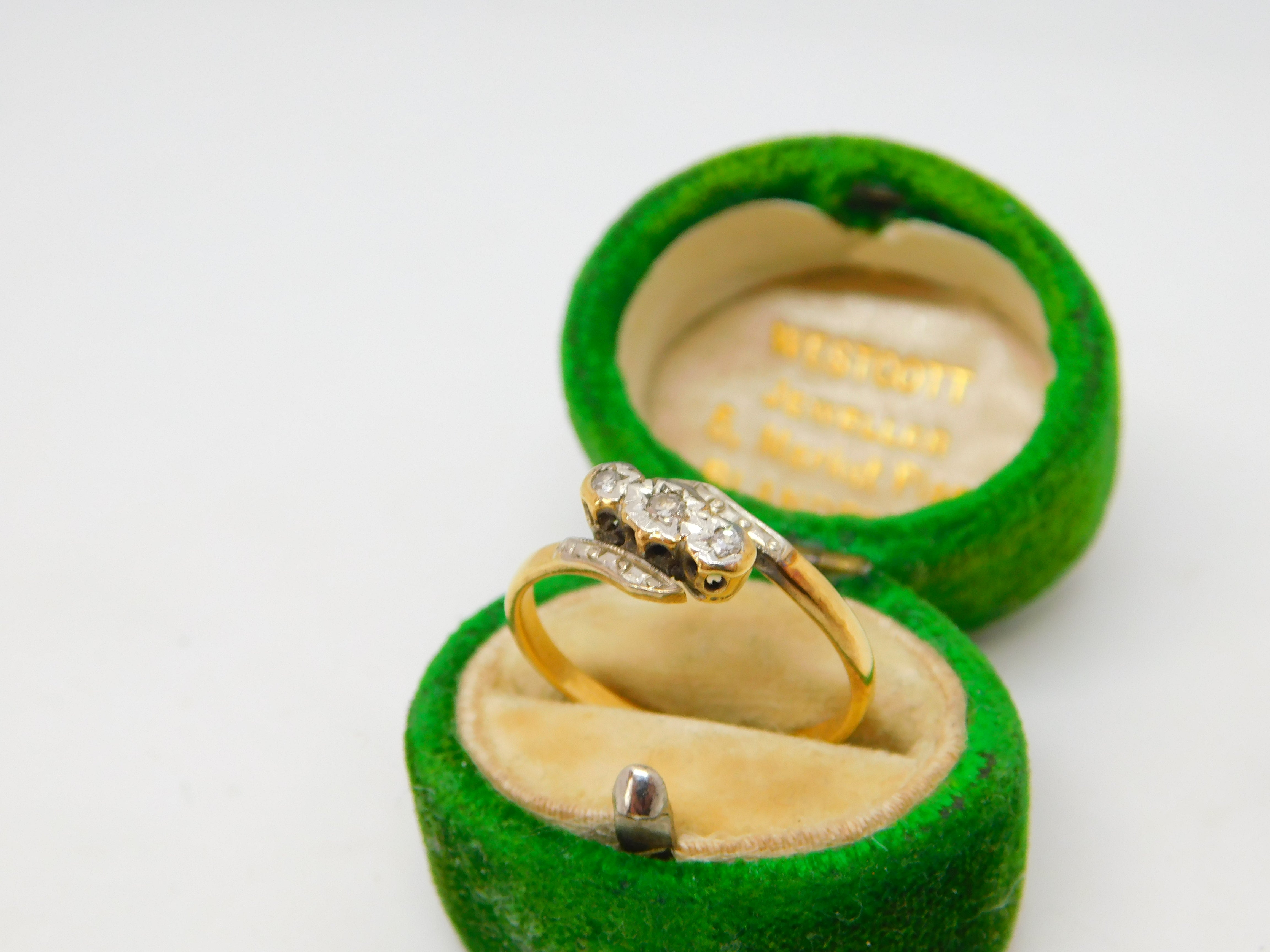 Victorian 18ct Yellow Gold & 0.1ct Diamond Crossover Ring Antique c1890