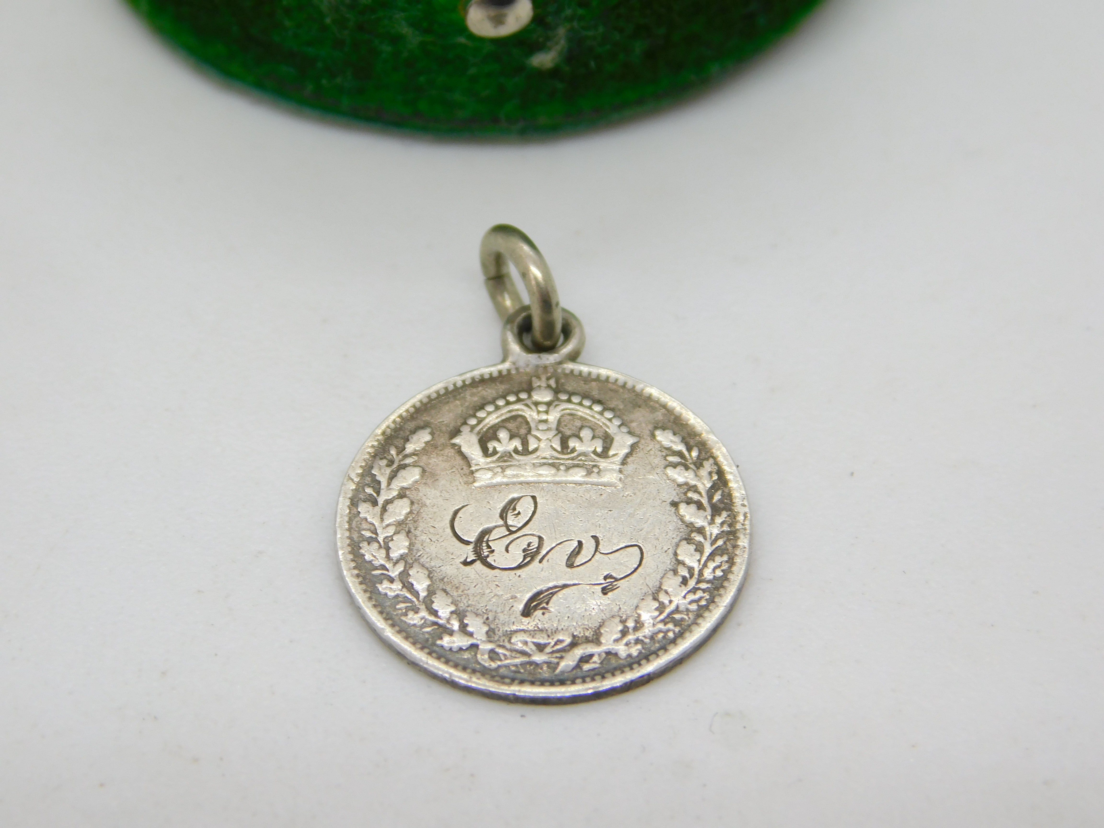 Victorian Sterling Silver Threepence Love Token Charm 'Erv' Antique c1890