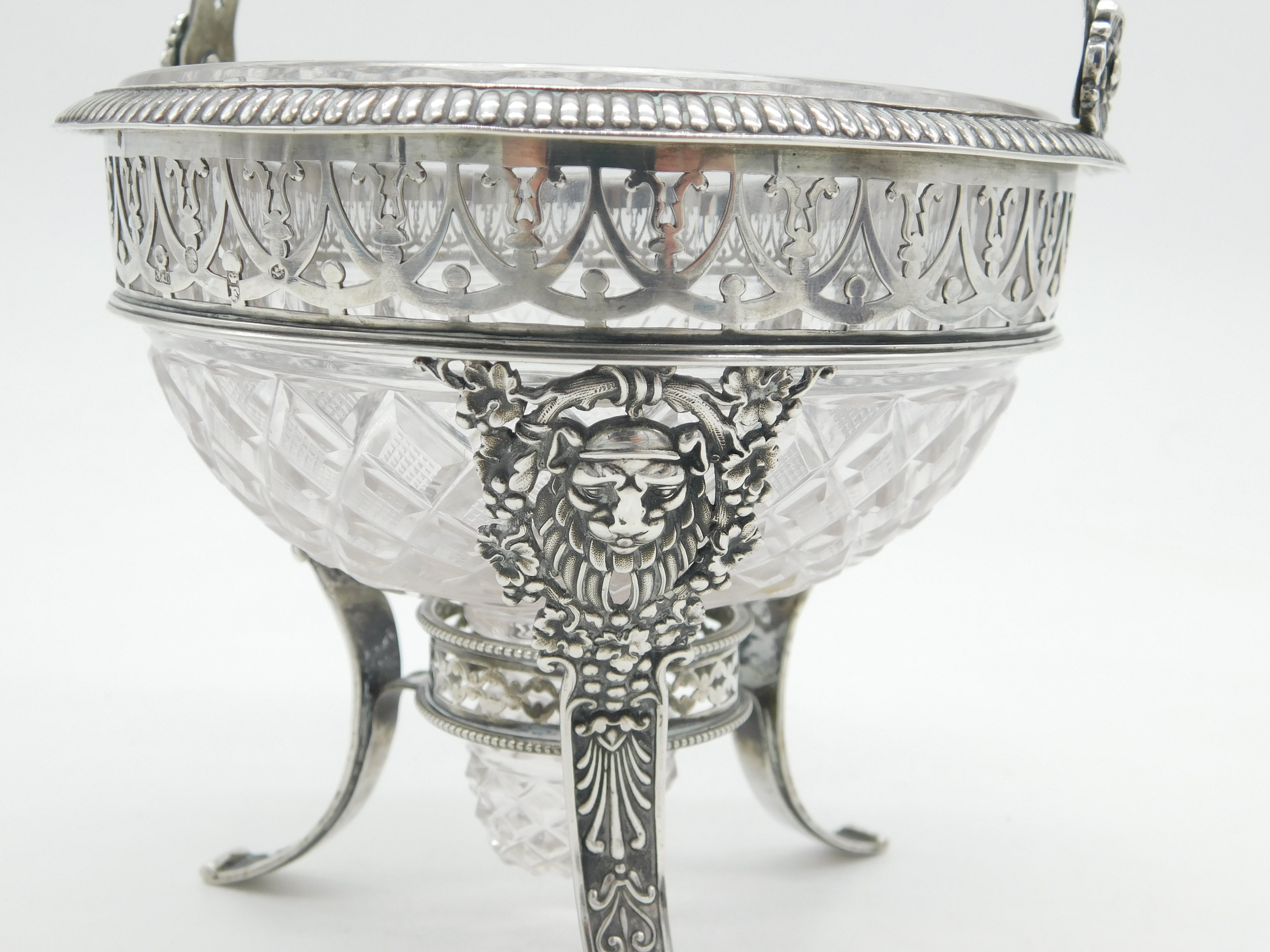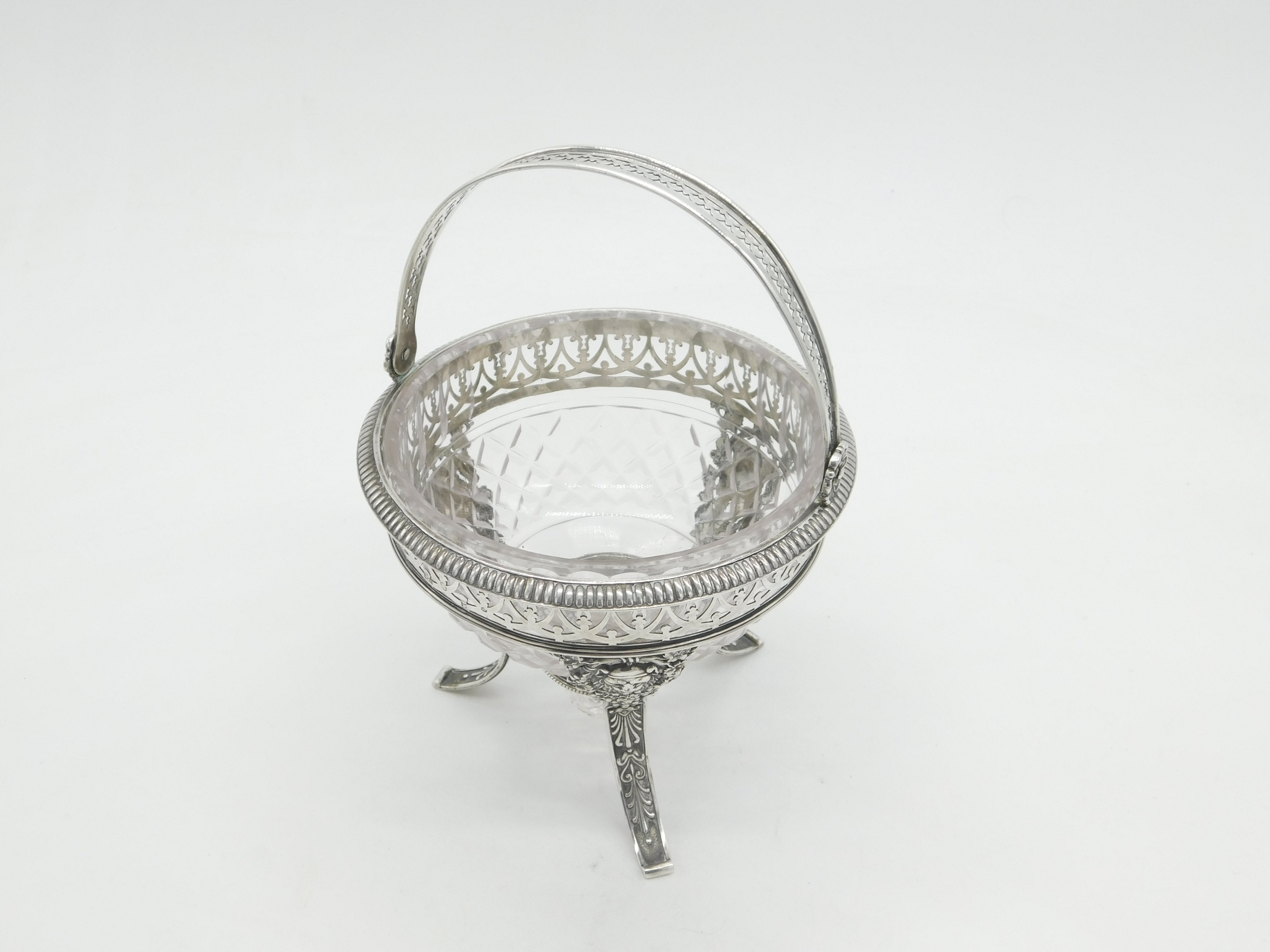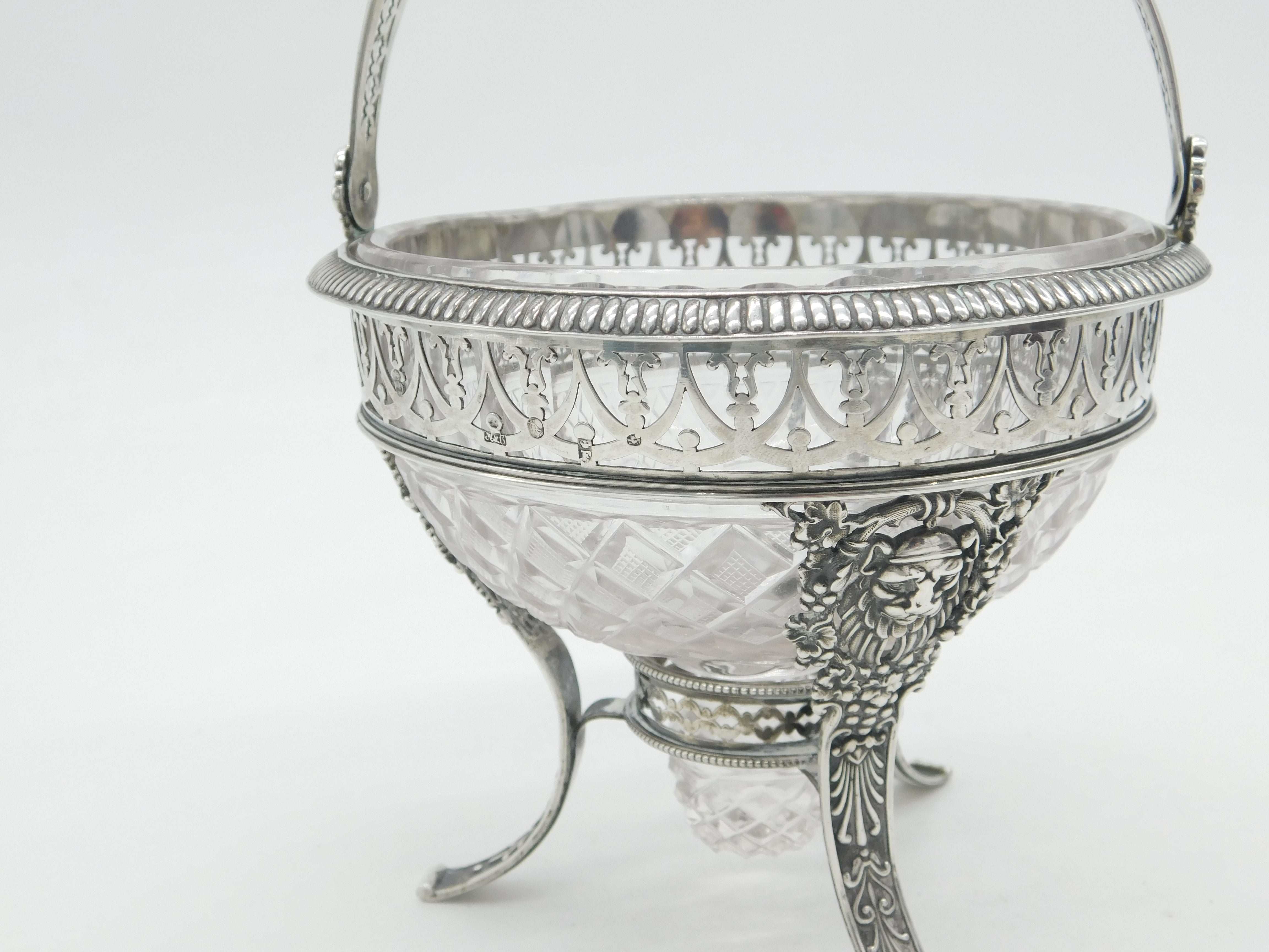 19th Century Dutch Sterling Silver & Cut Glass Swing Handle Basket Antique c1860