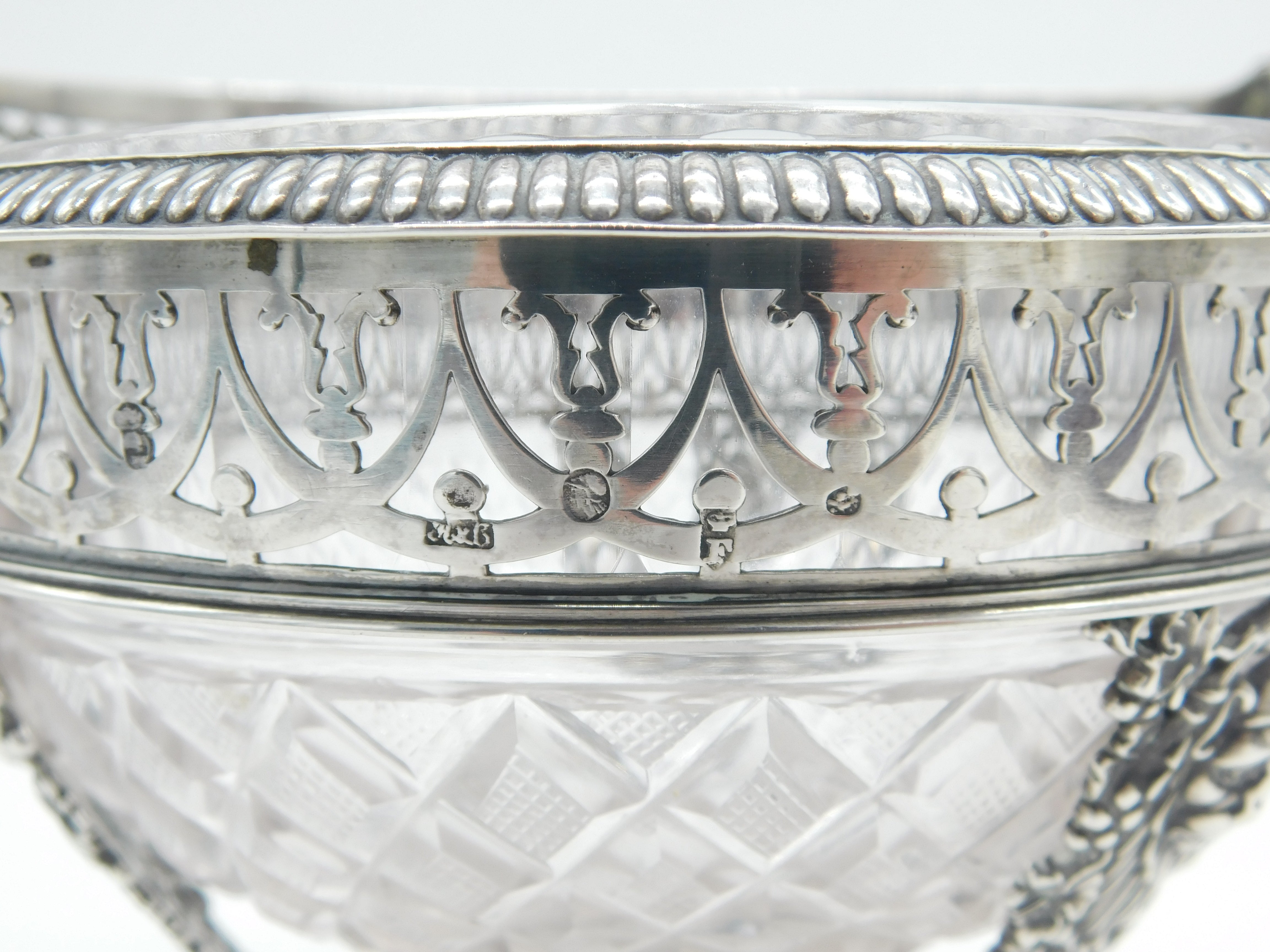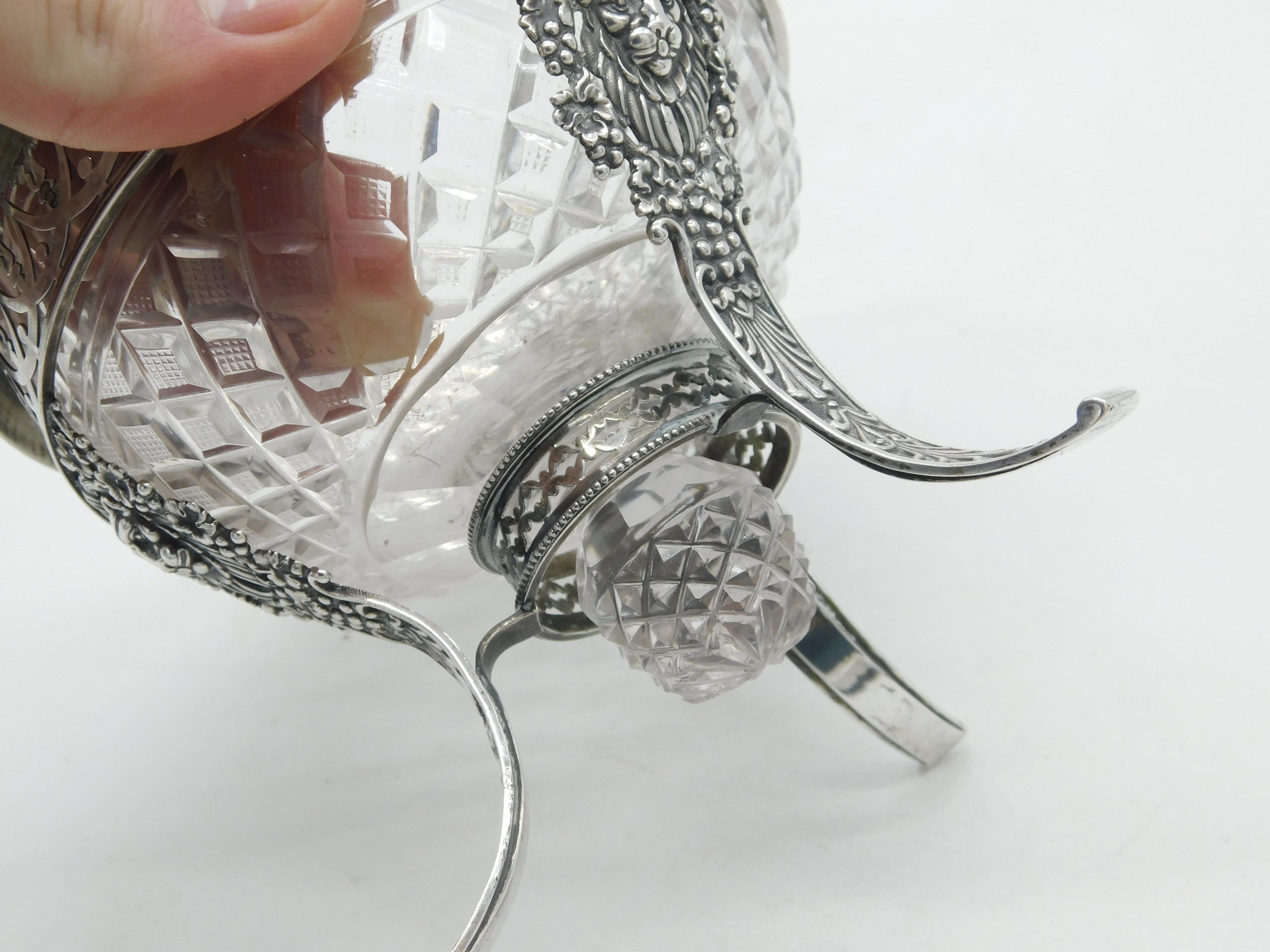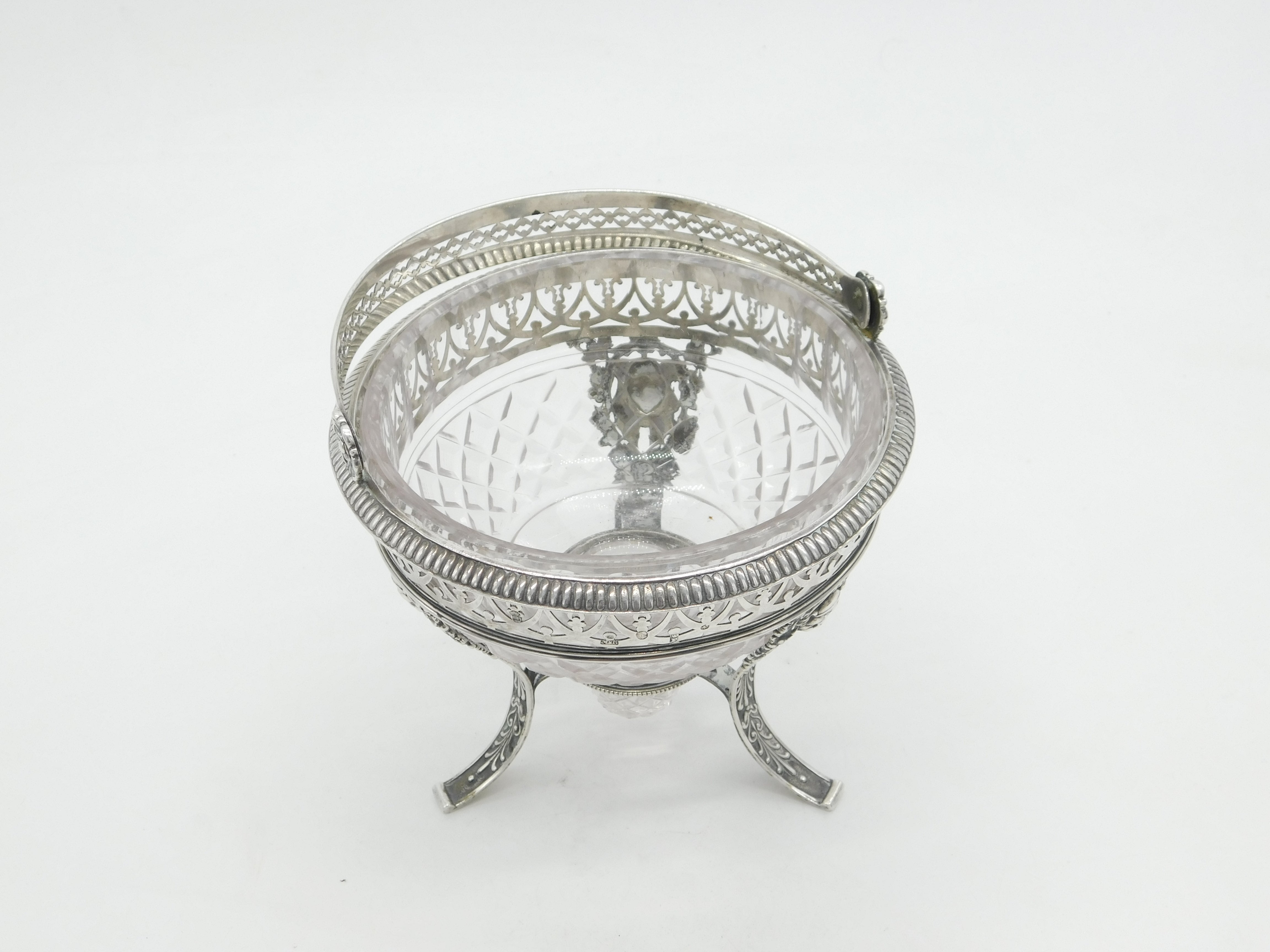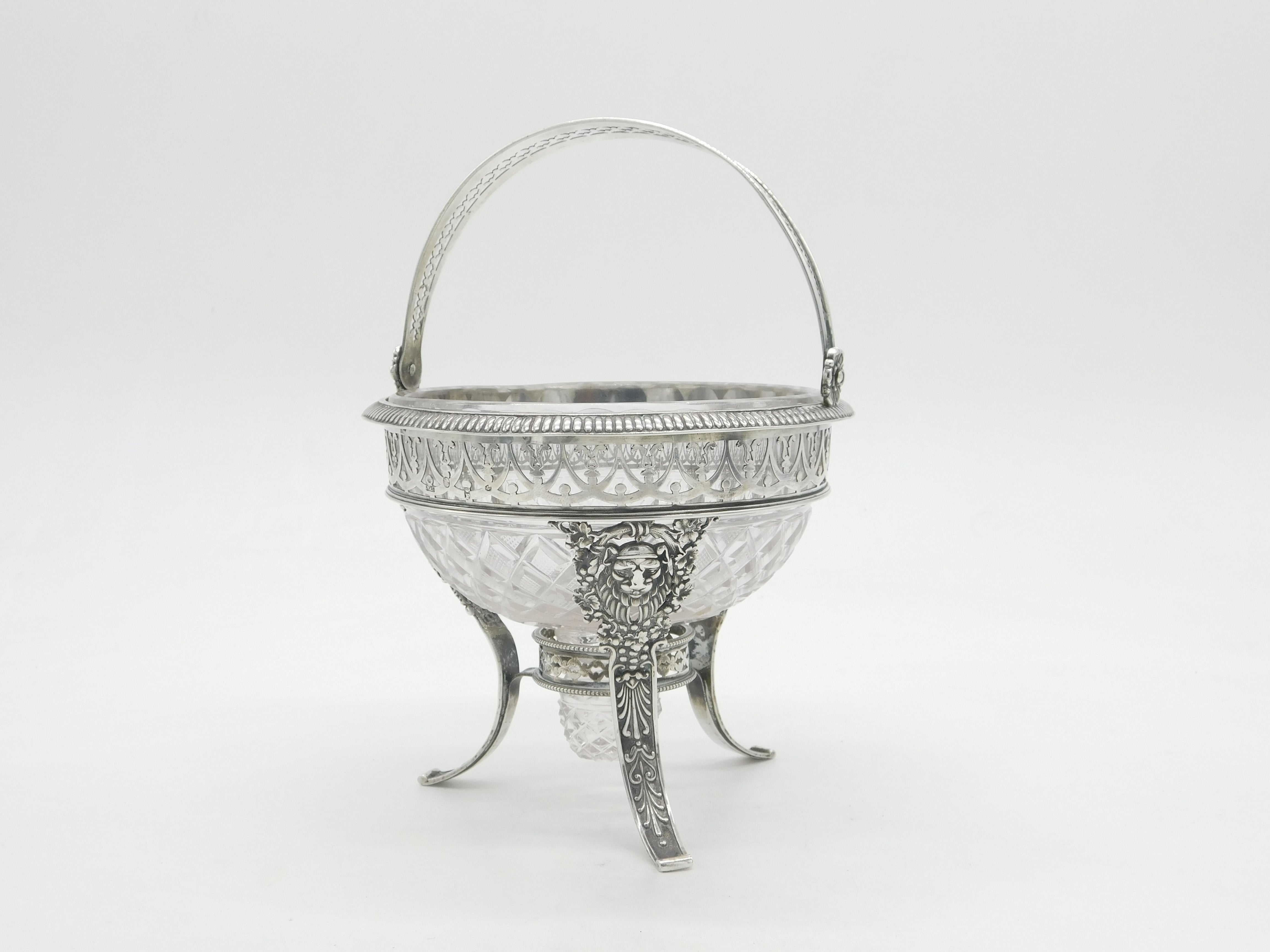 19th Century Dutch Sterling Silver & Cut Glass Swing Handle Basket Antique c1860