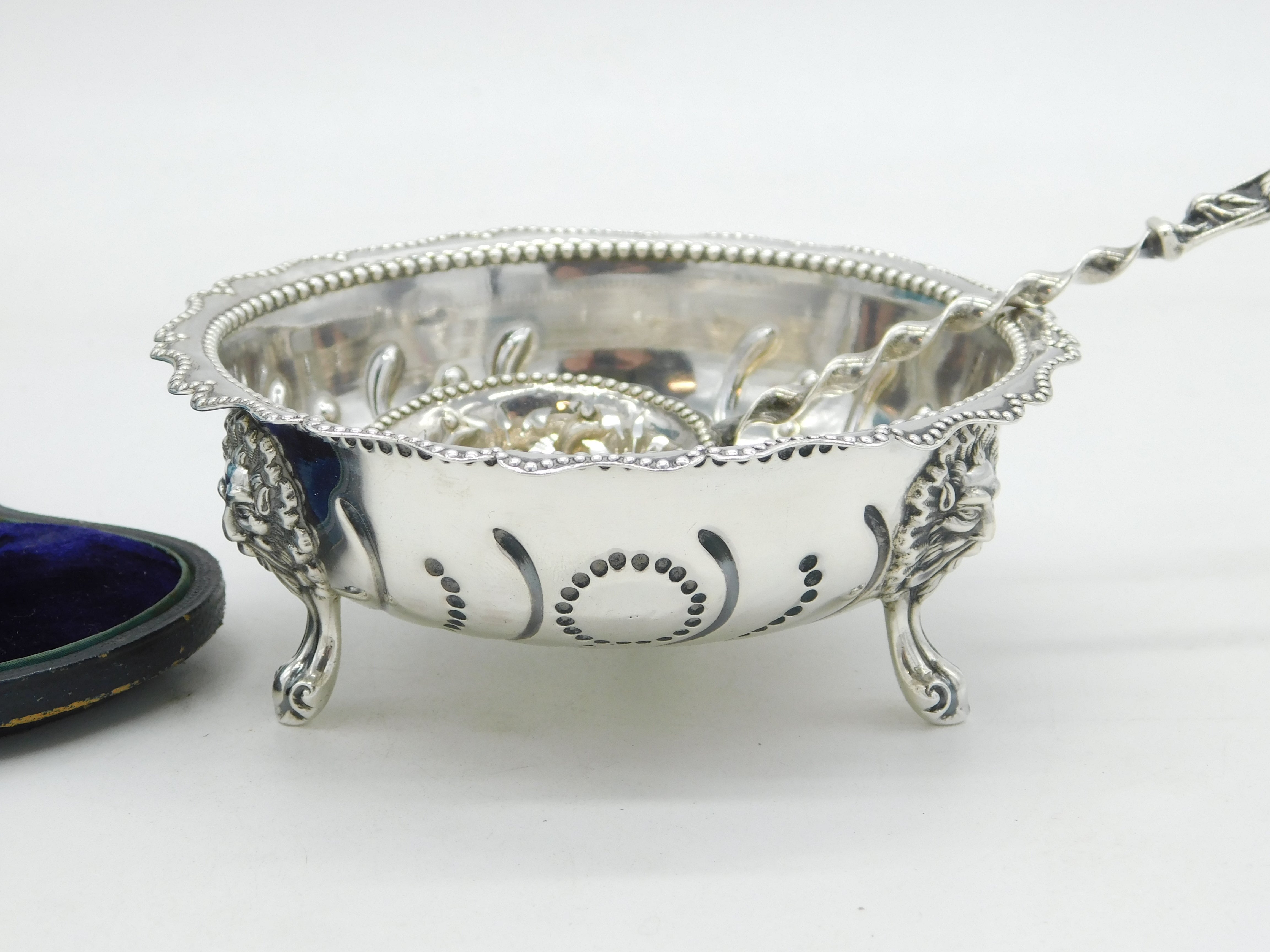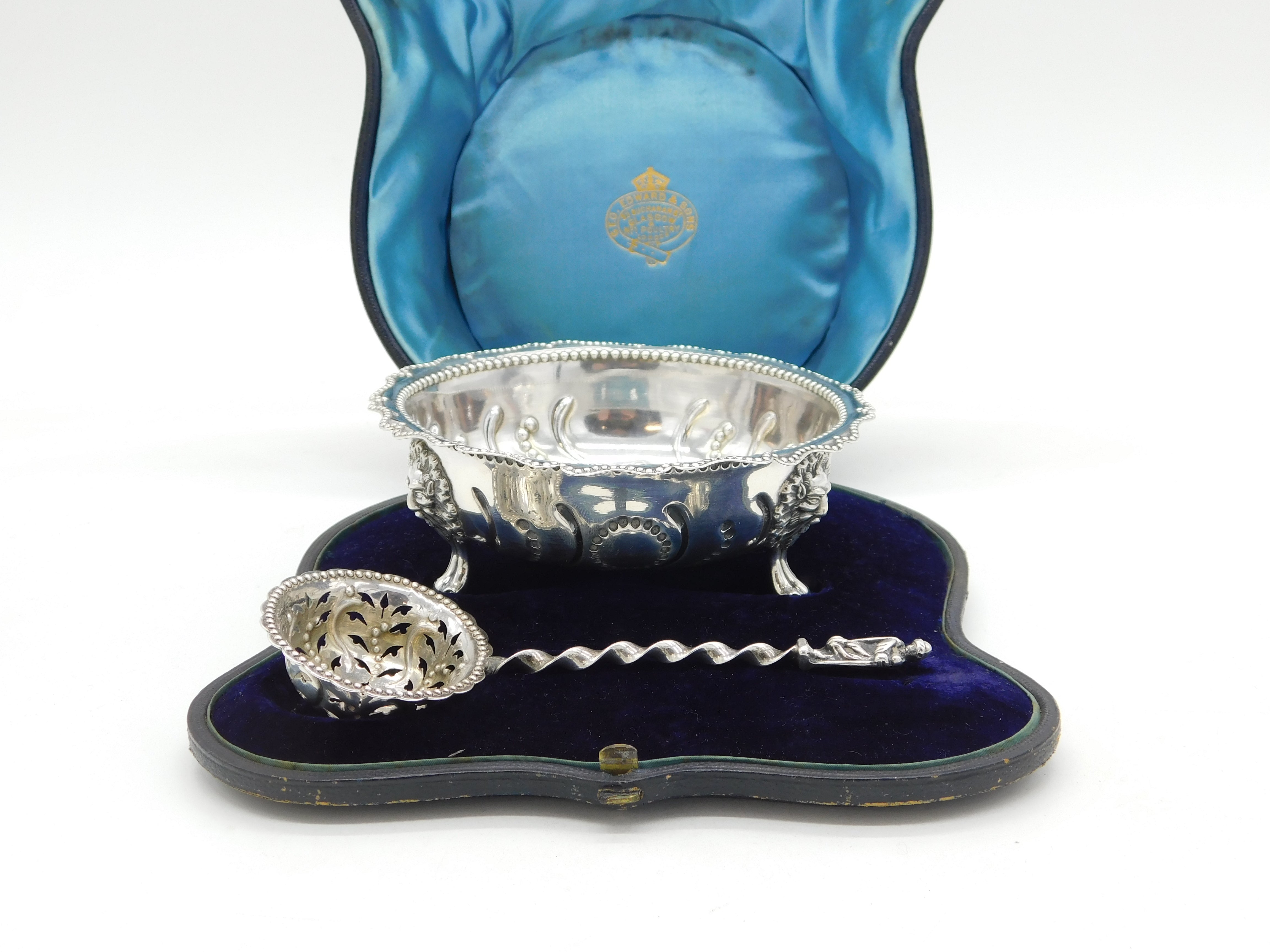 Boxed Victorian Sterling Silver Floral Bowl & Caster Set Antique 1879 London