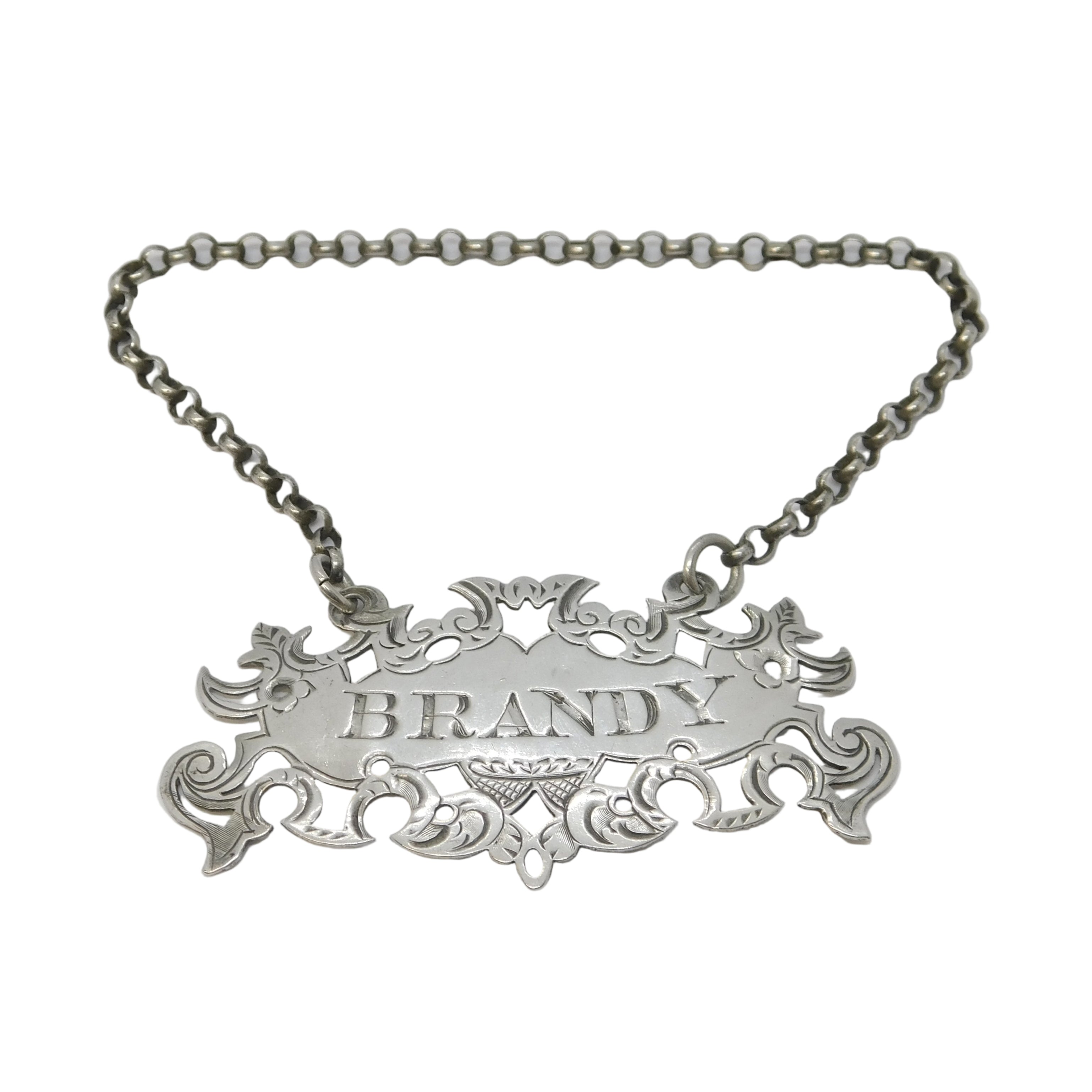 Details: A fantastic and wonderfully designed antique mid-Victorian sterling silver floral pattern Brandy decanter label hallmarked Birmingham 1852 by prestigious maker Nathaniel Mills. This is a wonderful item that would make a perfect gift or addition to any collection.