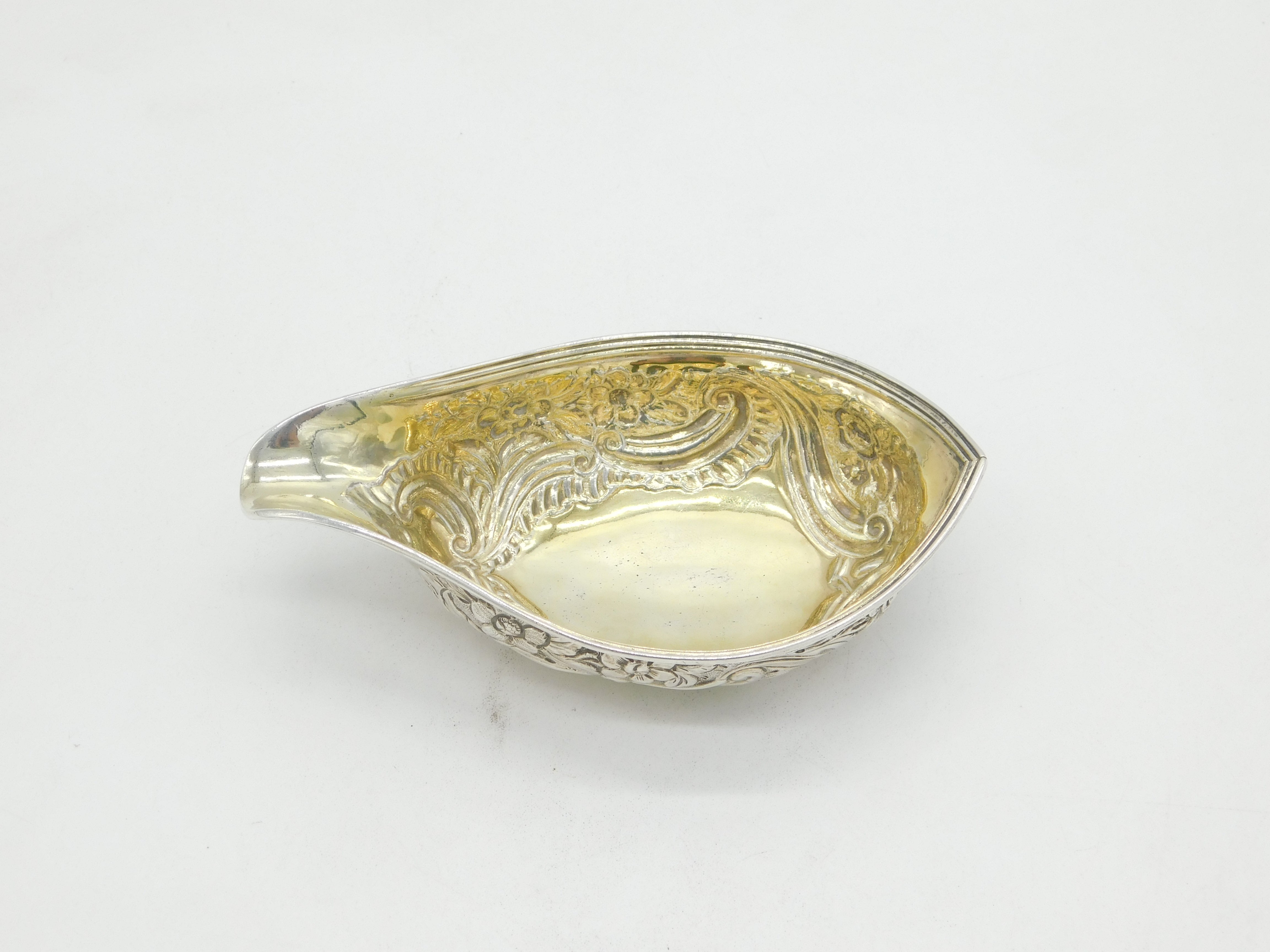 Details: A fantastic and wonderfully designed antique Victorian sterling silver floral embossed christening pap boat with lovely detailing gilded to the interior c1860, the silver has been XRF tested as it is unmarked. This is a wonderful item that would make a perfect gift or addition to any collection.