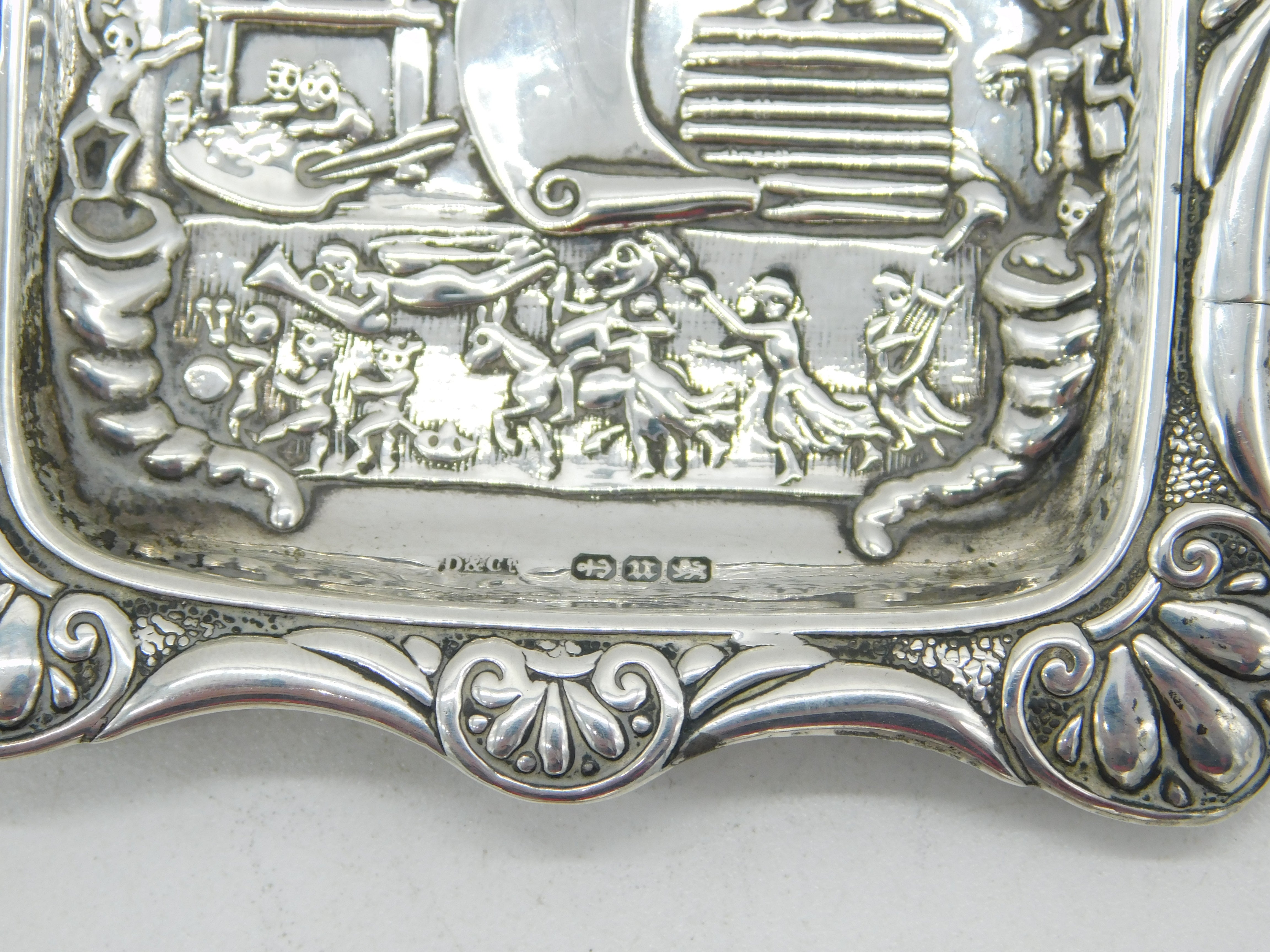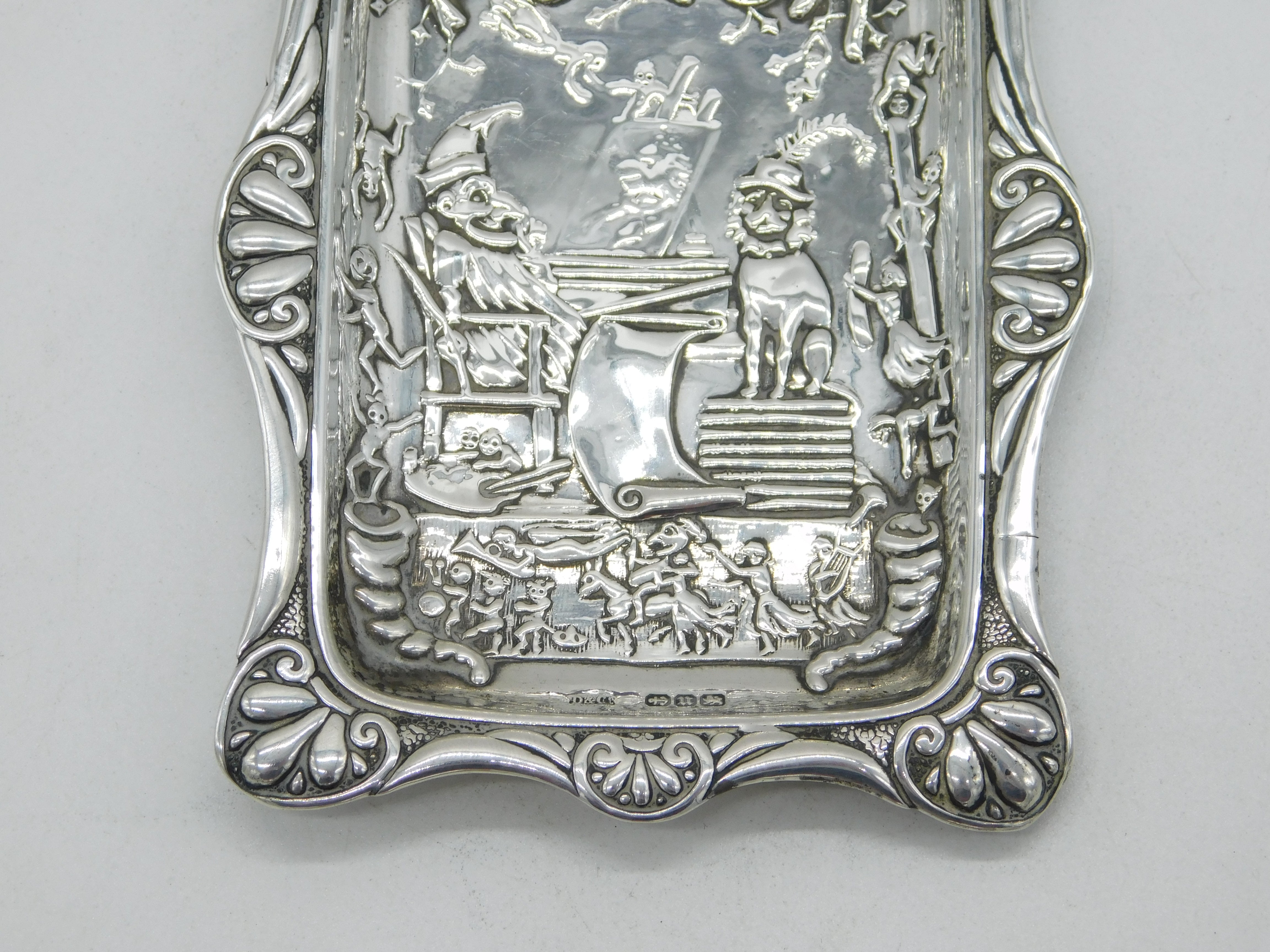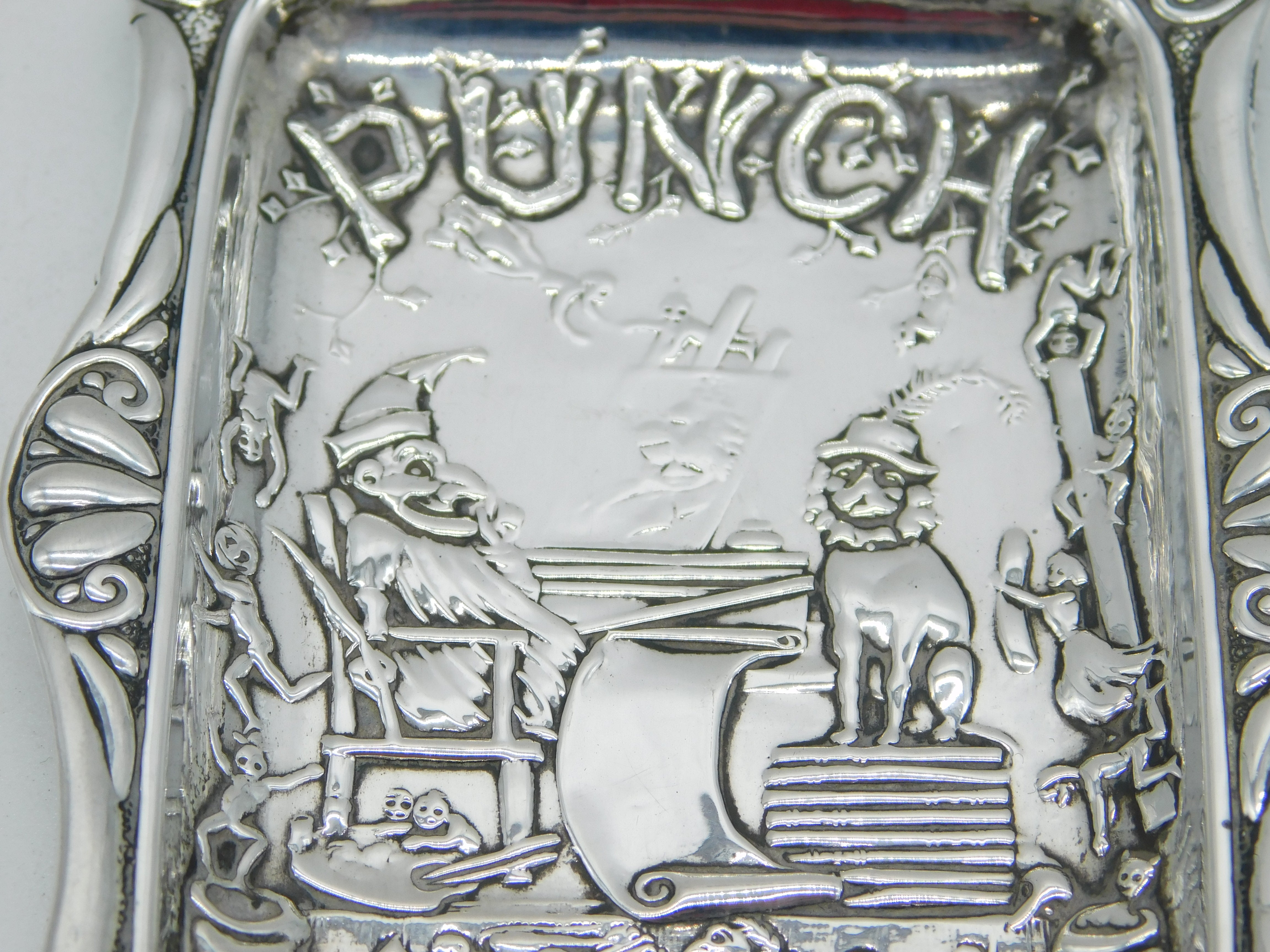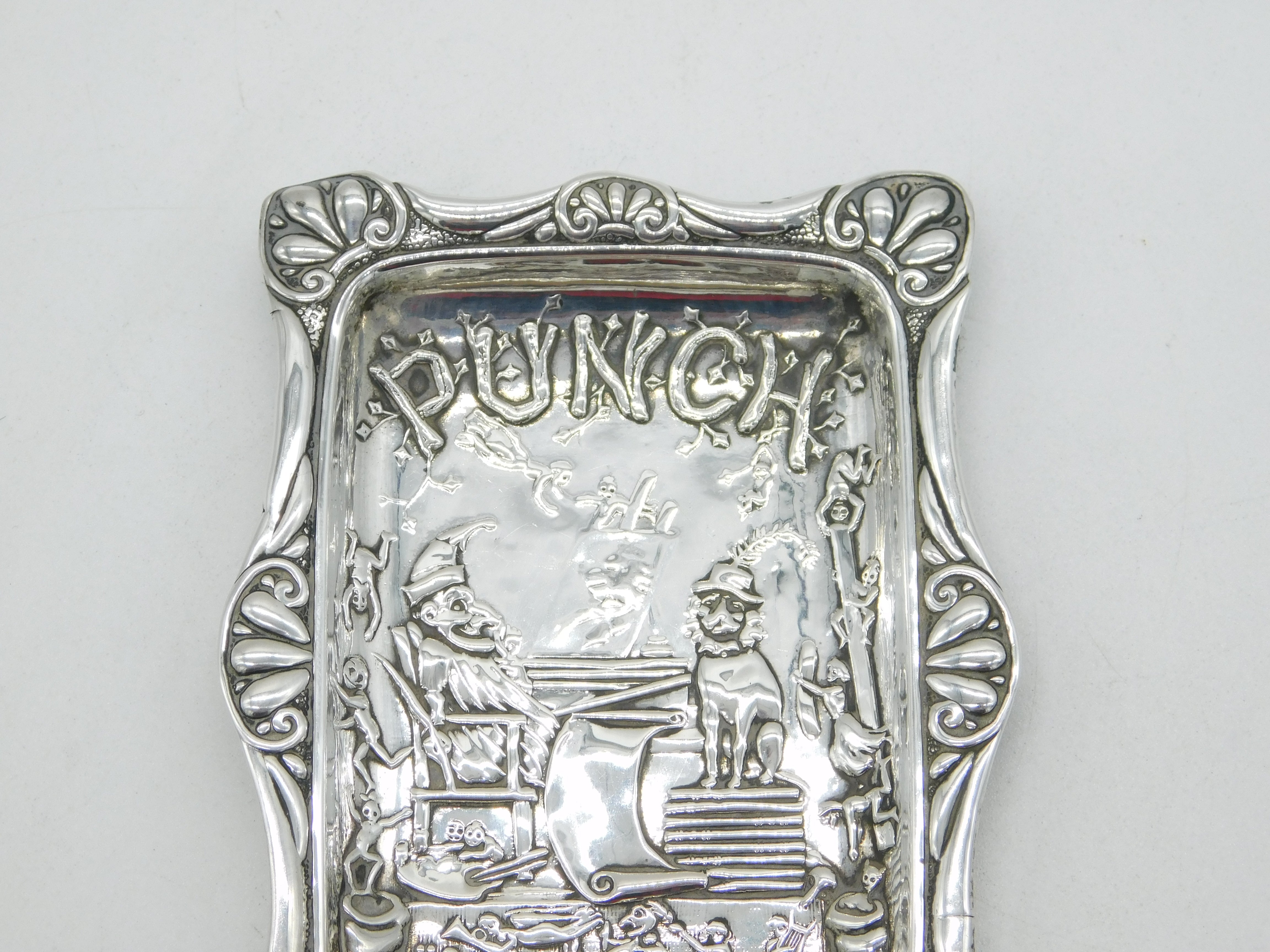 Details: A fantastic and wonderfully designed antique late-Victorian sterling silver Mr Punch pin dish or ring tray with lovely embossed detailing hallmarked Birmingham 1894 to the base. This is a wonderful item that would make a perfect gift or addition to any collection. We are more than happy to provide XRF reports for items upon request.