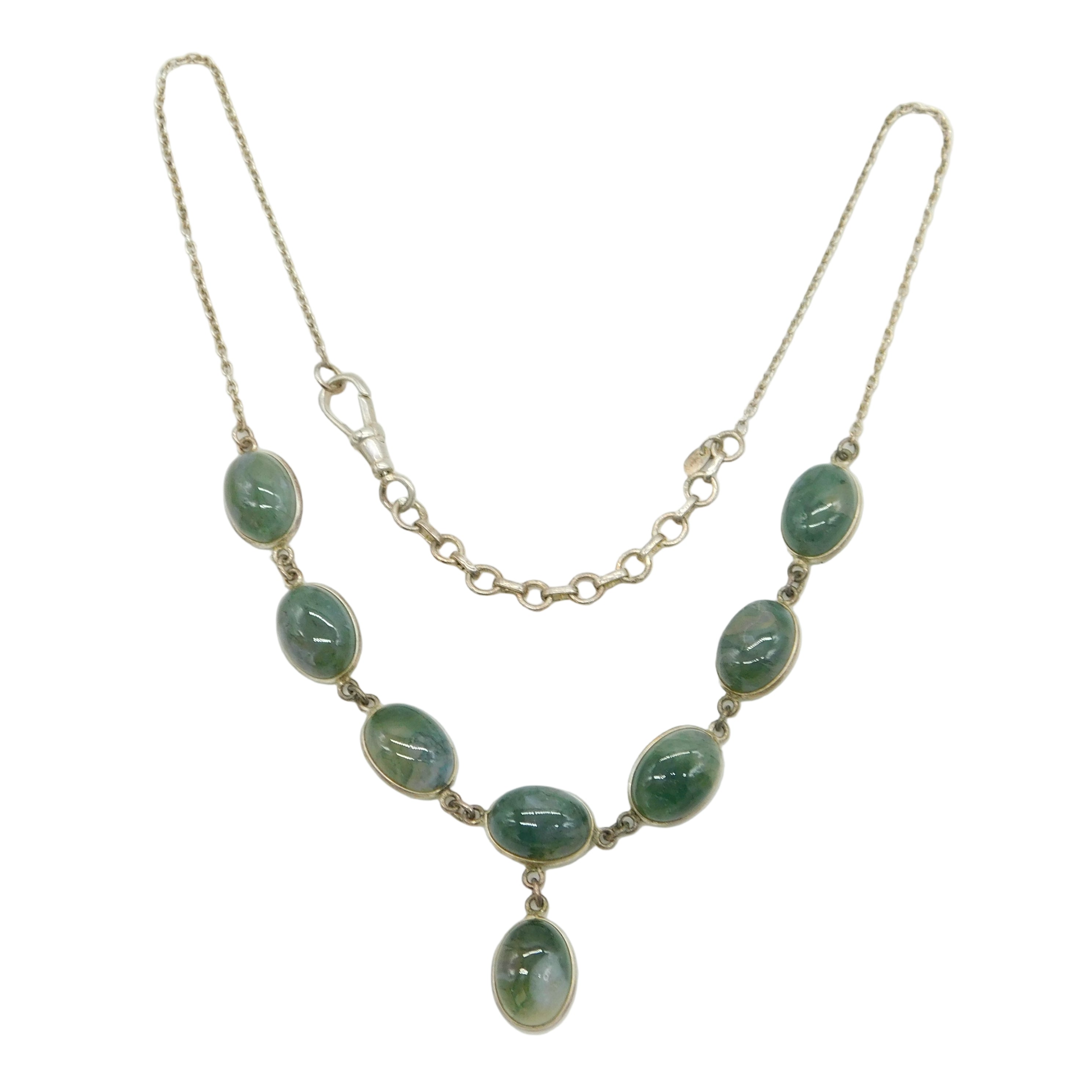Sterling Silver Cabochon Moss Agate Studio Necklace Vintage c1970 46cm Length