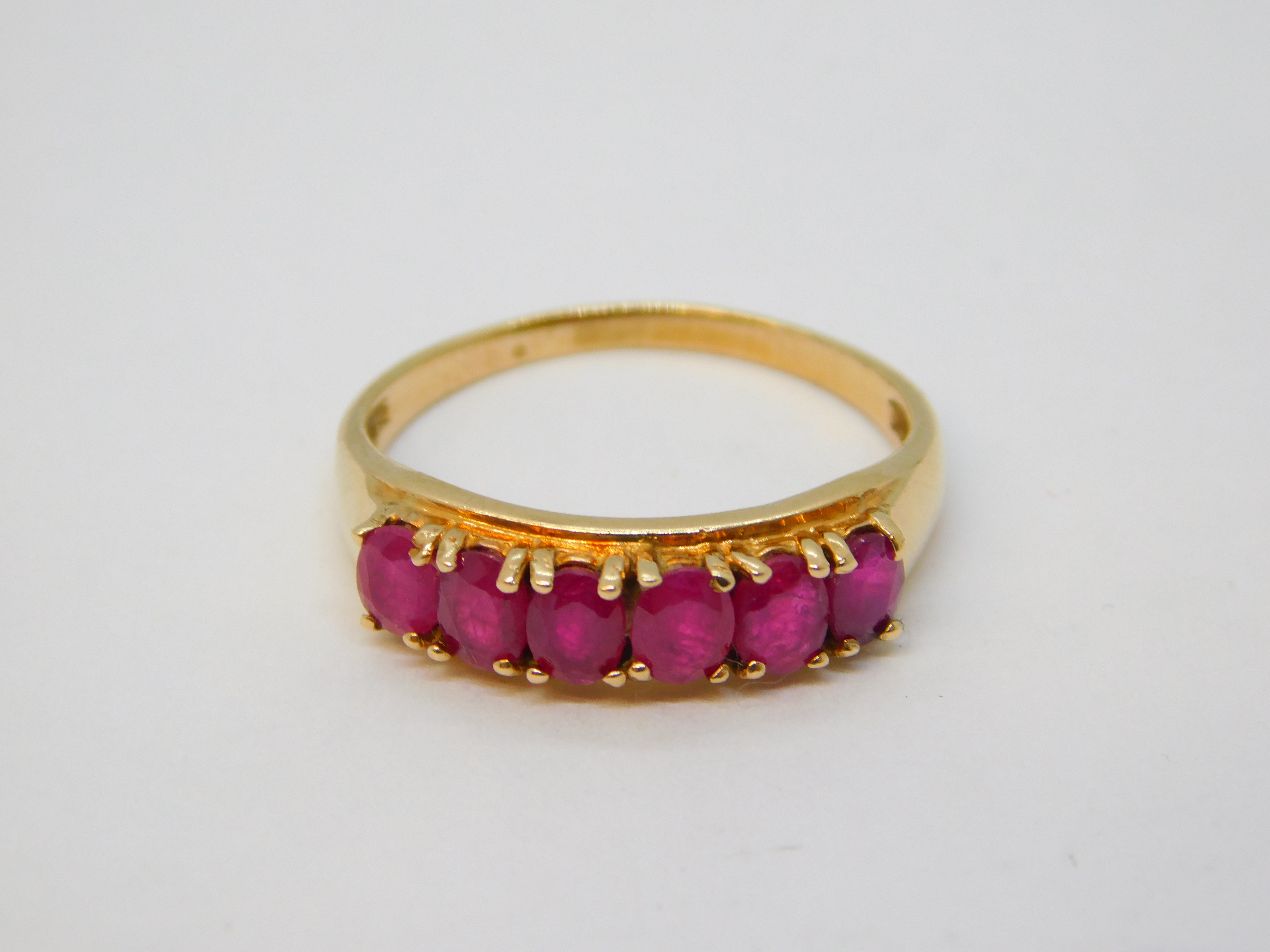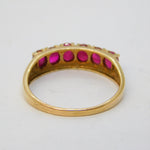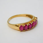 10ct Yellow Gold & Six-Stone Natural Ruby Dress Ring Vintage c1970