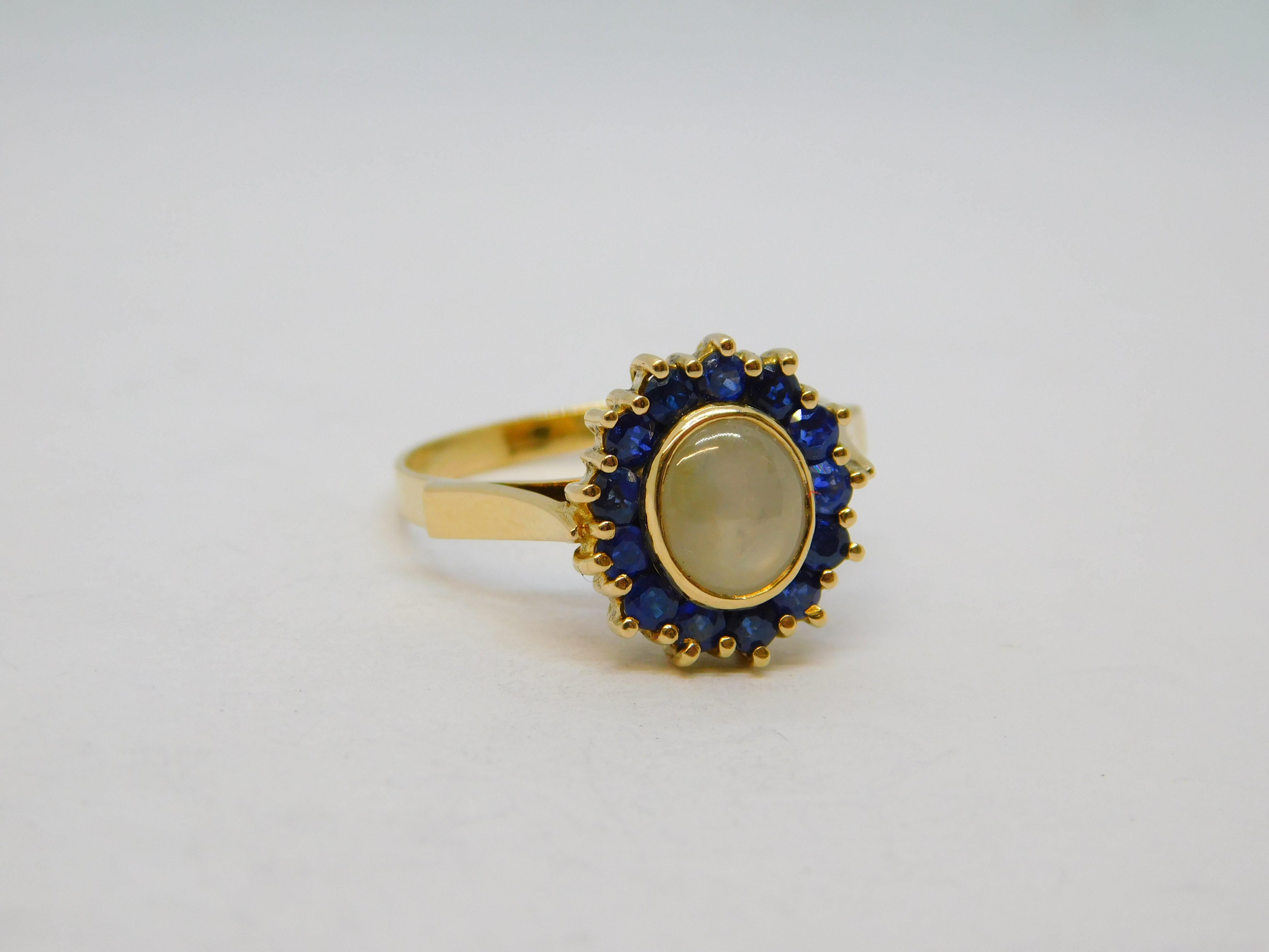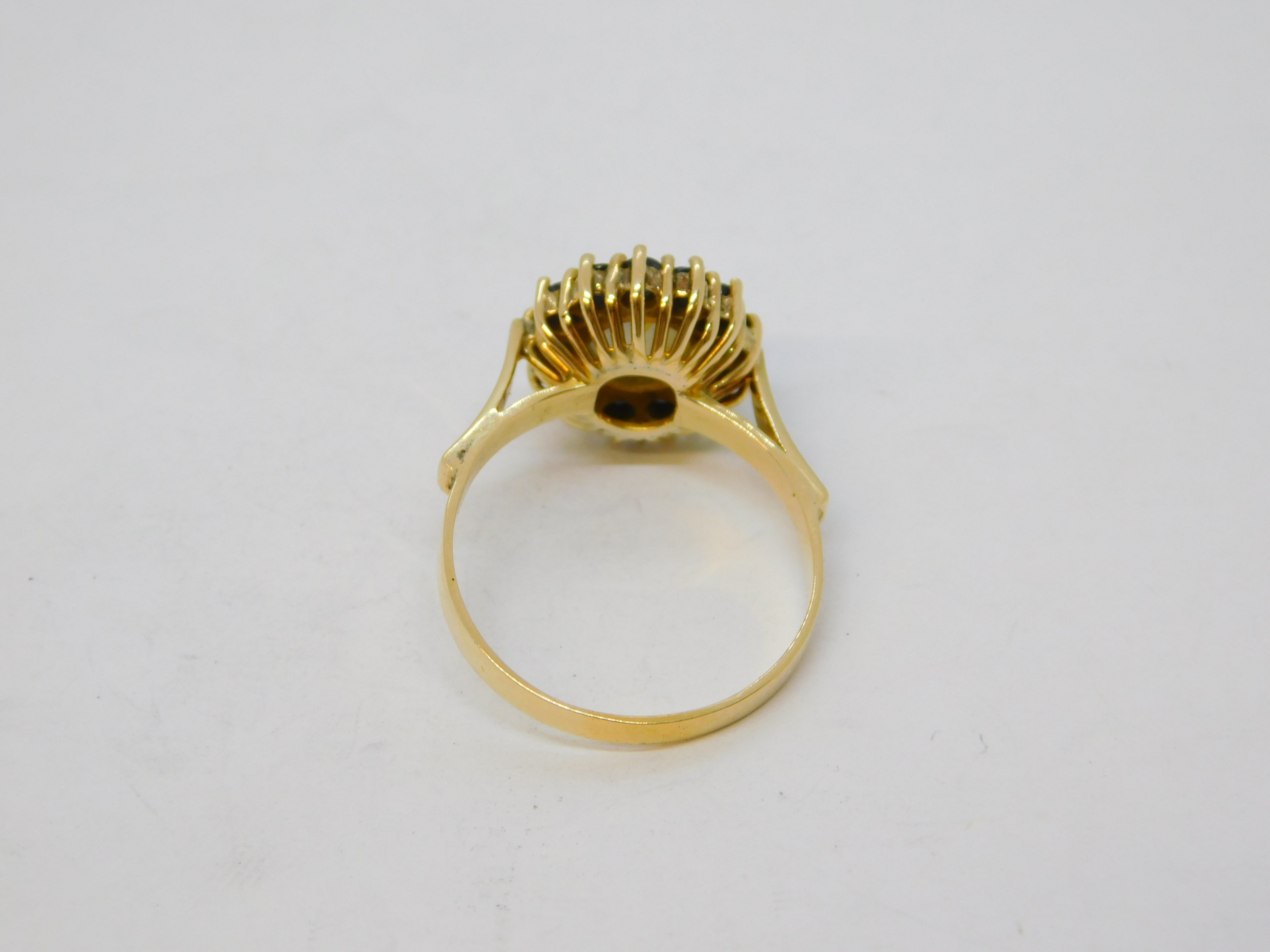 14ct Gold, White Star Sapphire & Blue Sapphire Cluster Ring Vintage c1960