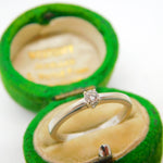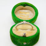 14ct White Gold Cushion Cut 0.1ct Diamond Solitaire Ring Vintage c1970