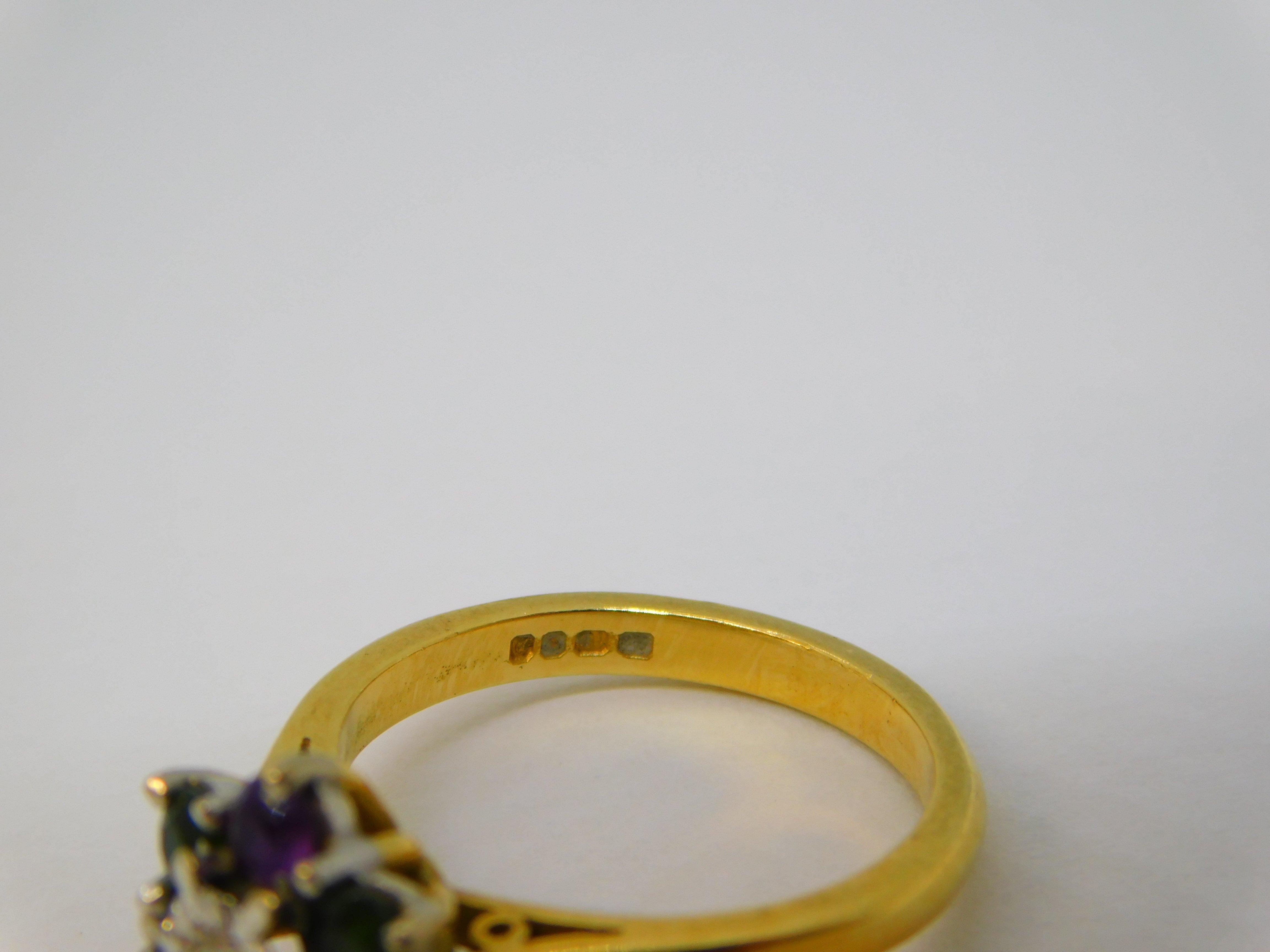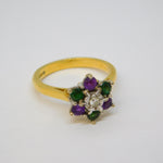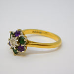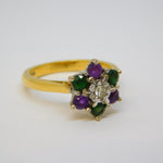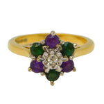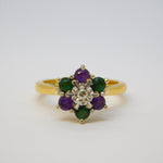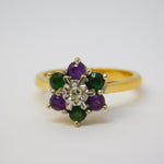 18ct Gold, Emerald, Amethyst & Diamond Suffragette Cluster Ring Vintage London