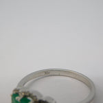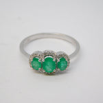 18ct White Gold, Three-Stone Emerald & Diamond Dress Ring Vintage c1990