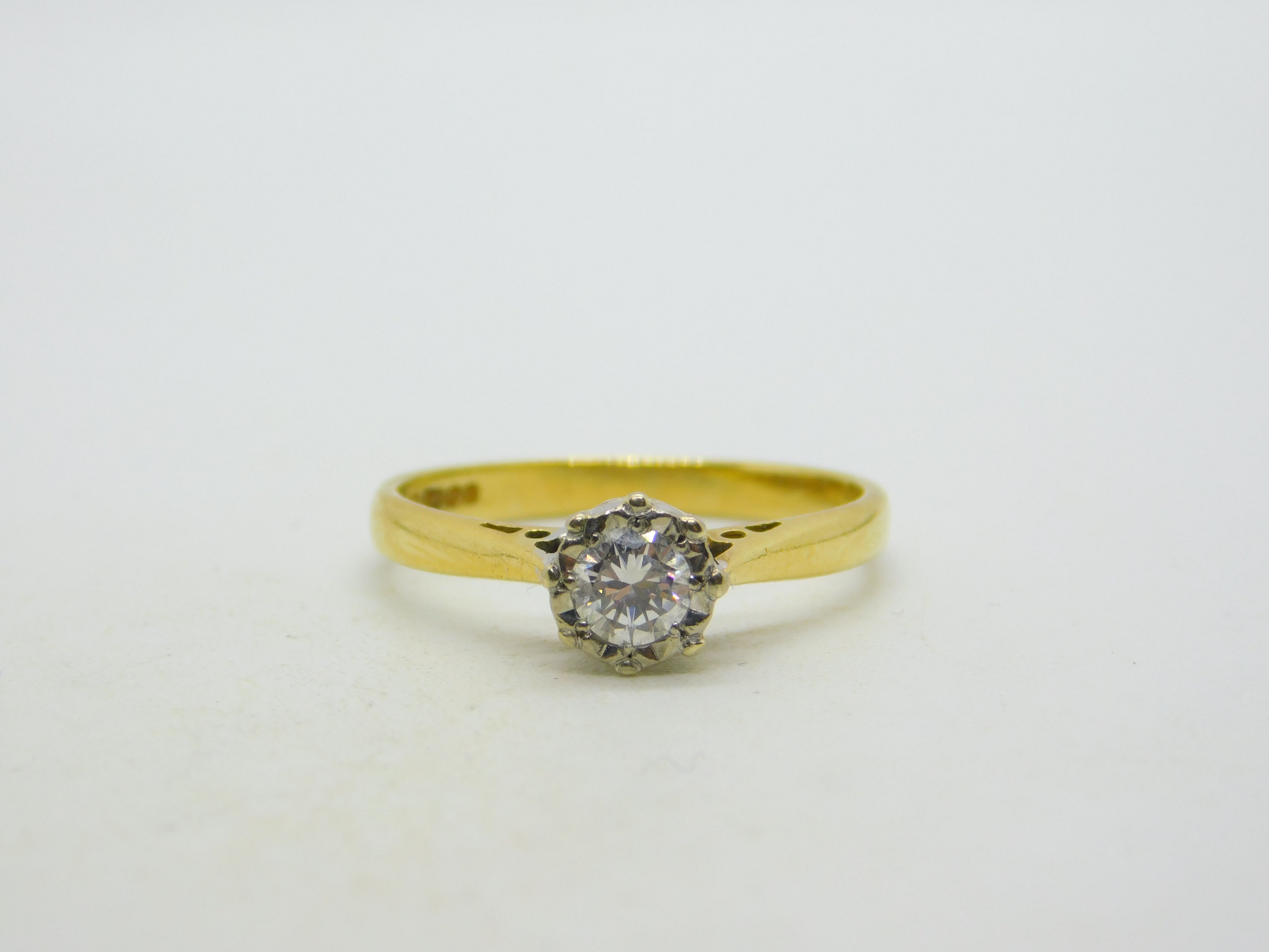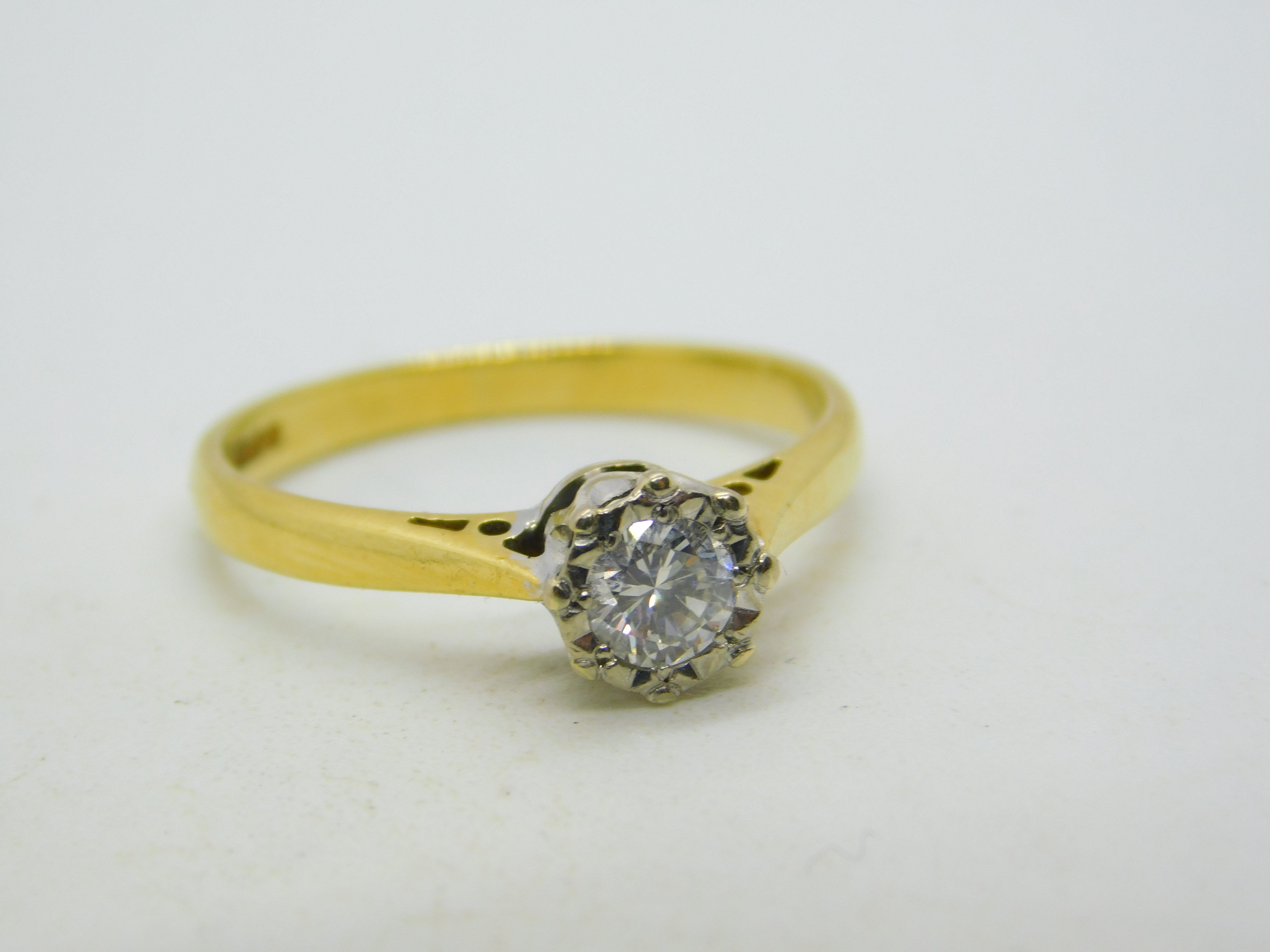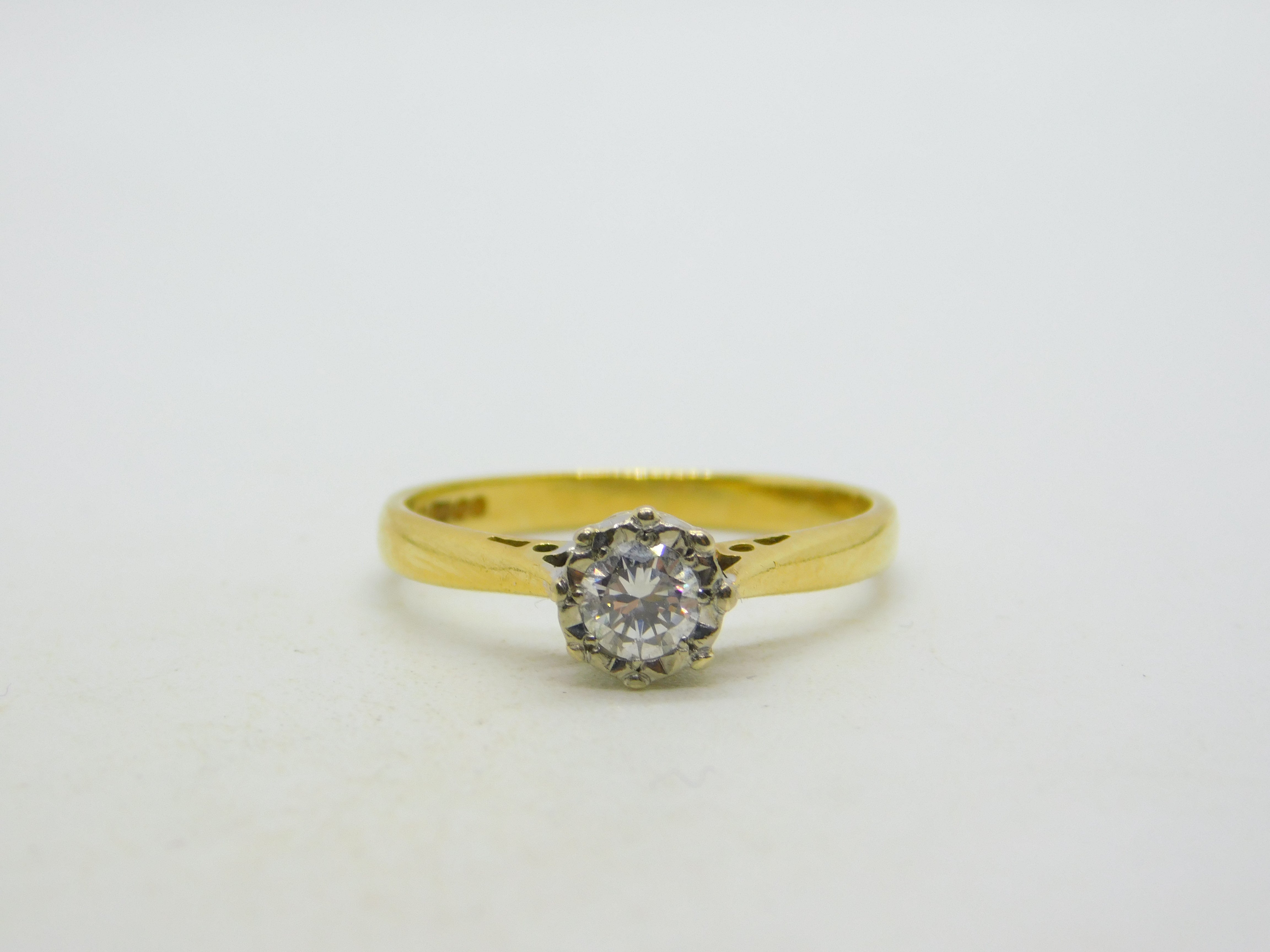 18ct Yellow Gold & 0.25ct Brilliant Cut Diamond Solitaire Ring Vintage 1992 Birmingham