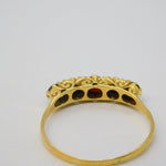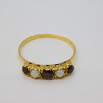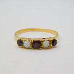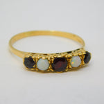 18ct Yellow Gold, Bohemian Garnet & Opal Five-Stone Ring Vintage c1970