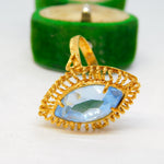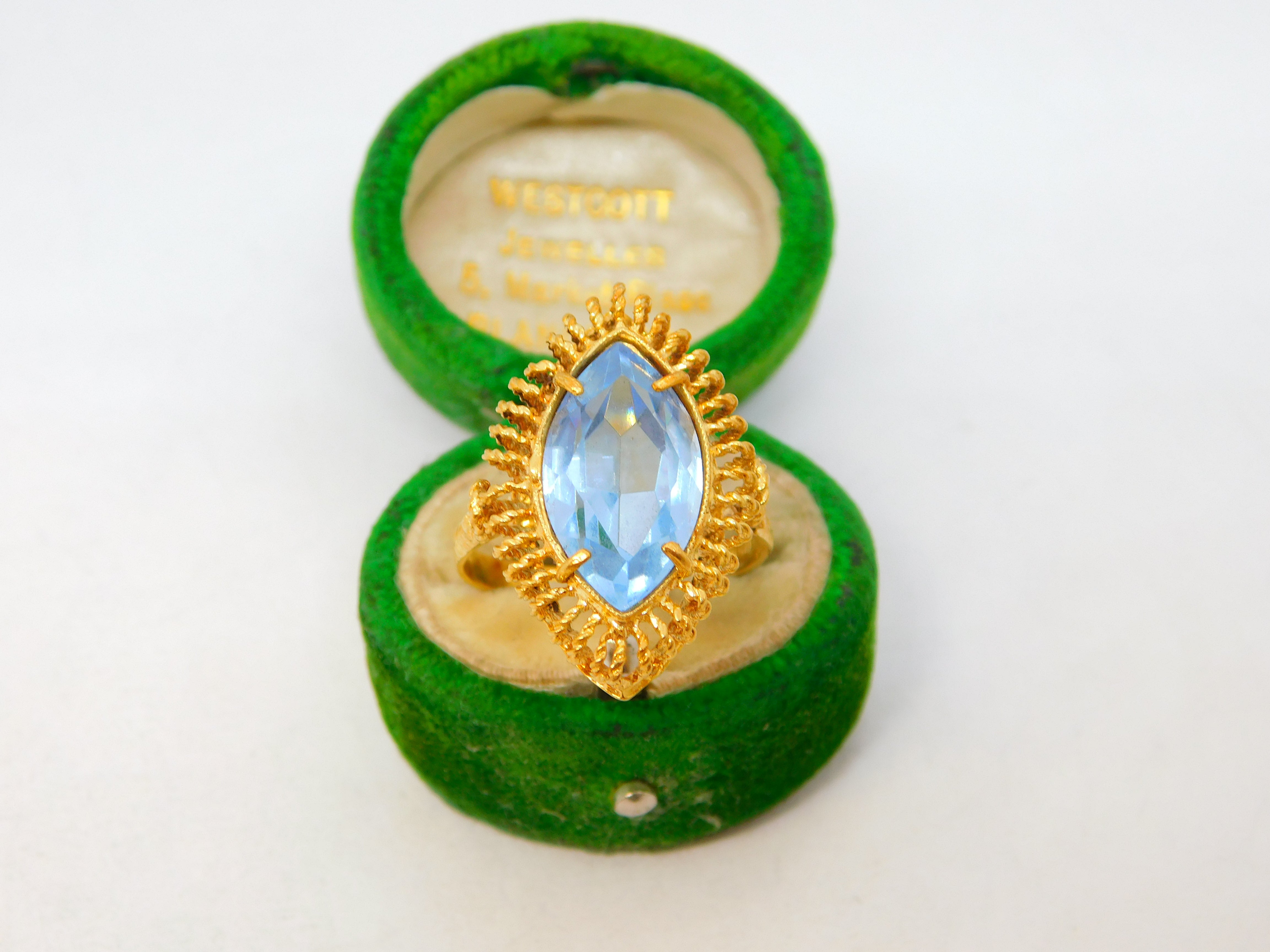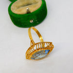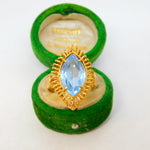 18ct Yellow Gold & Marquise Cut Blue Zircon Dress Ring Vintage c1970