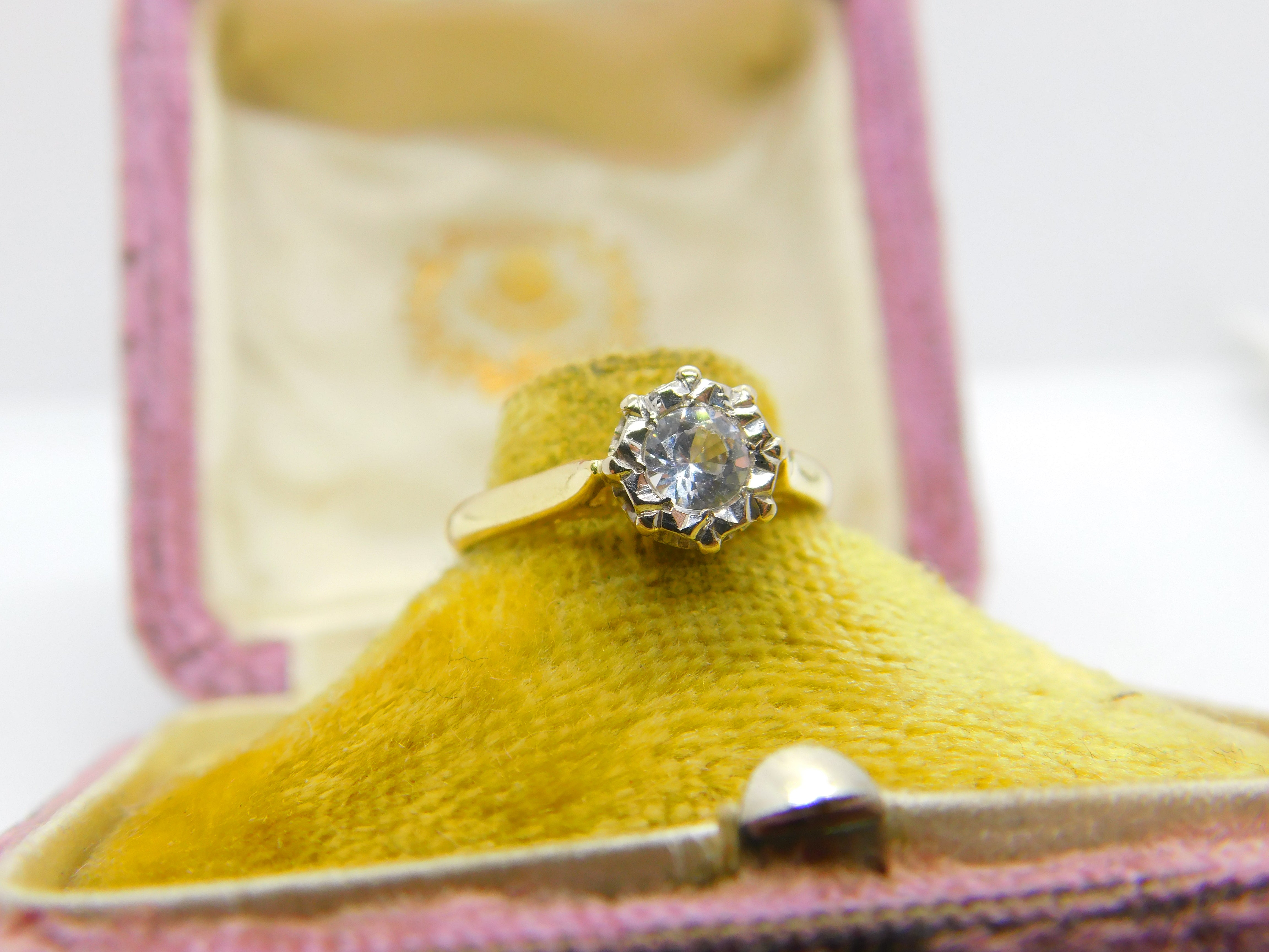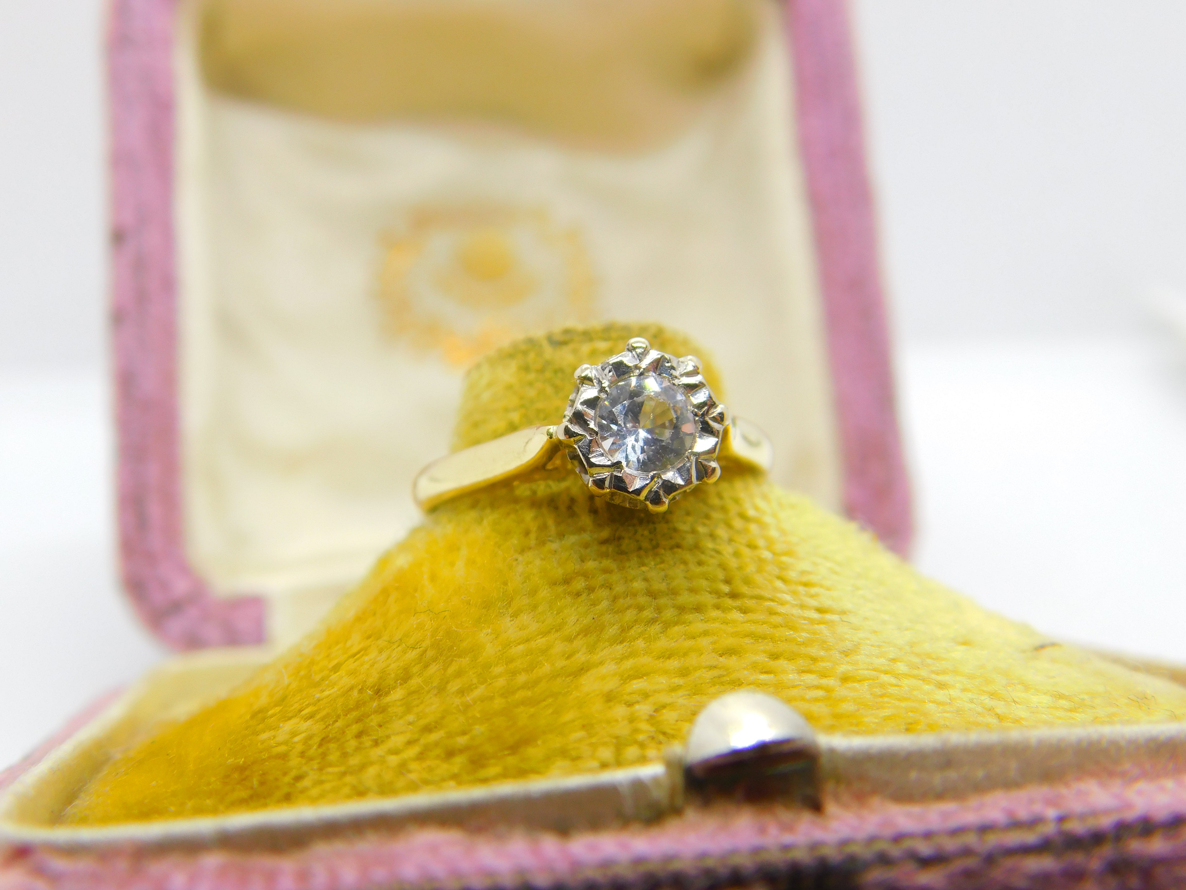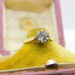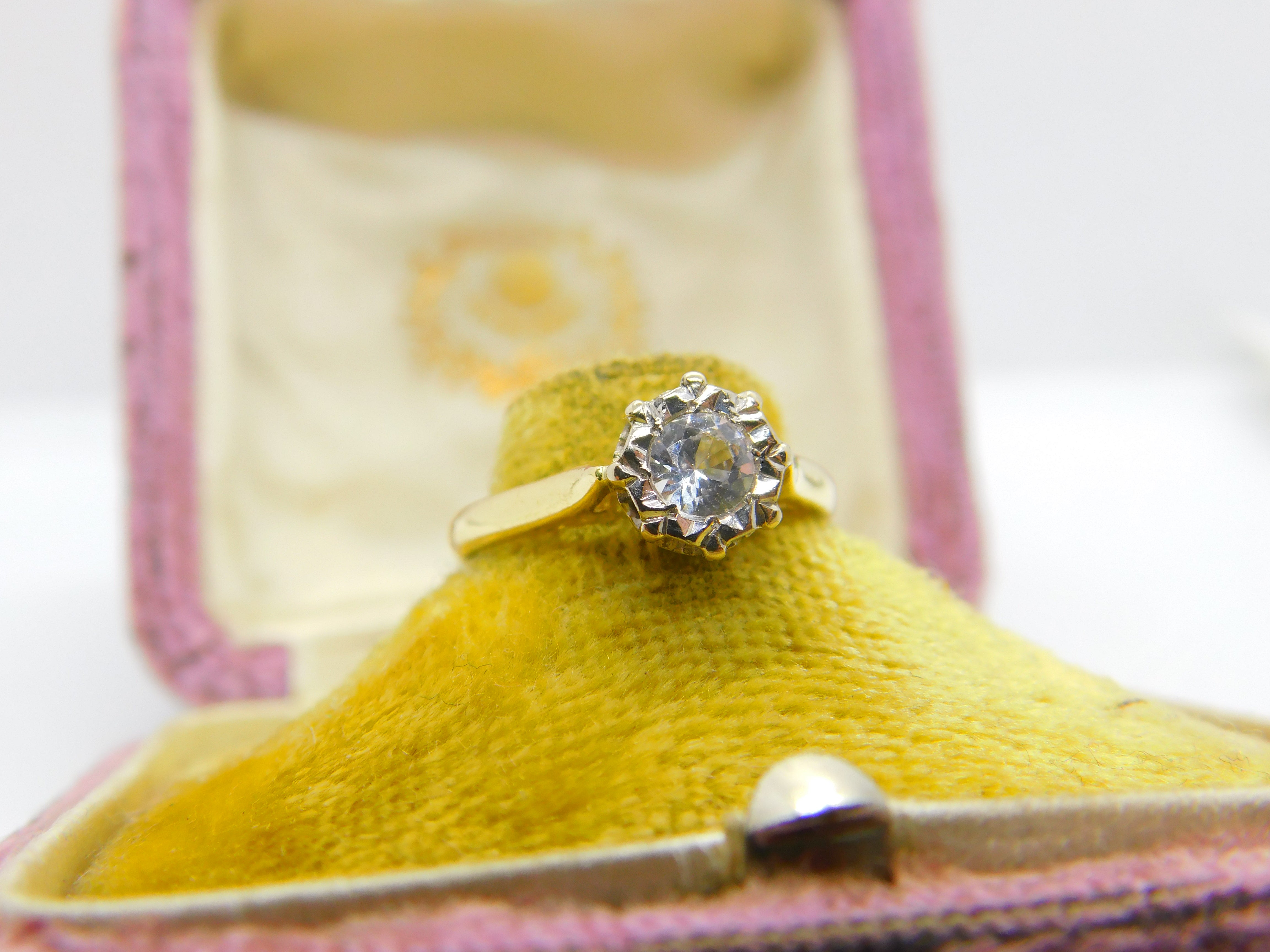 18ct Yellow Gold Palladium Set 0.25ct White Spinel Solitaire Ring c1980 Vintage