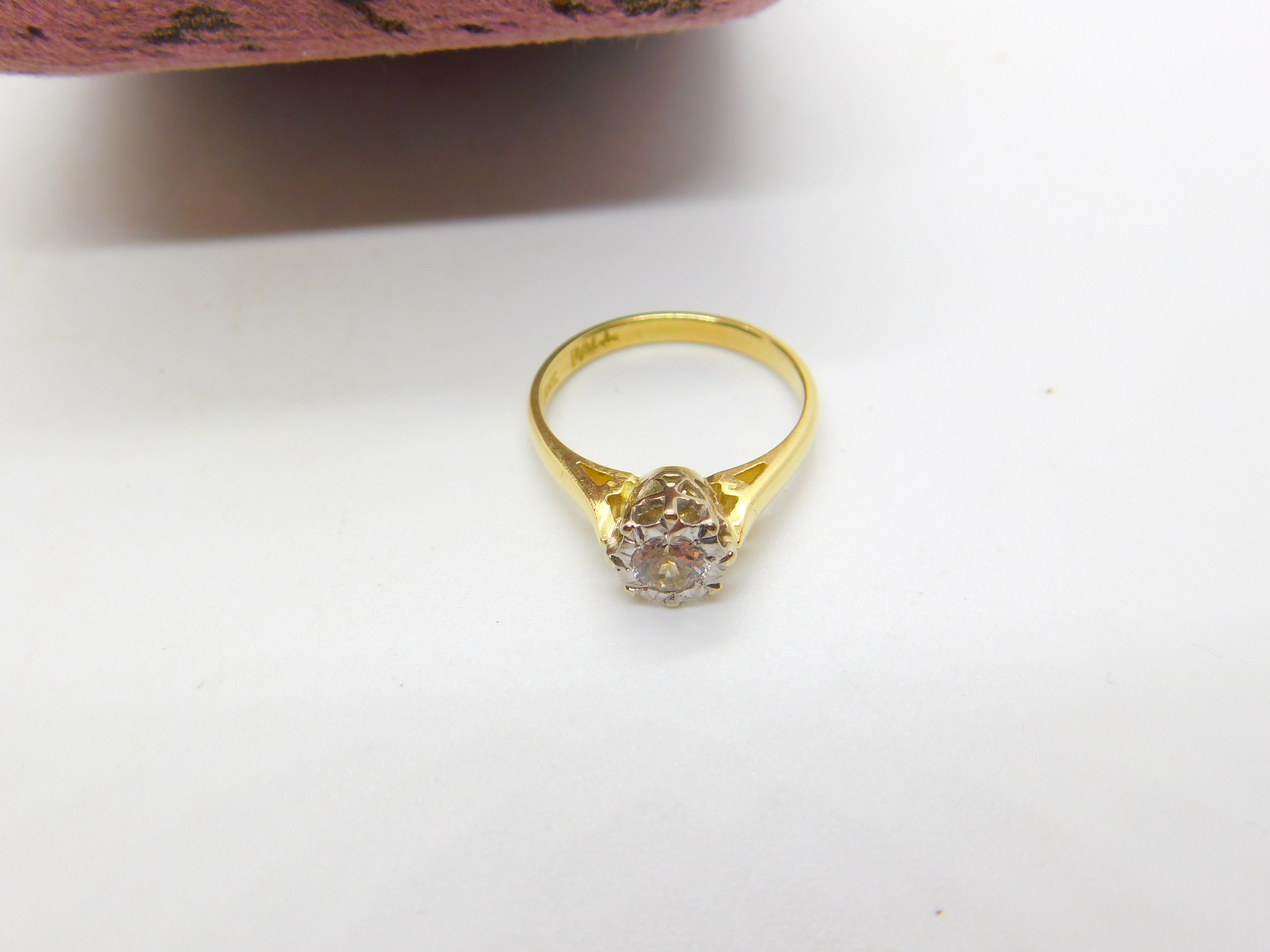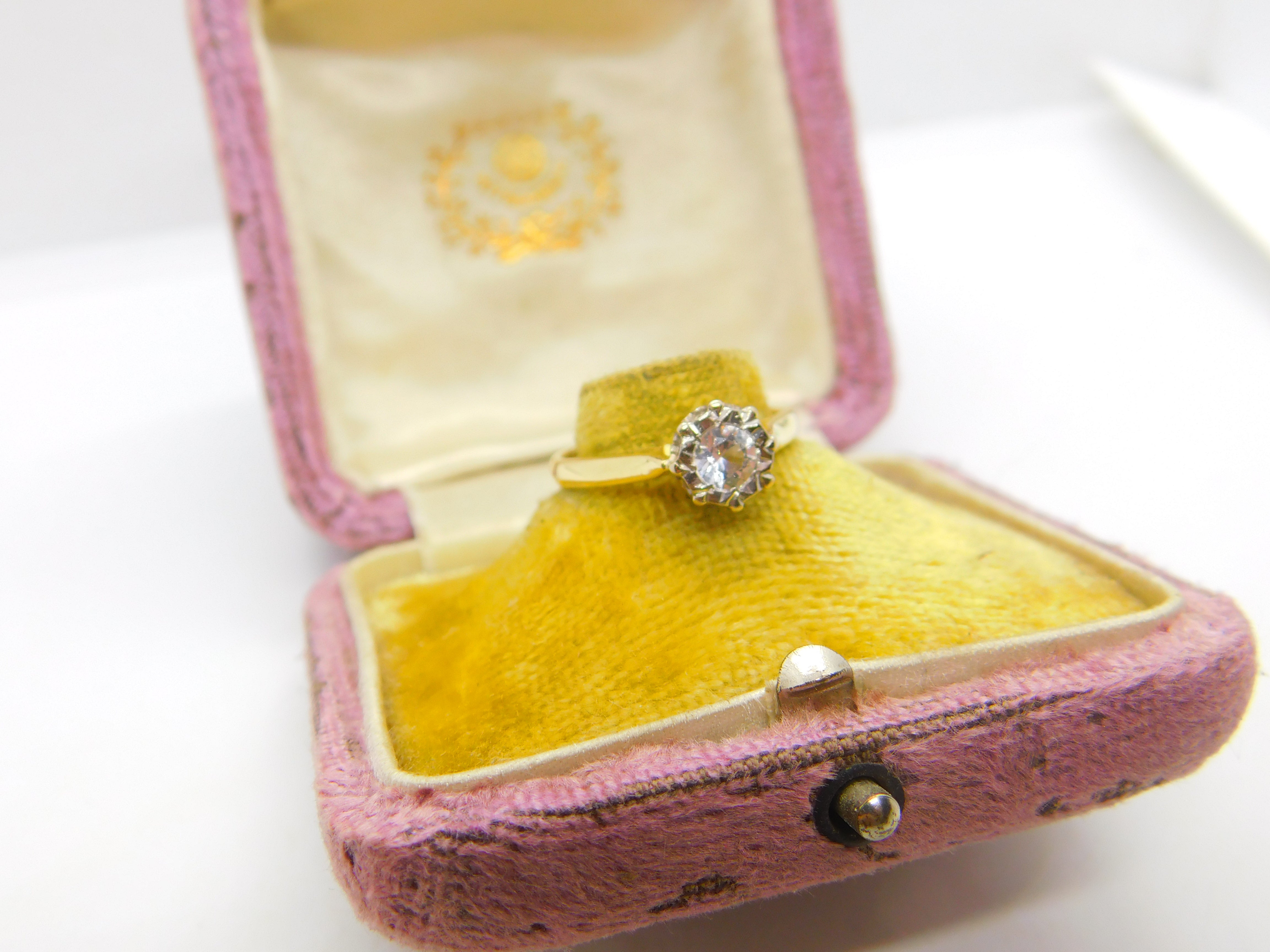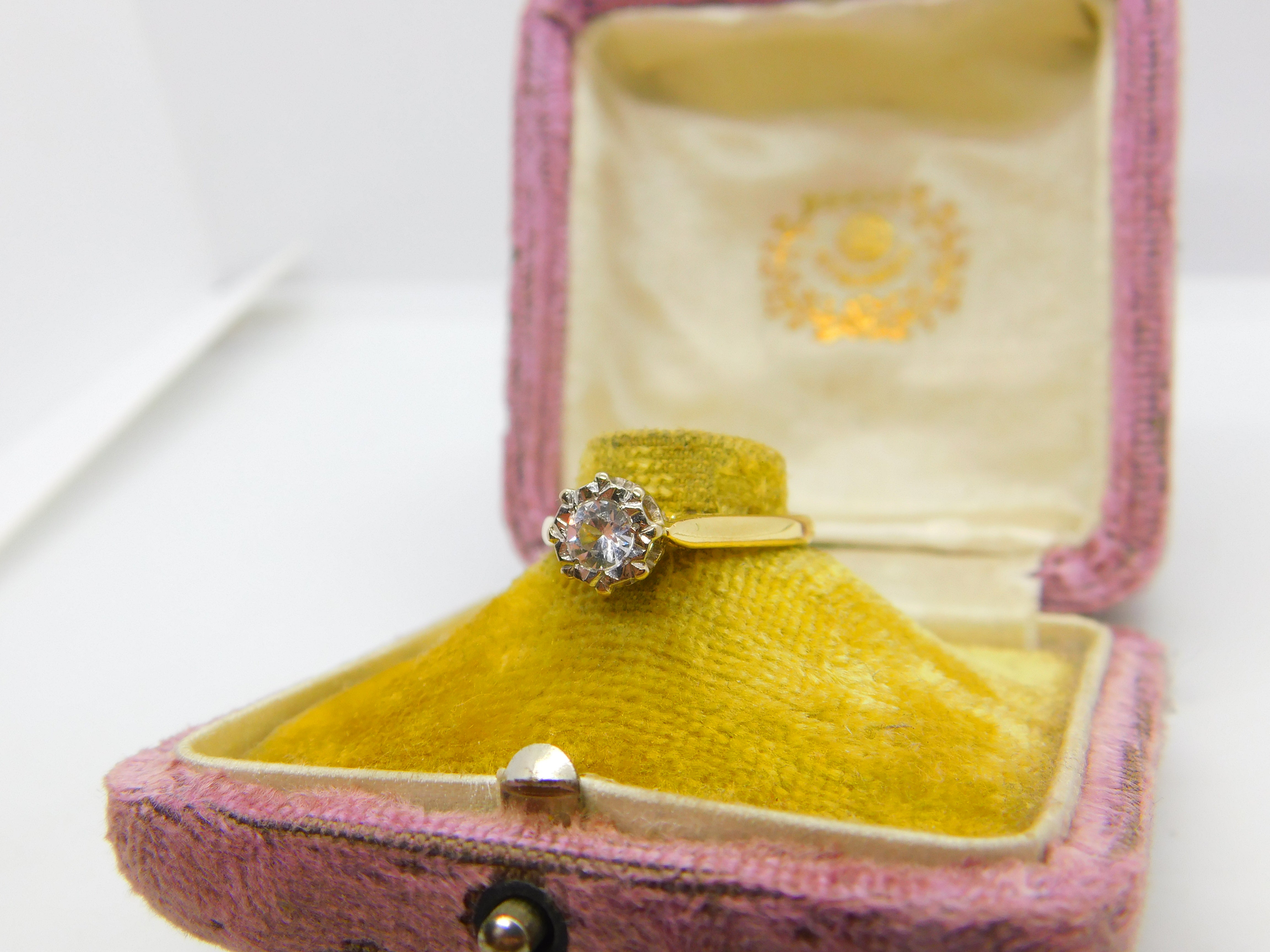 18ct Yellow Gold Palladium Set 0.25ct White Spinel Solitaire Ring c1980 Vintage