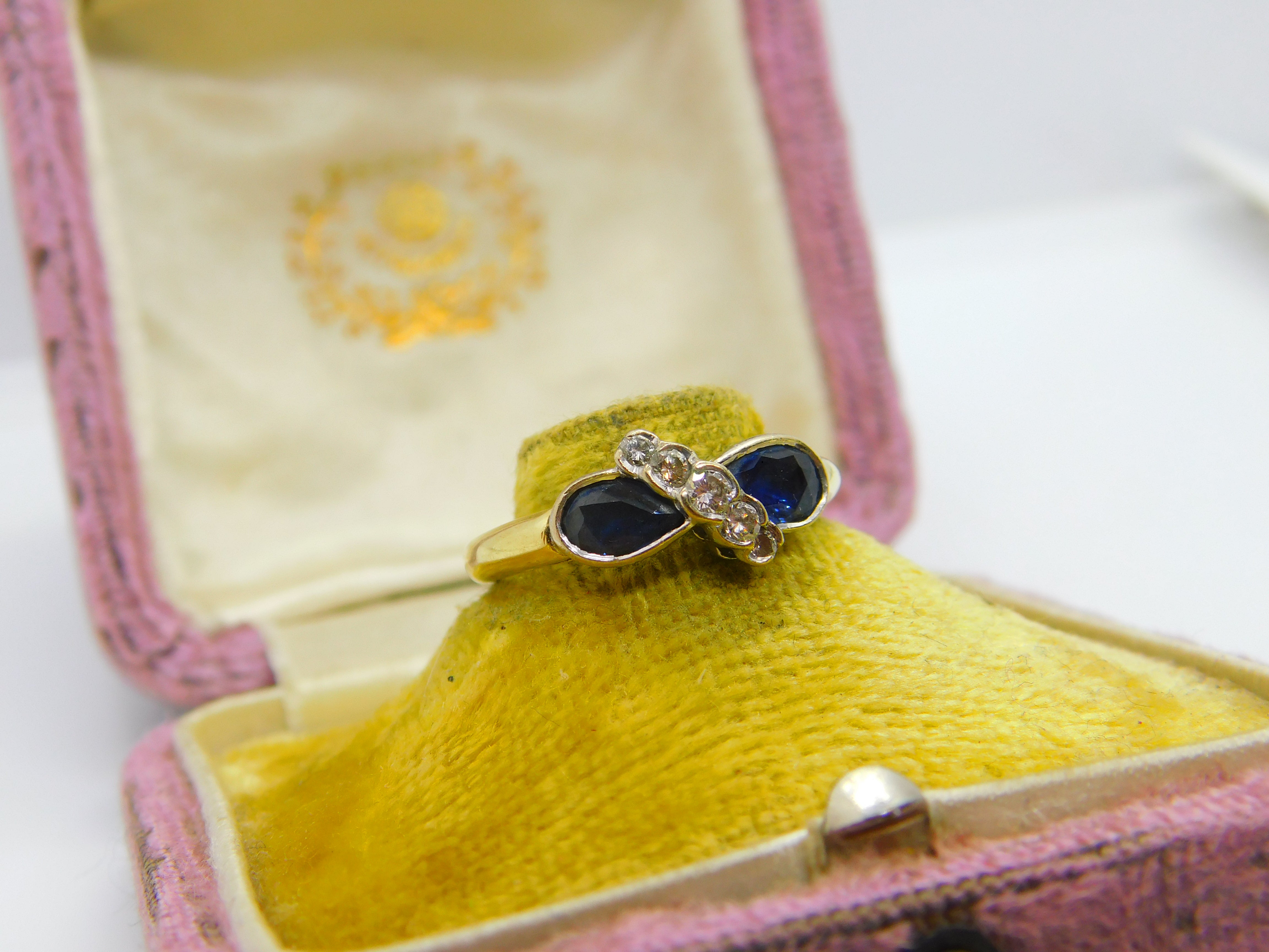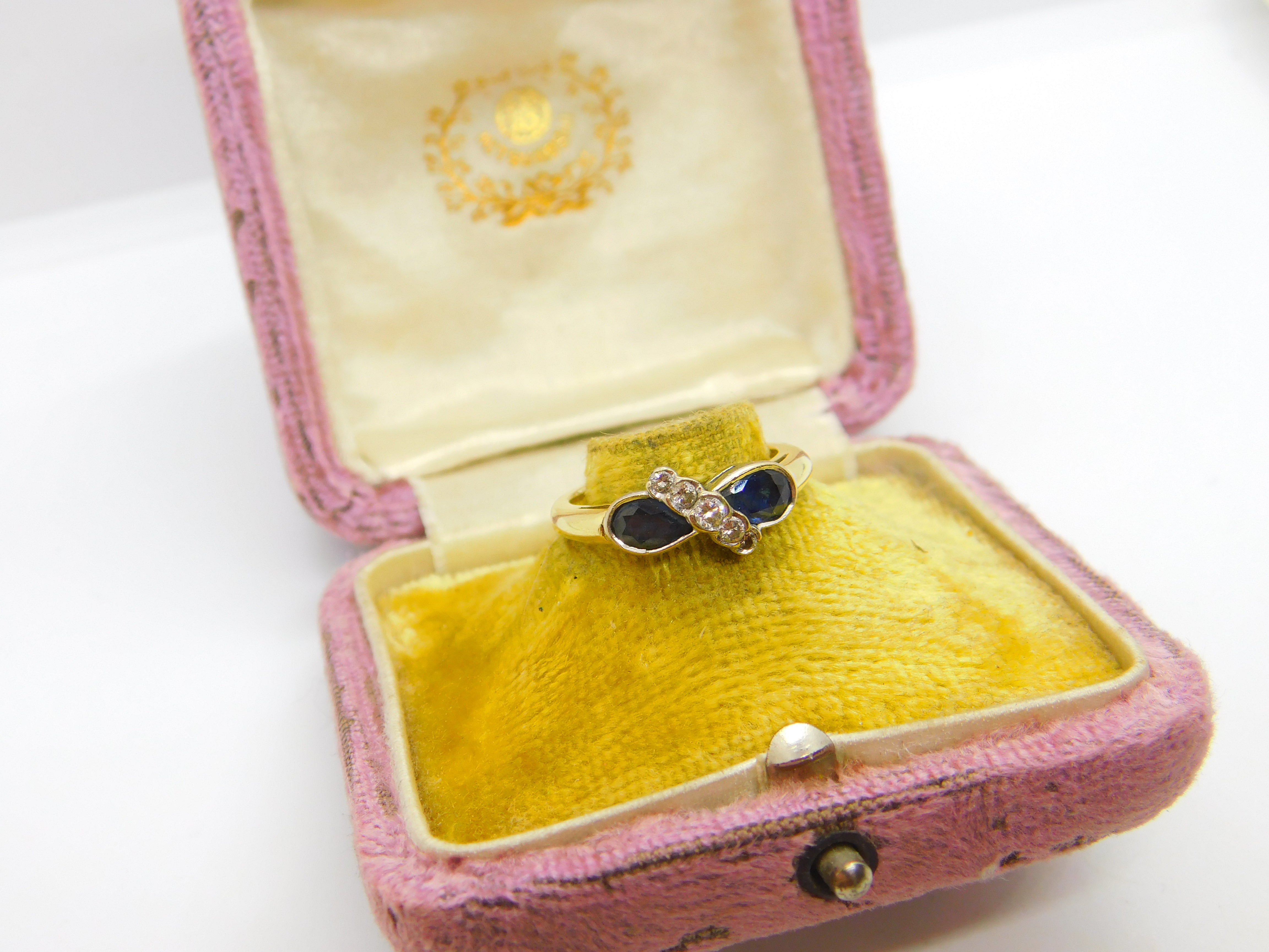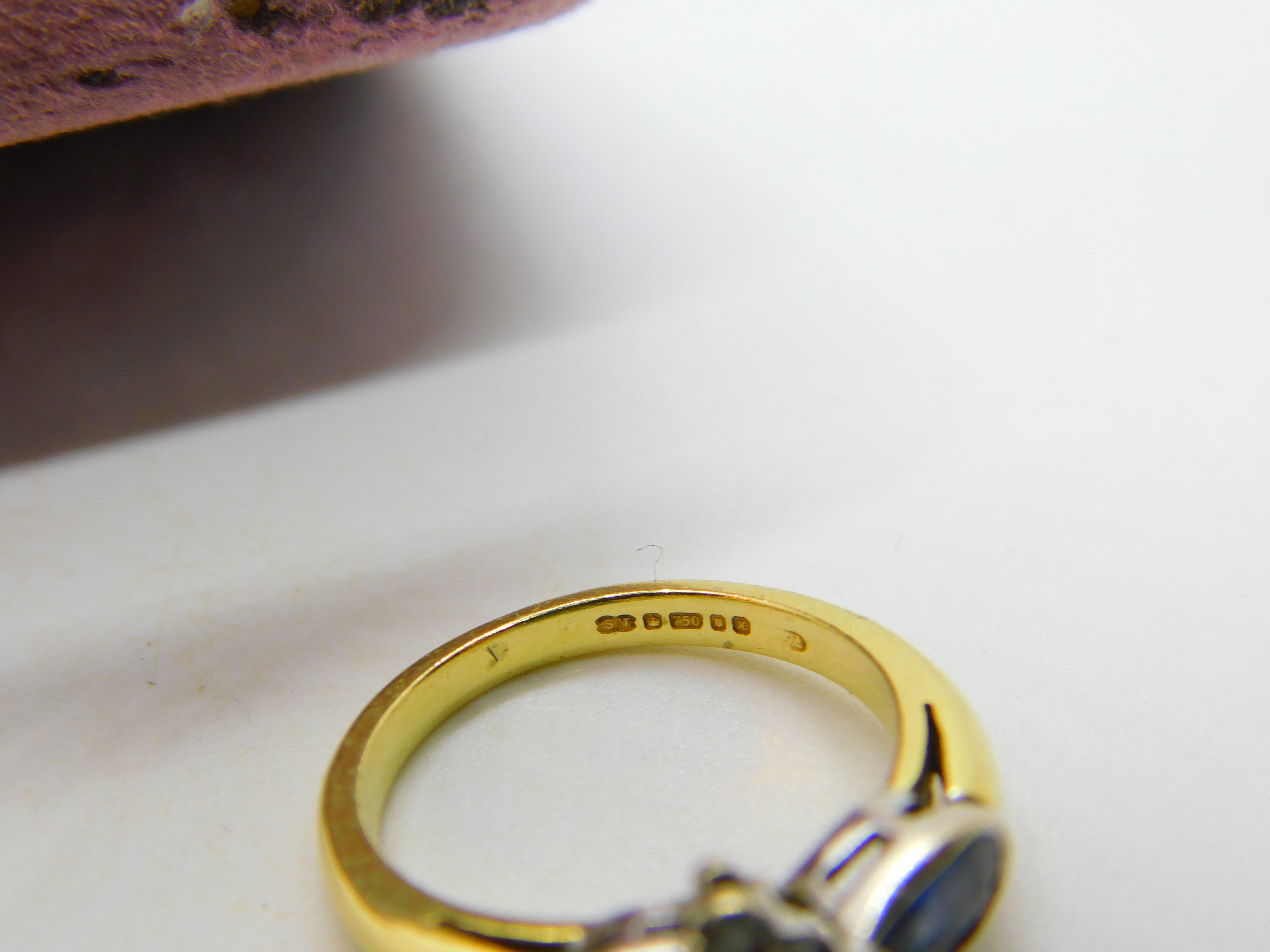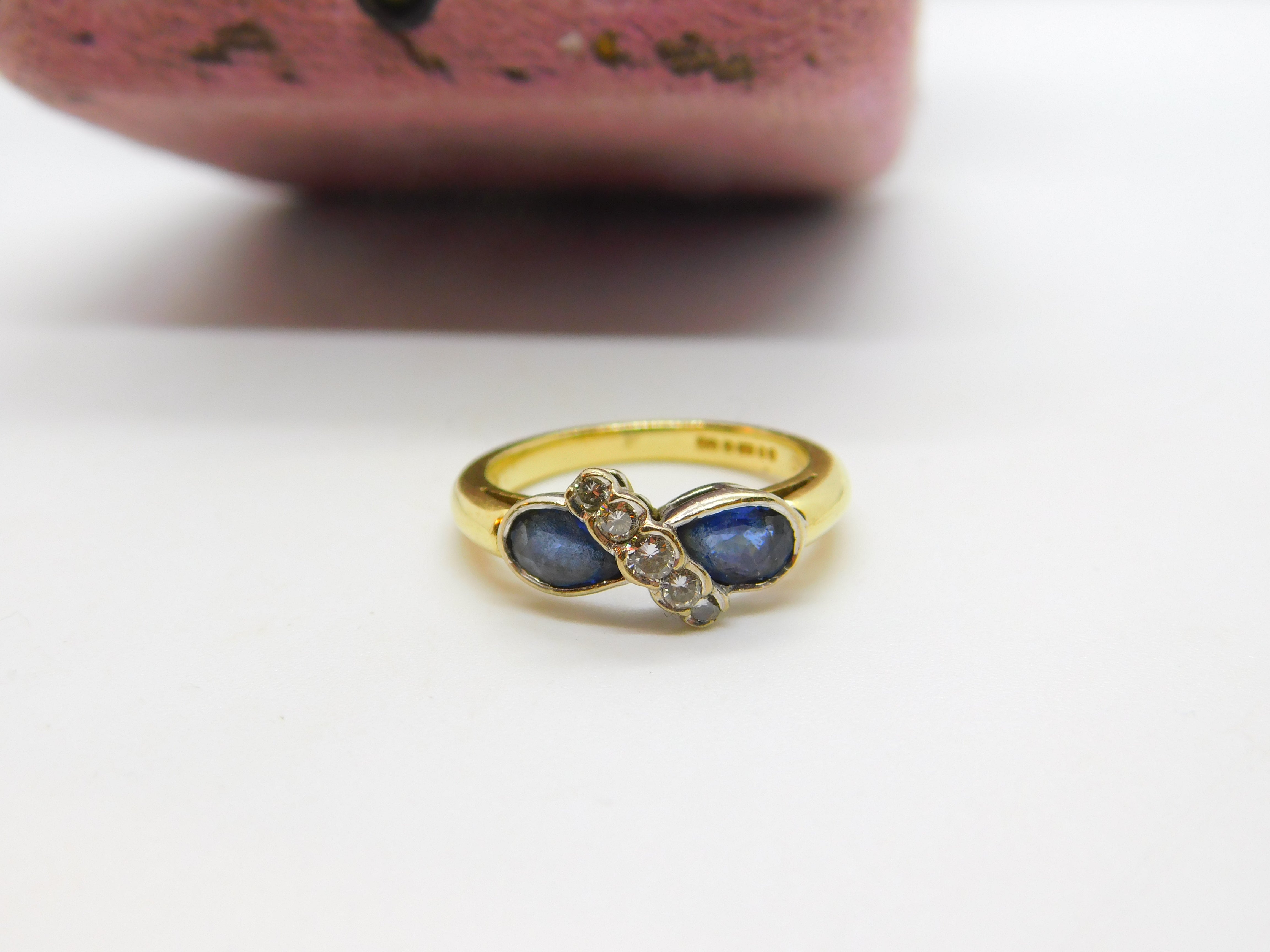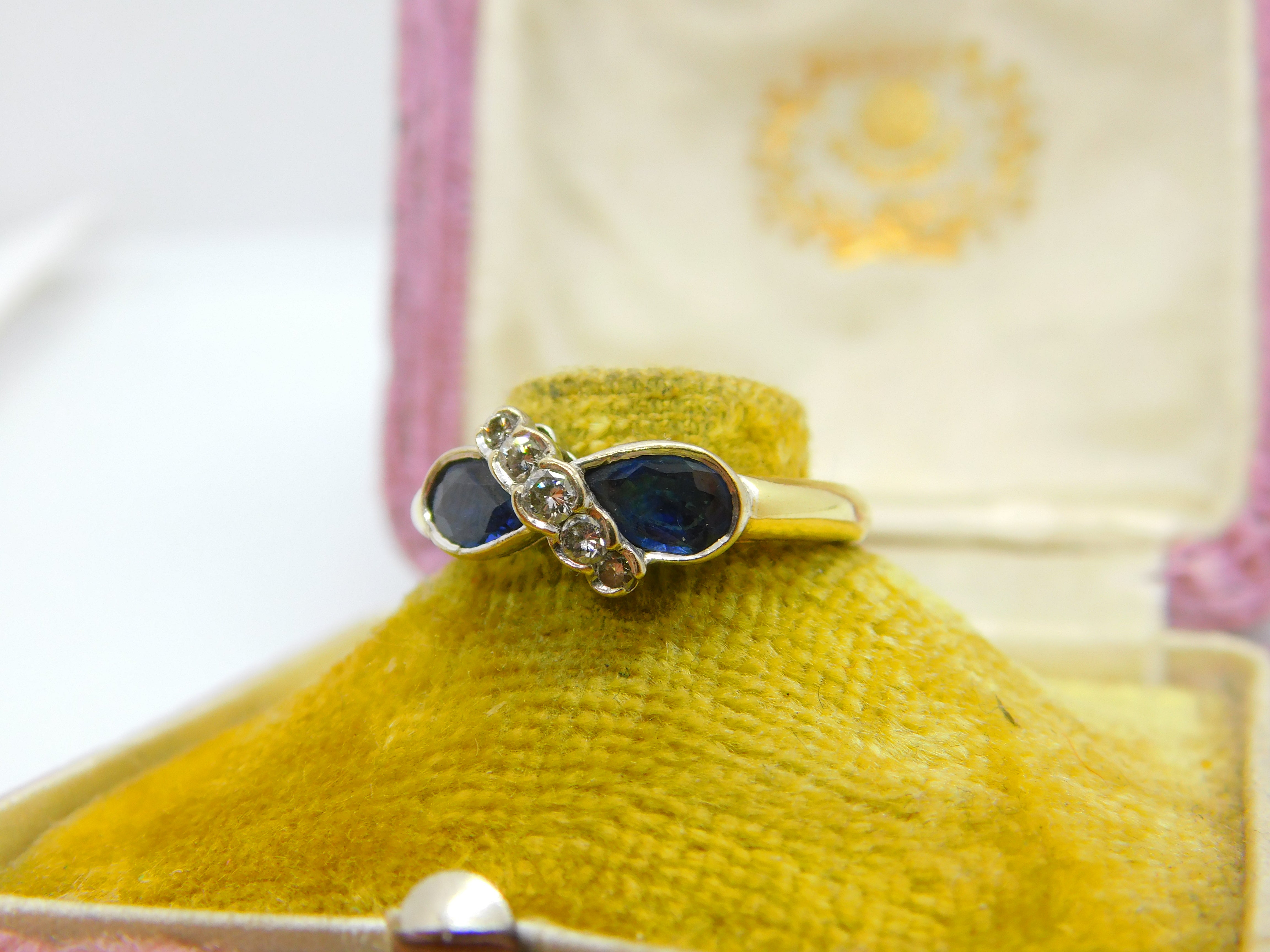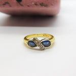 18ct Yellow Gold, Sapphire & Diamond Modernist Ring 1997 London Vintage