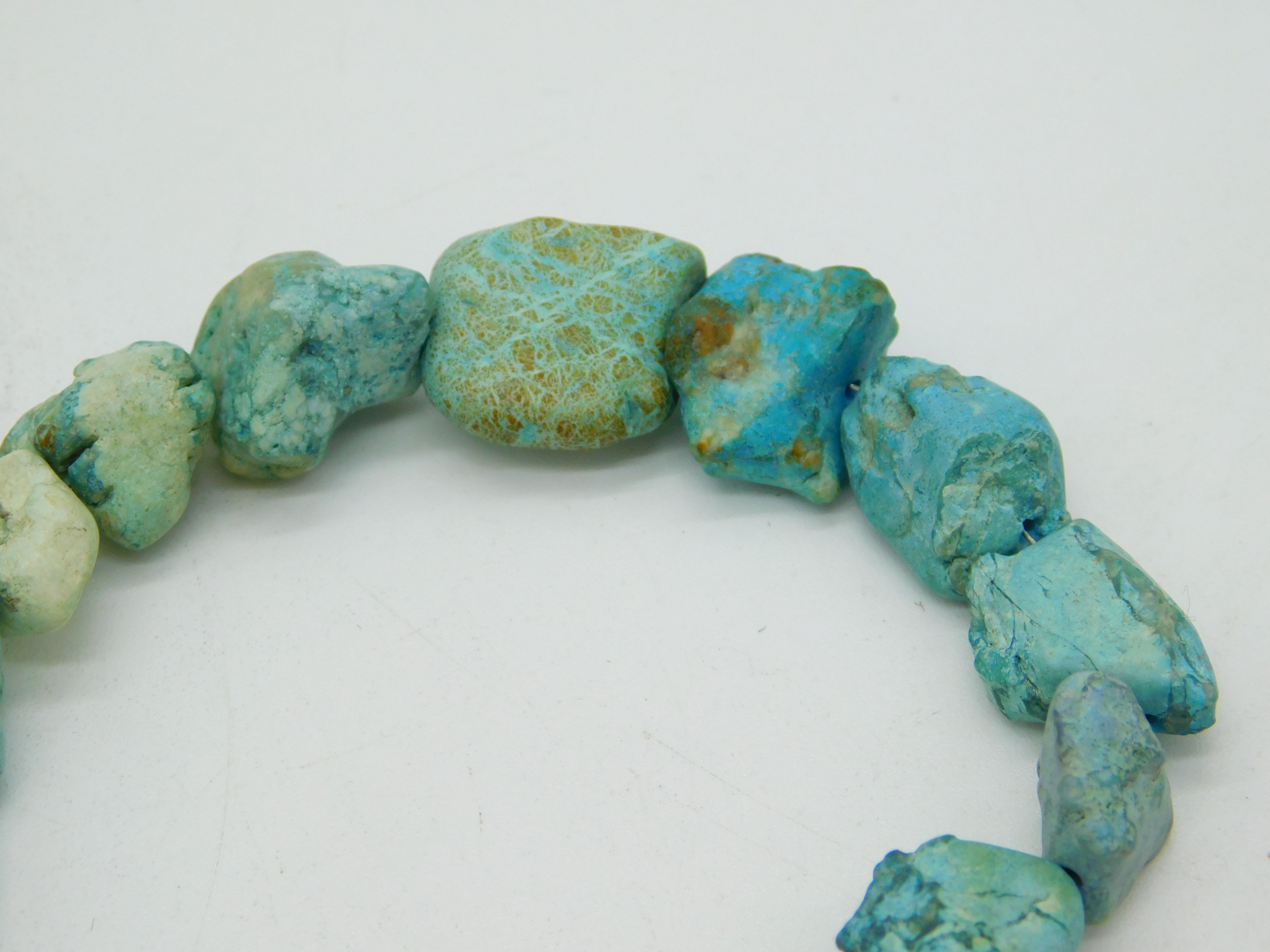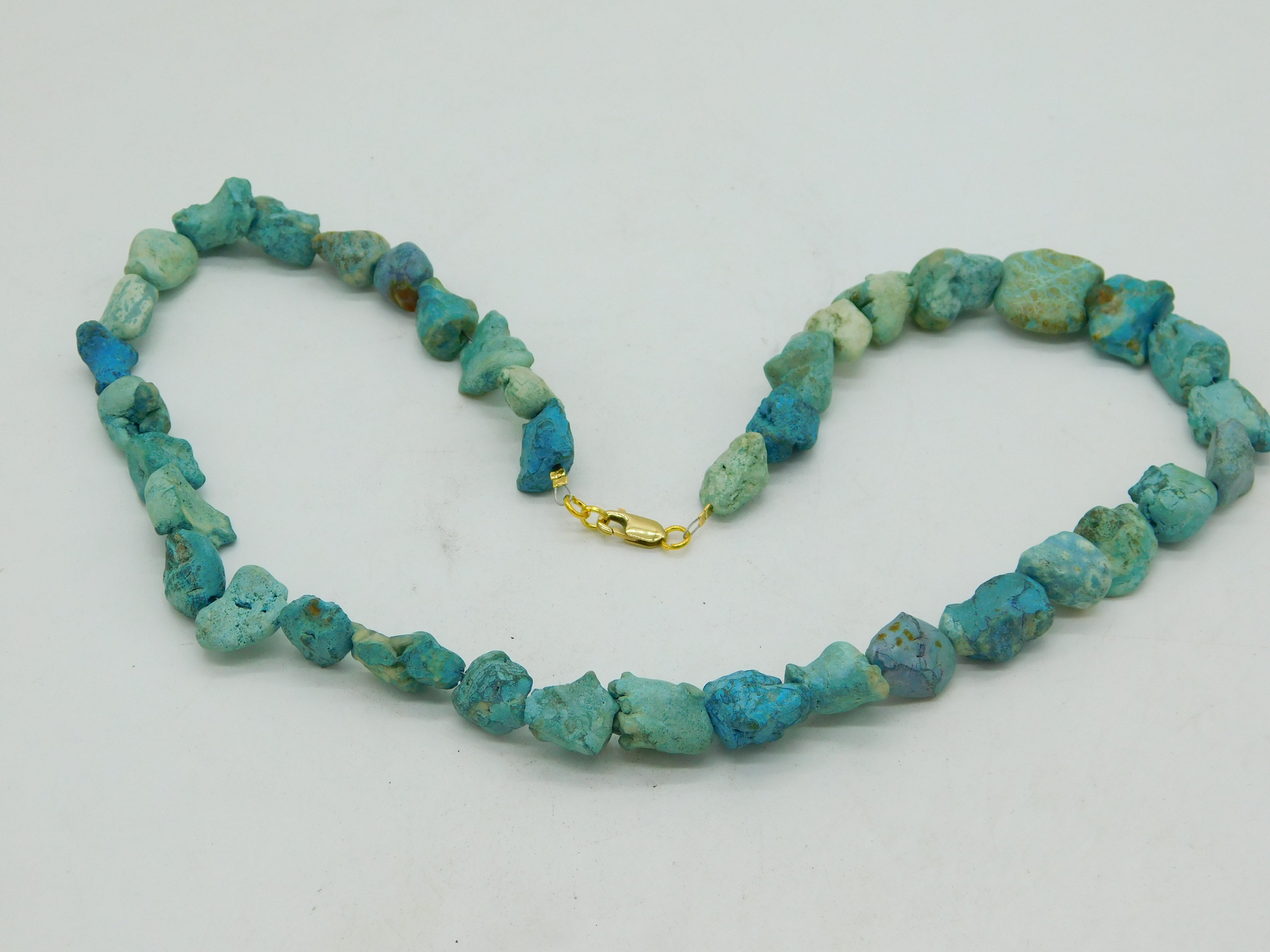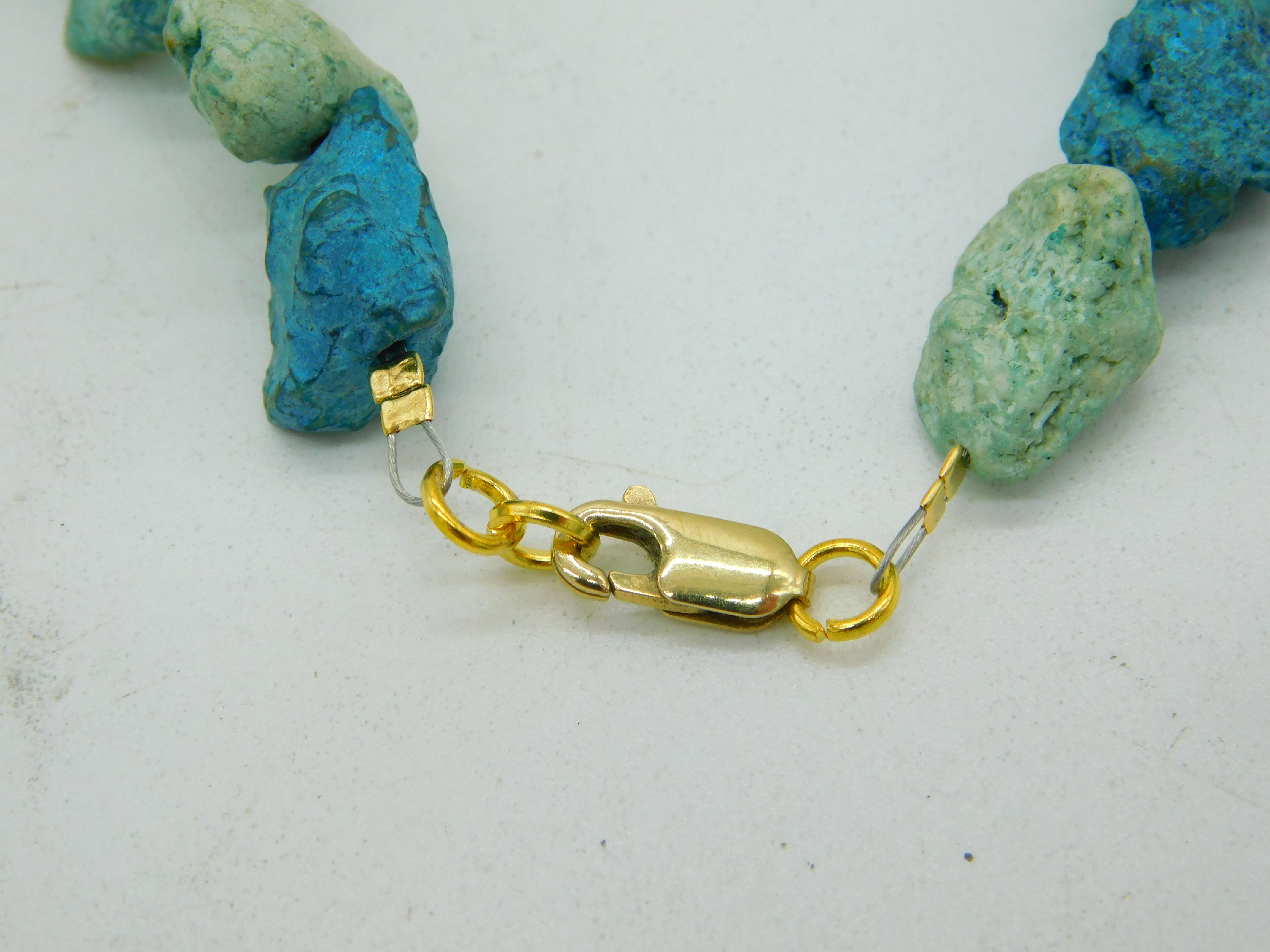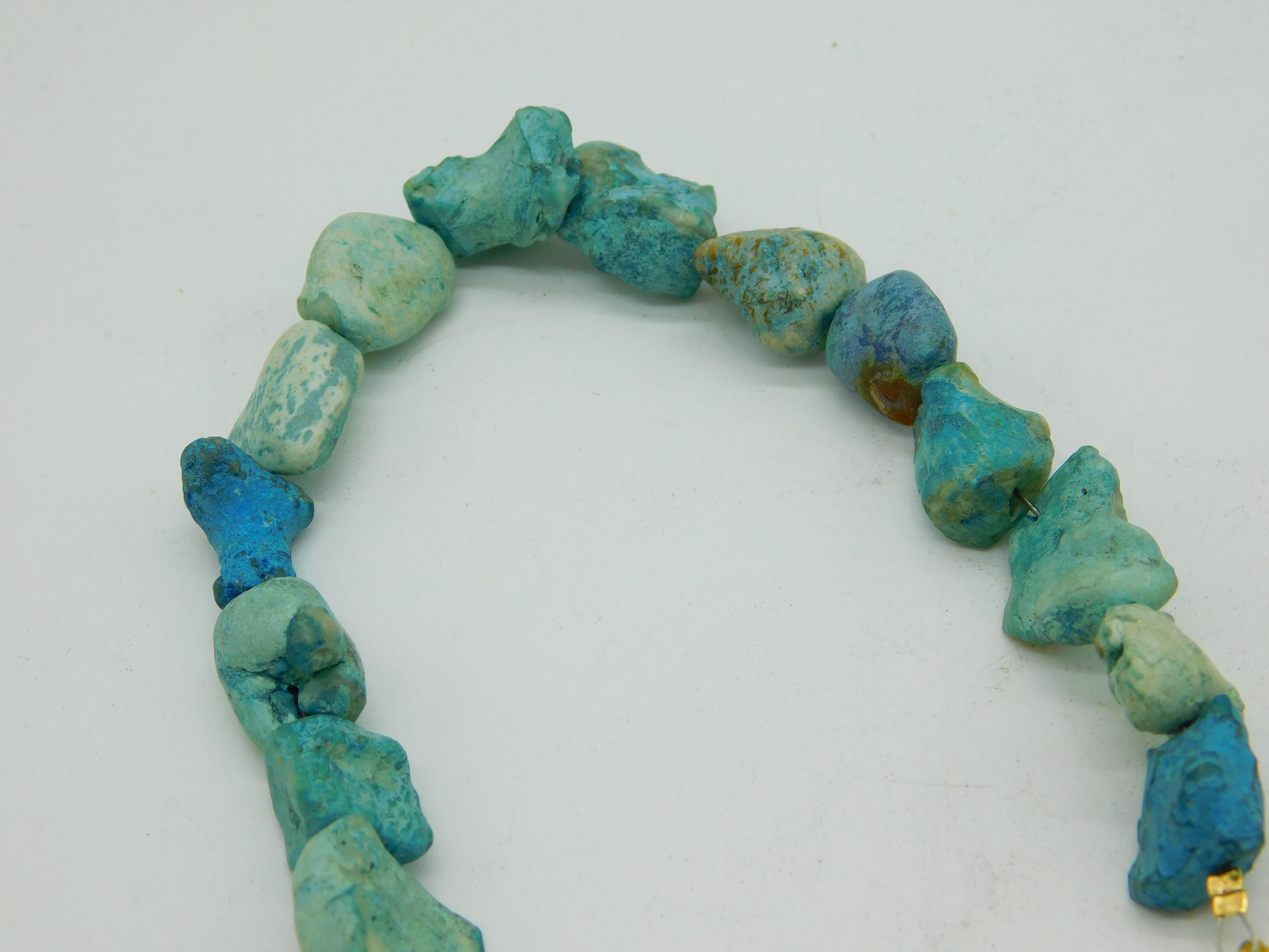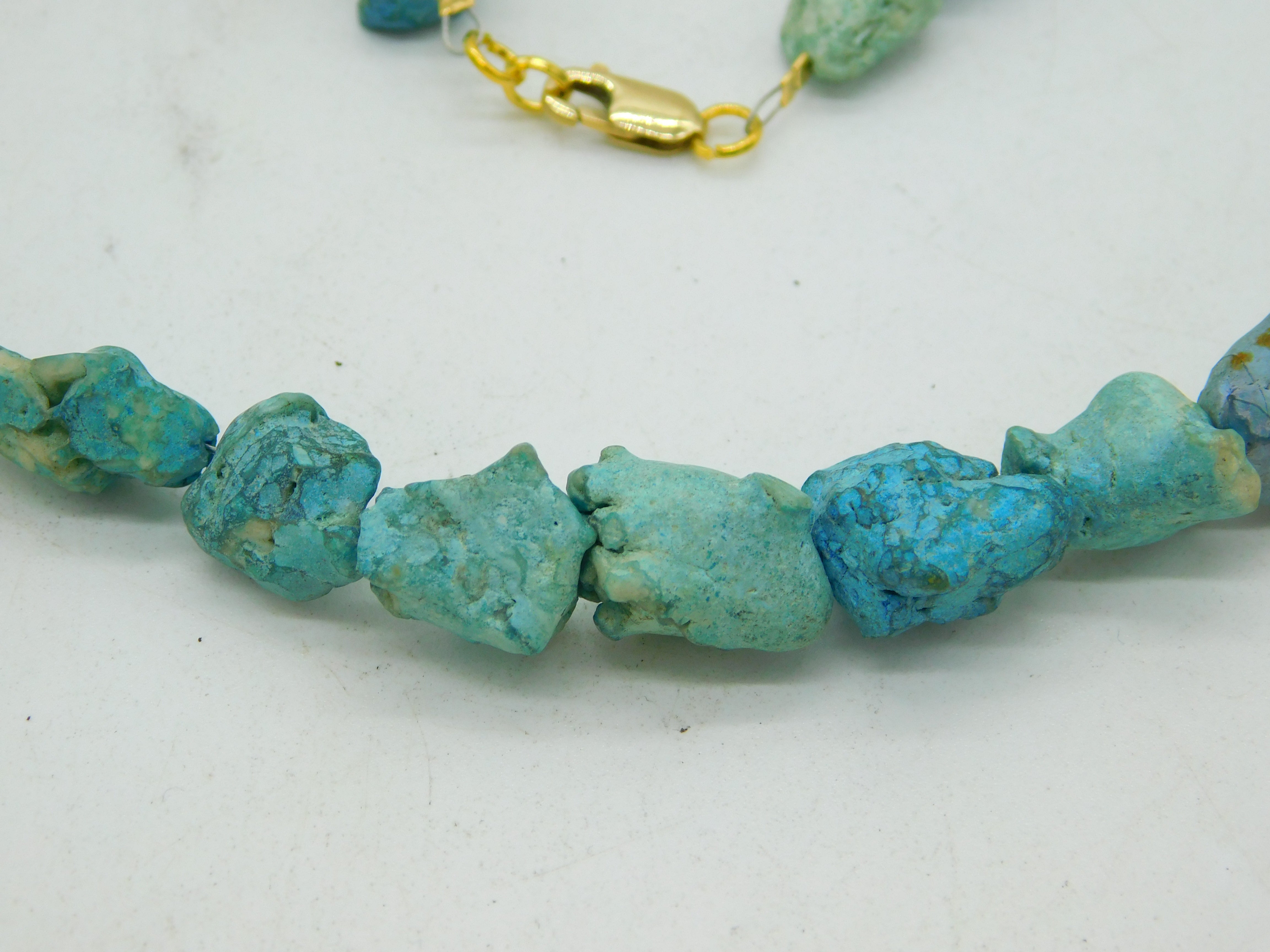 20th Century 9ct Gold Raw Turquoise Beaded Necklace Vintage c1970 52cm