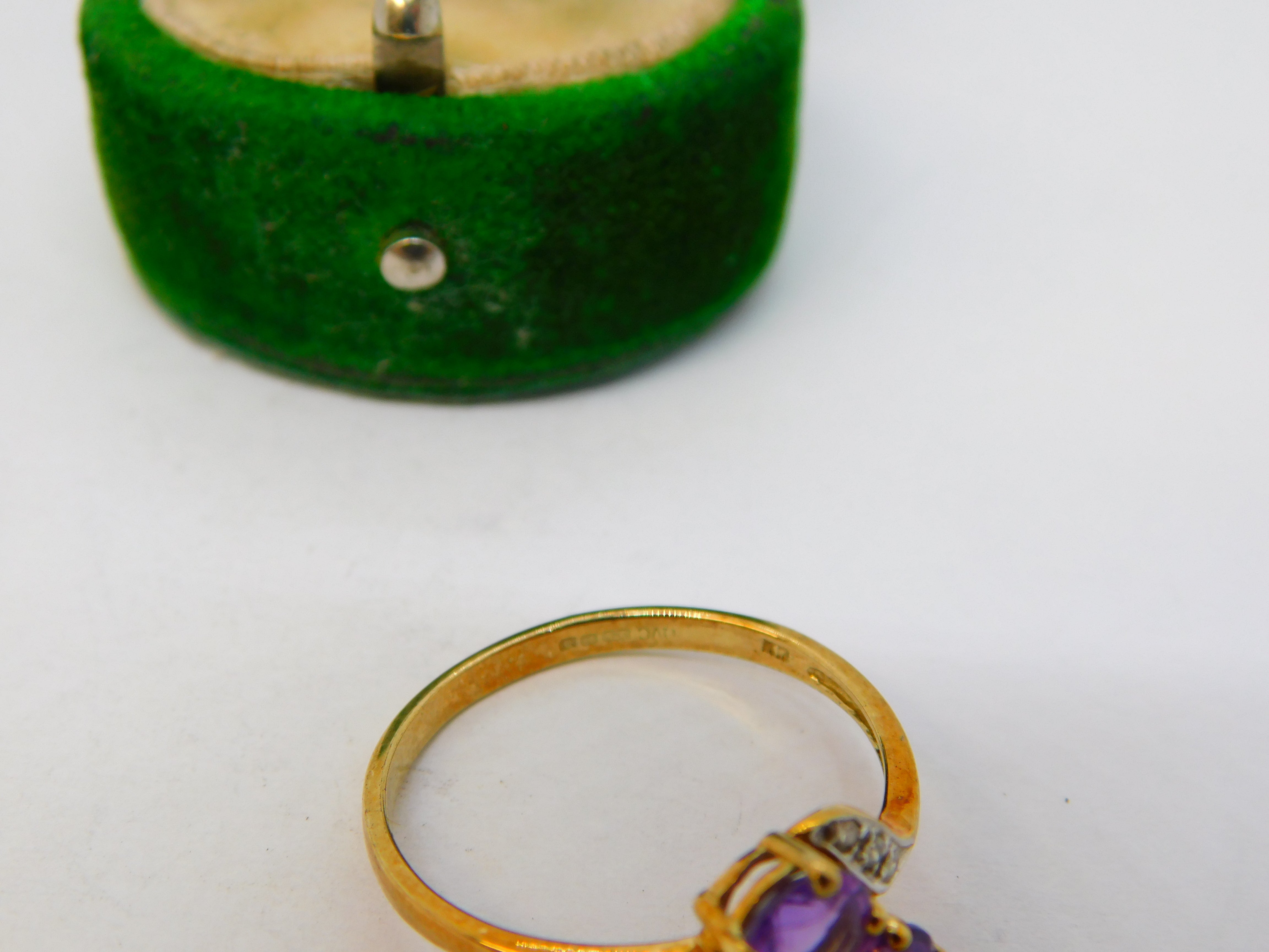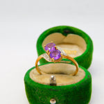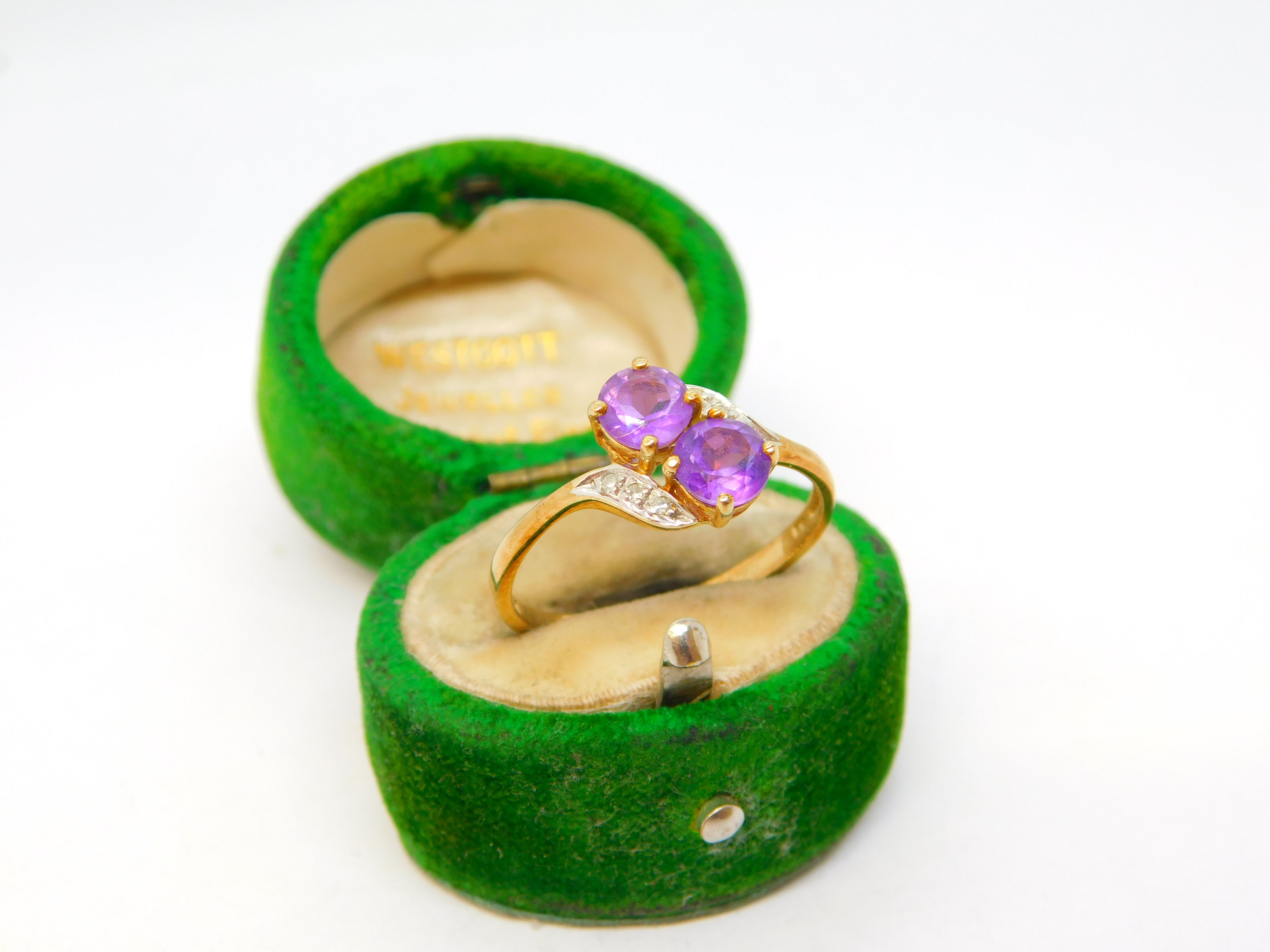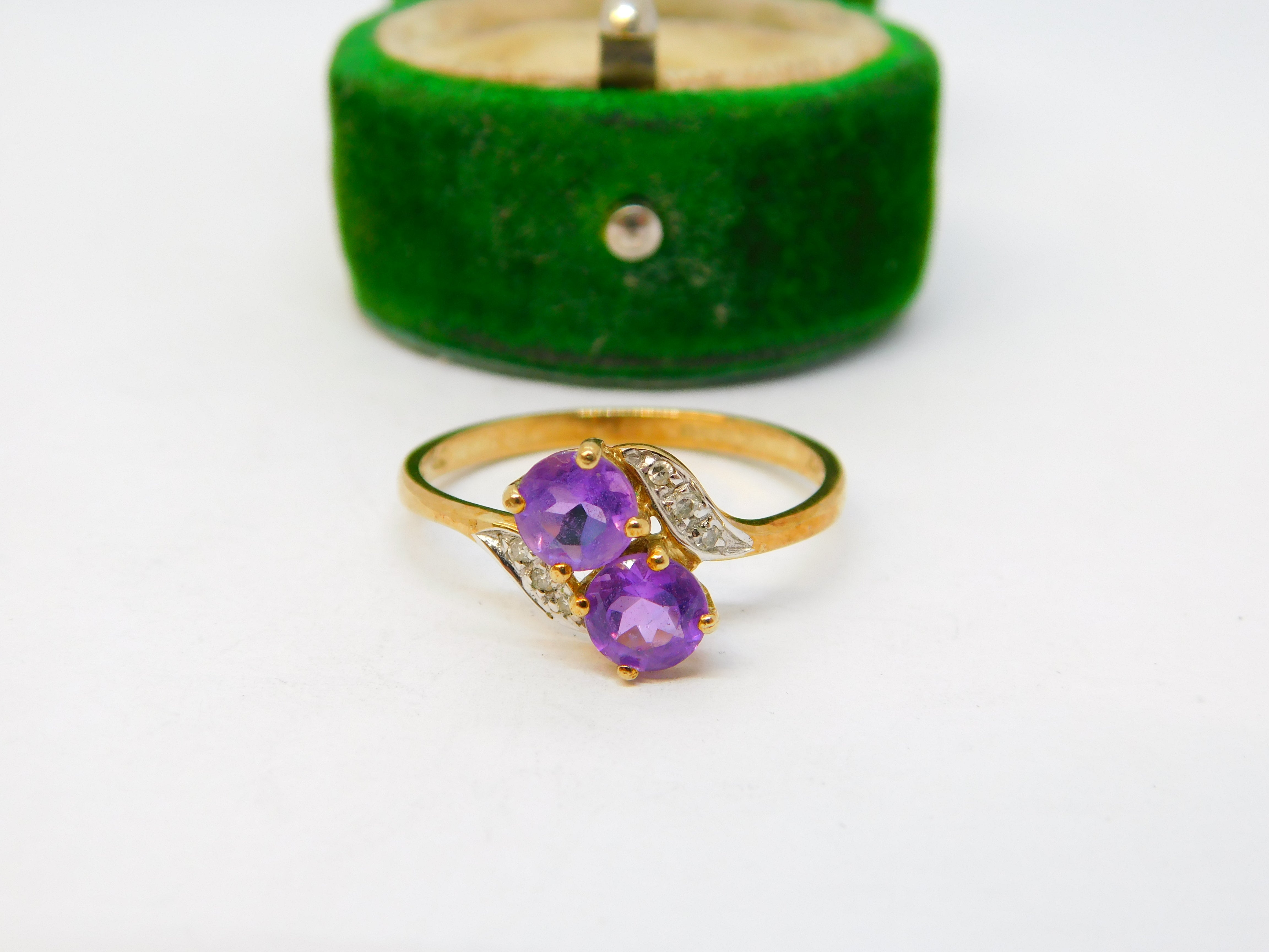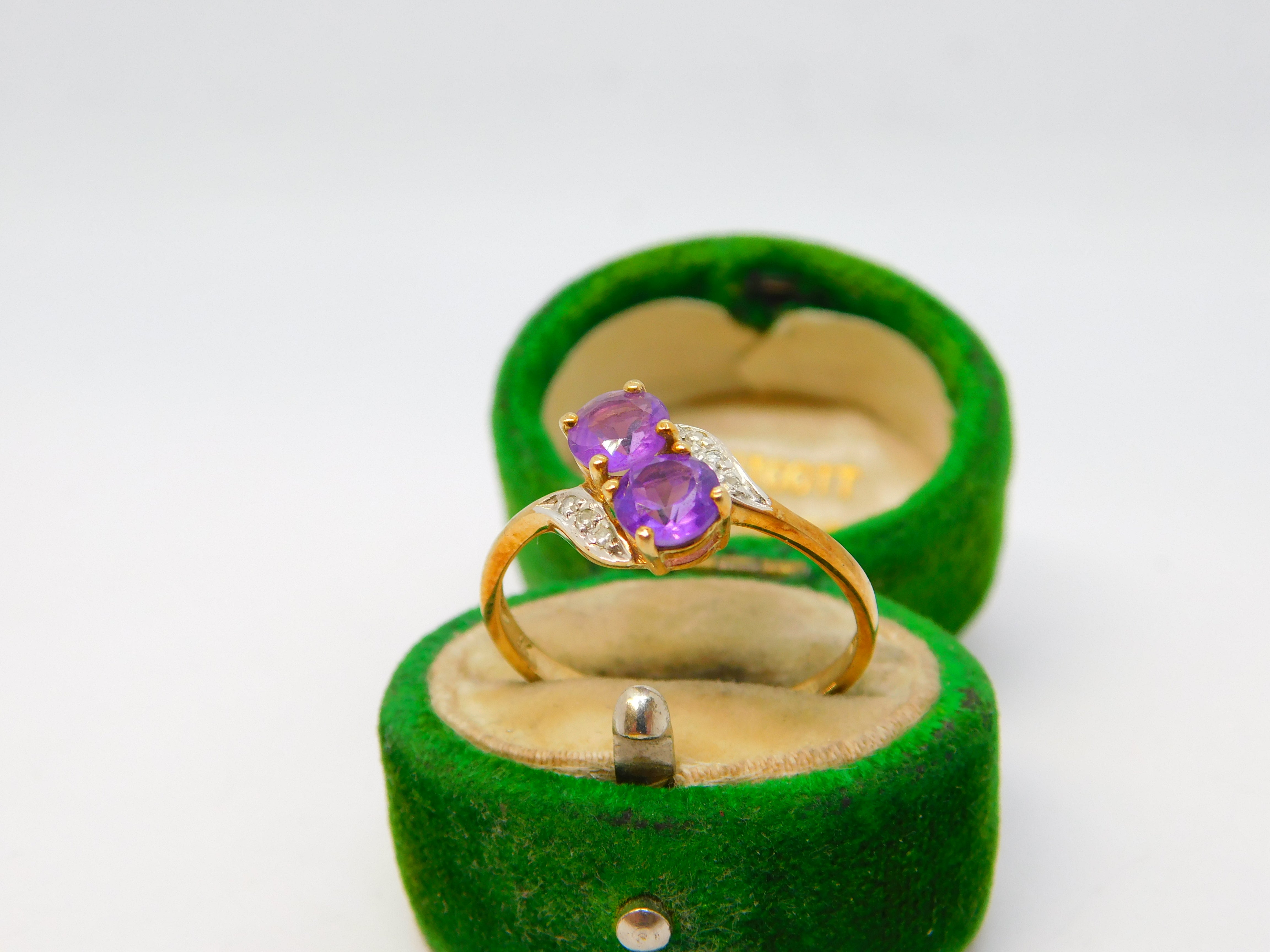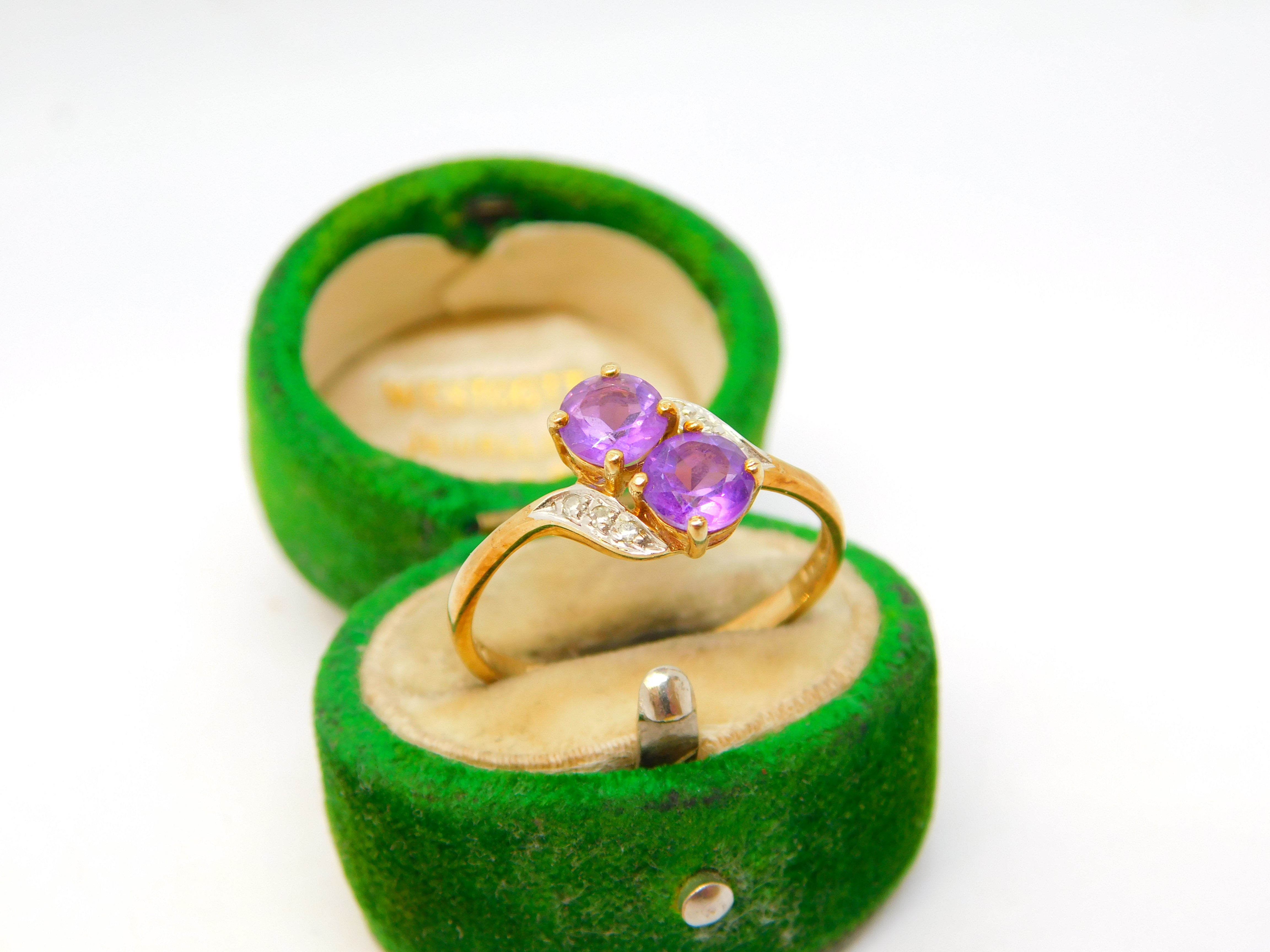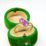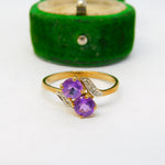 9ct Gold, Amethyst & Diamond Toi et Moi Crossover Ring Vintage c1970
