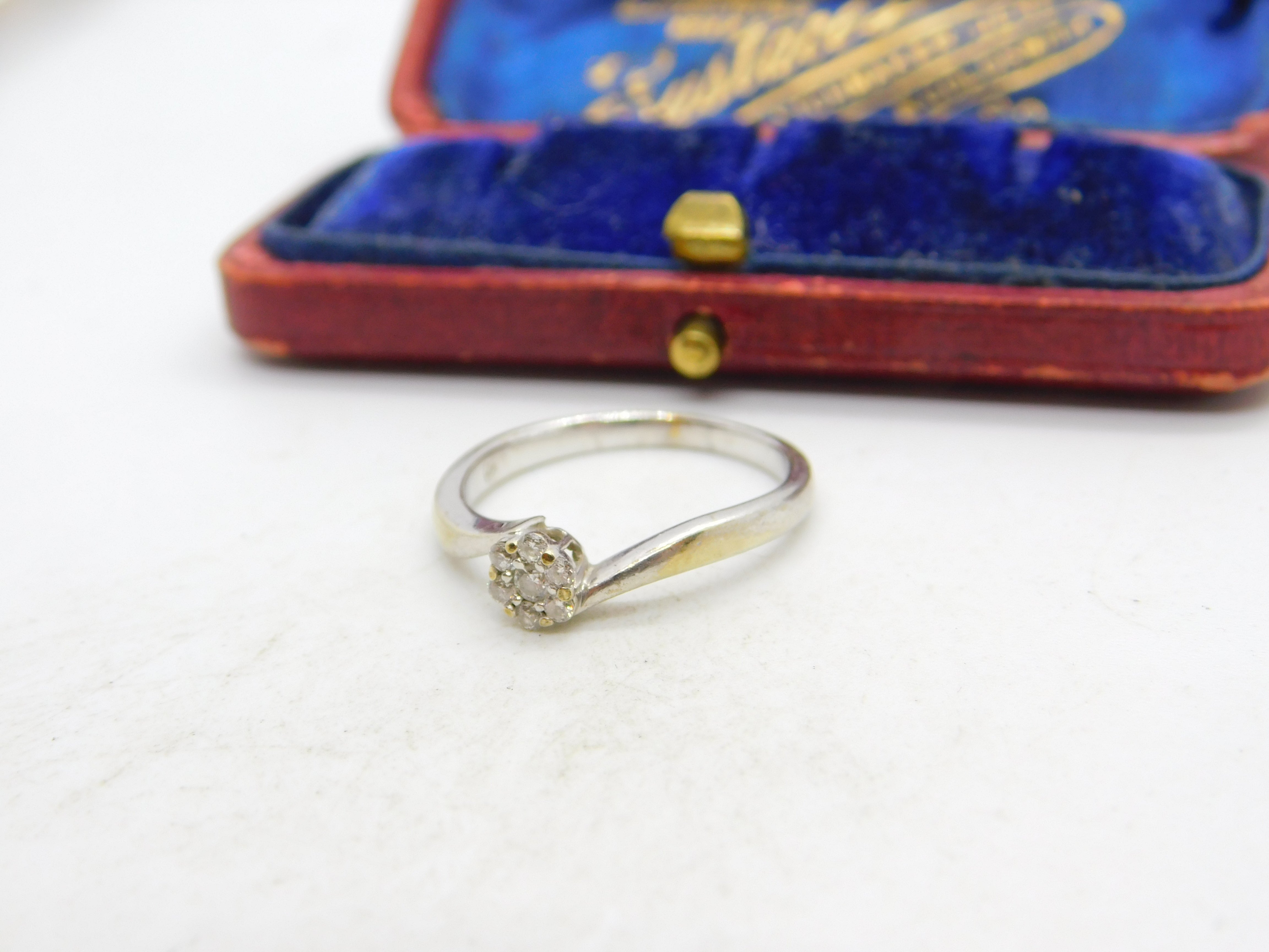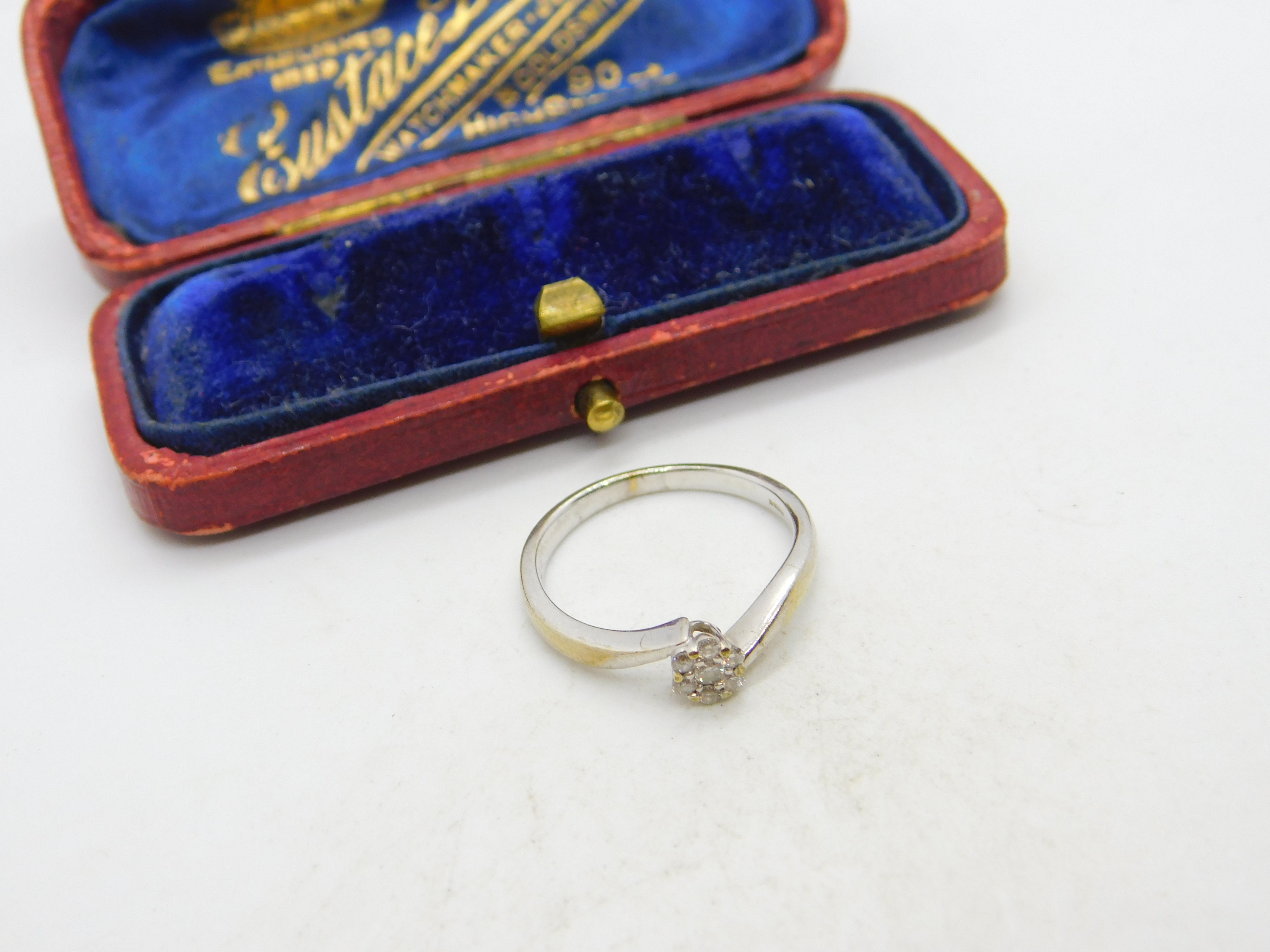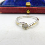 9ct White Gold Diamond Set Daisy Cluster Crossover Ring Vintage c1990