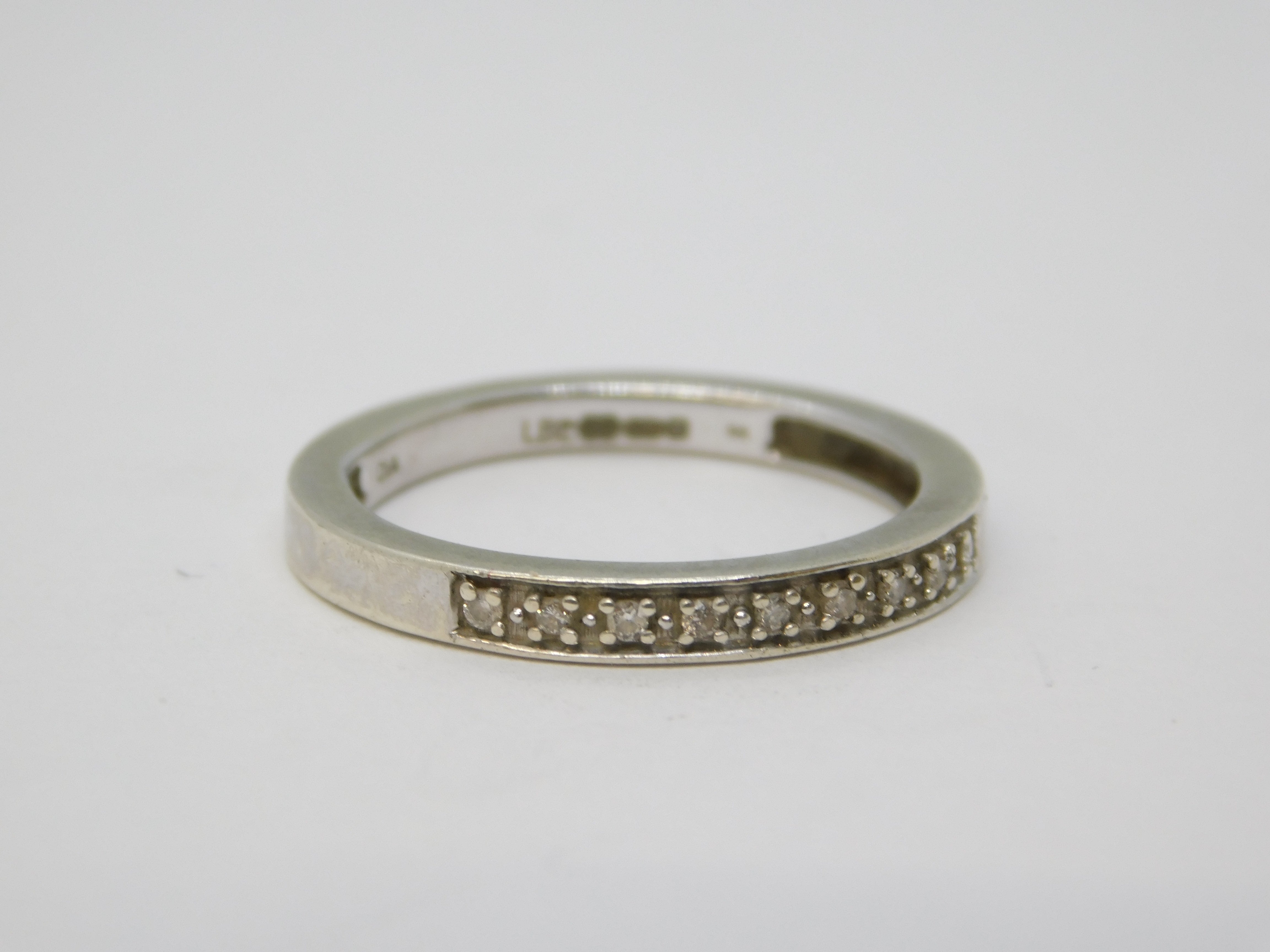Details: A fantastic and wonderfully designed vintage 9ct white gold half-eternity ring set with small diamonds hallmarked London c1990 to the interior, the diamonds have been tested. This is a wonderful item that would make a perfect gift or addition to any collection. We are more than happy to provide XRF reports for items upon request.