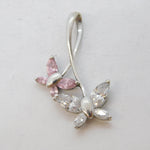 9ct White Gold, Pink Topaz & Paste Butterfly Drop Pendant Vintage c1990