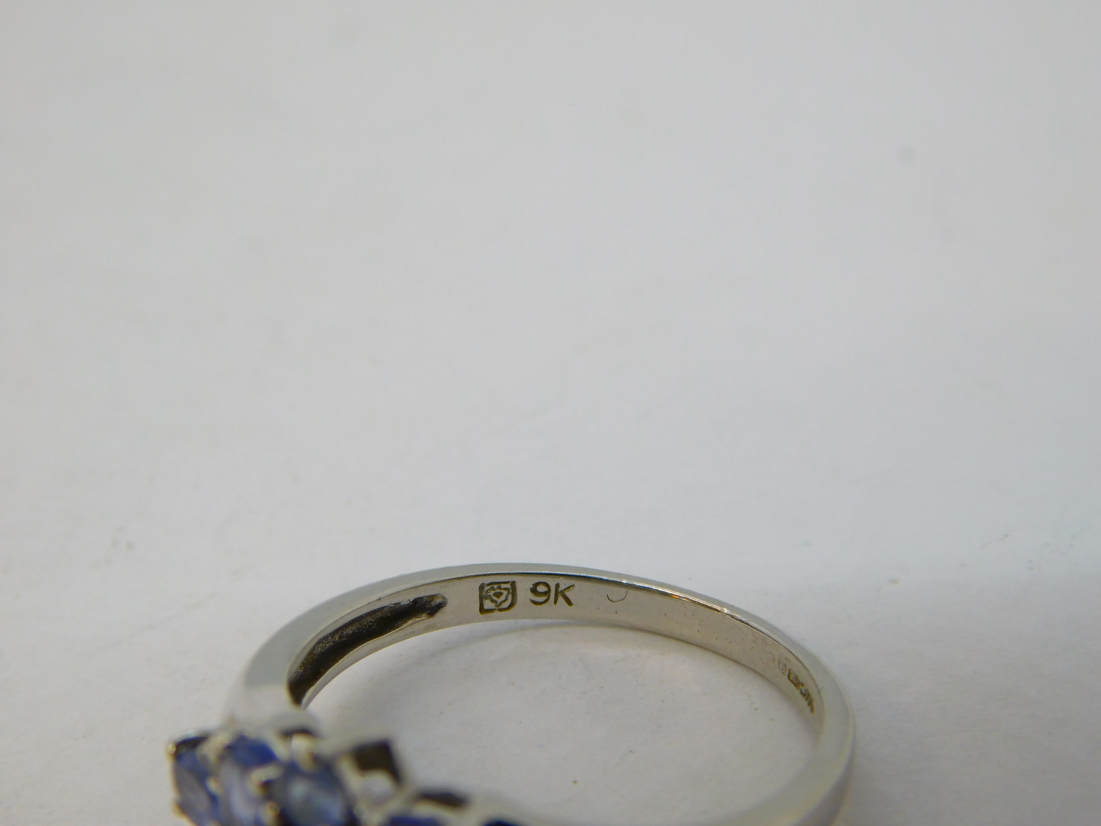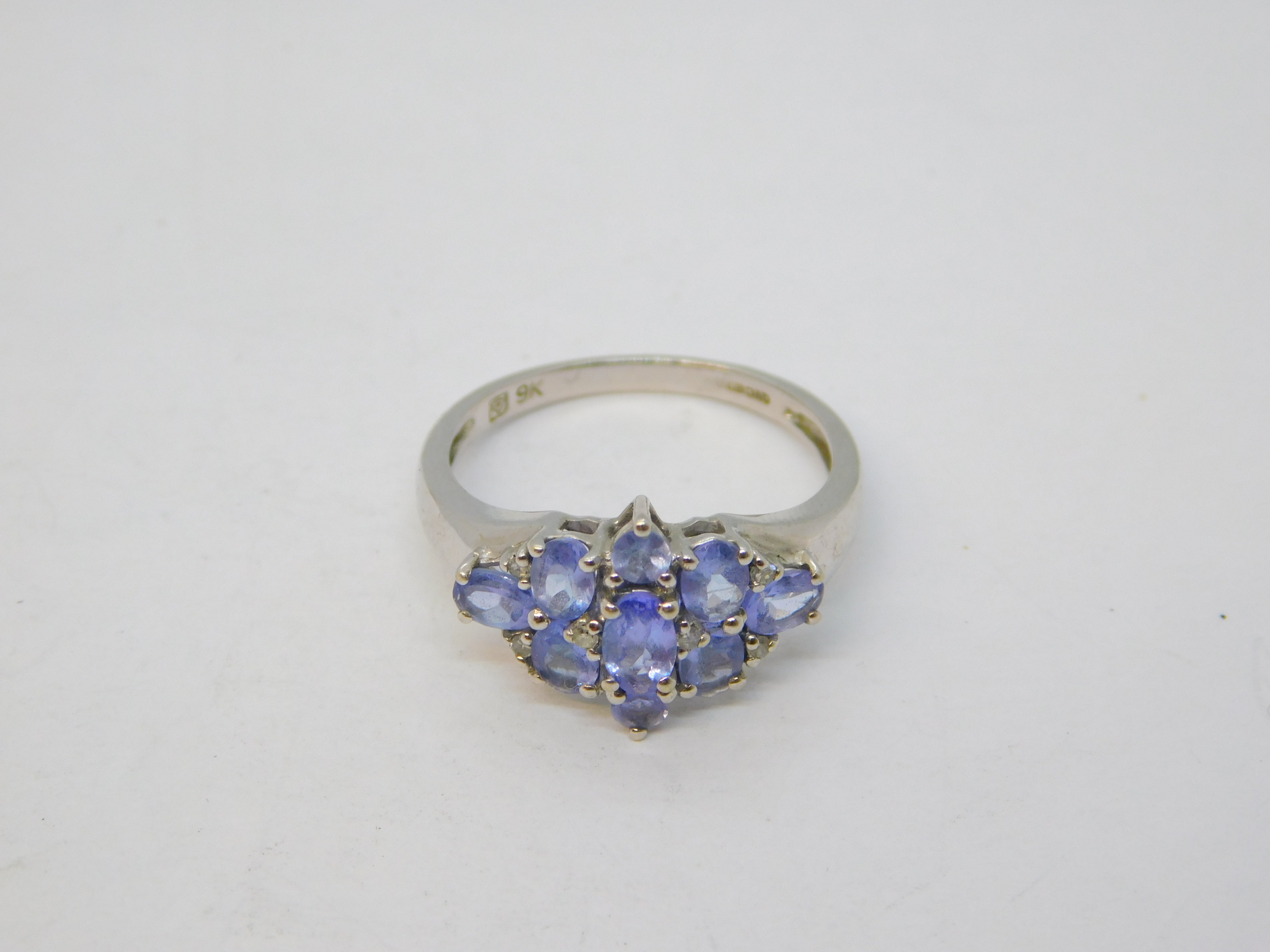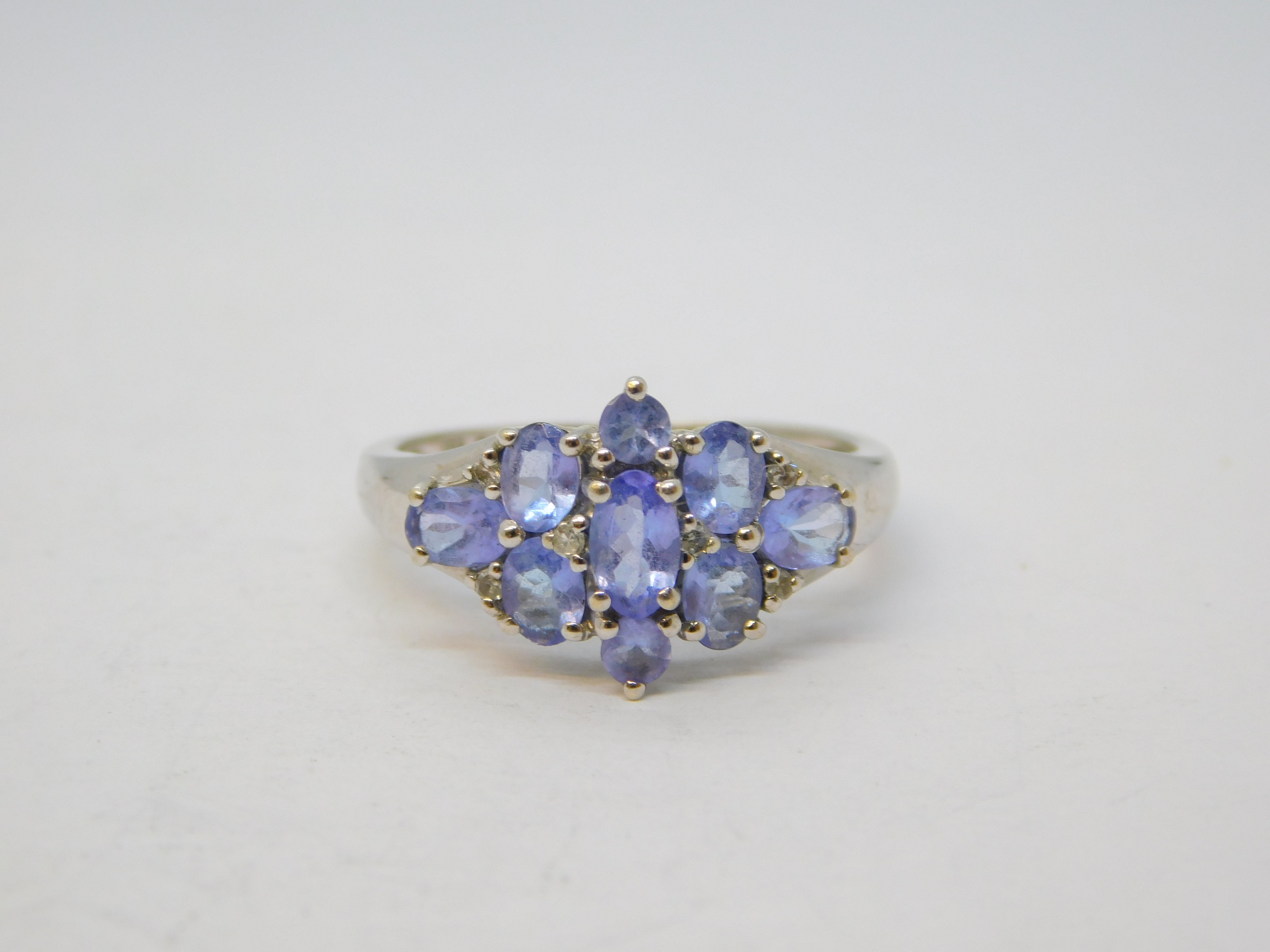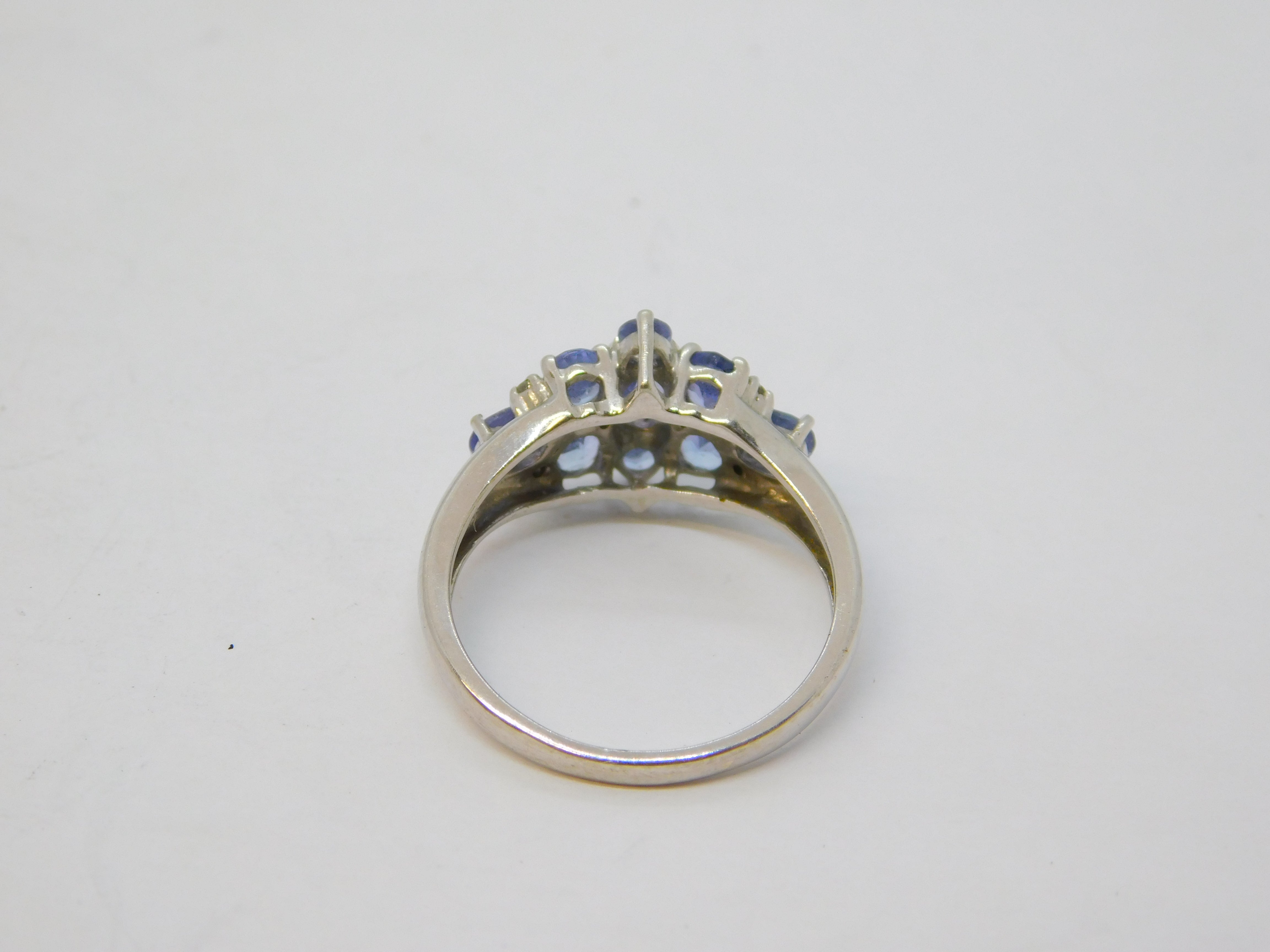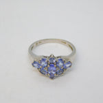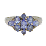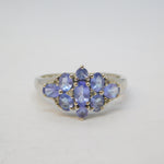 9ct White Gold & Tanzanite Set Cluster Ring Vintage c1980