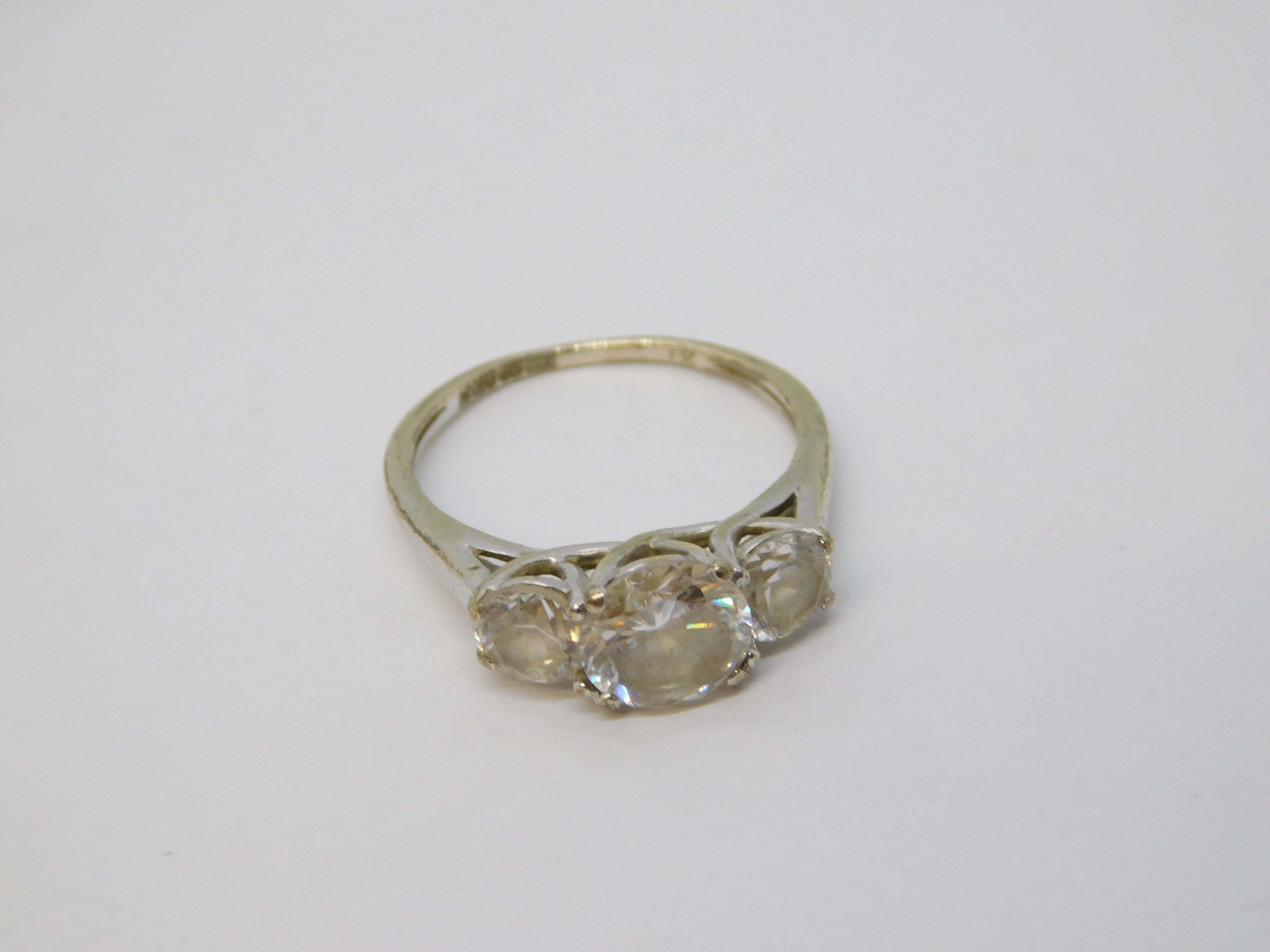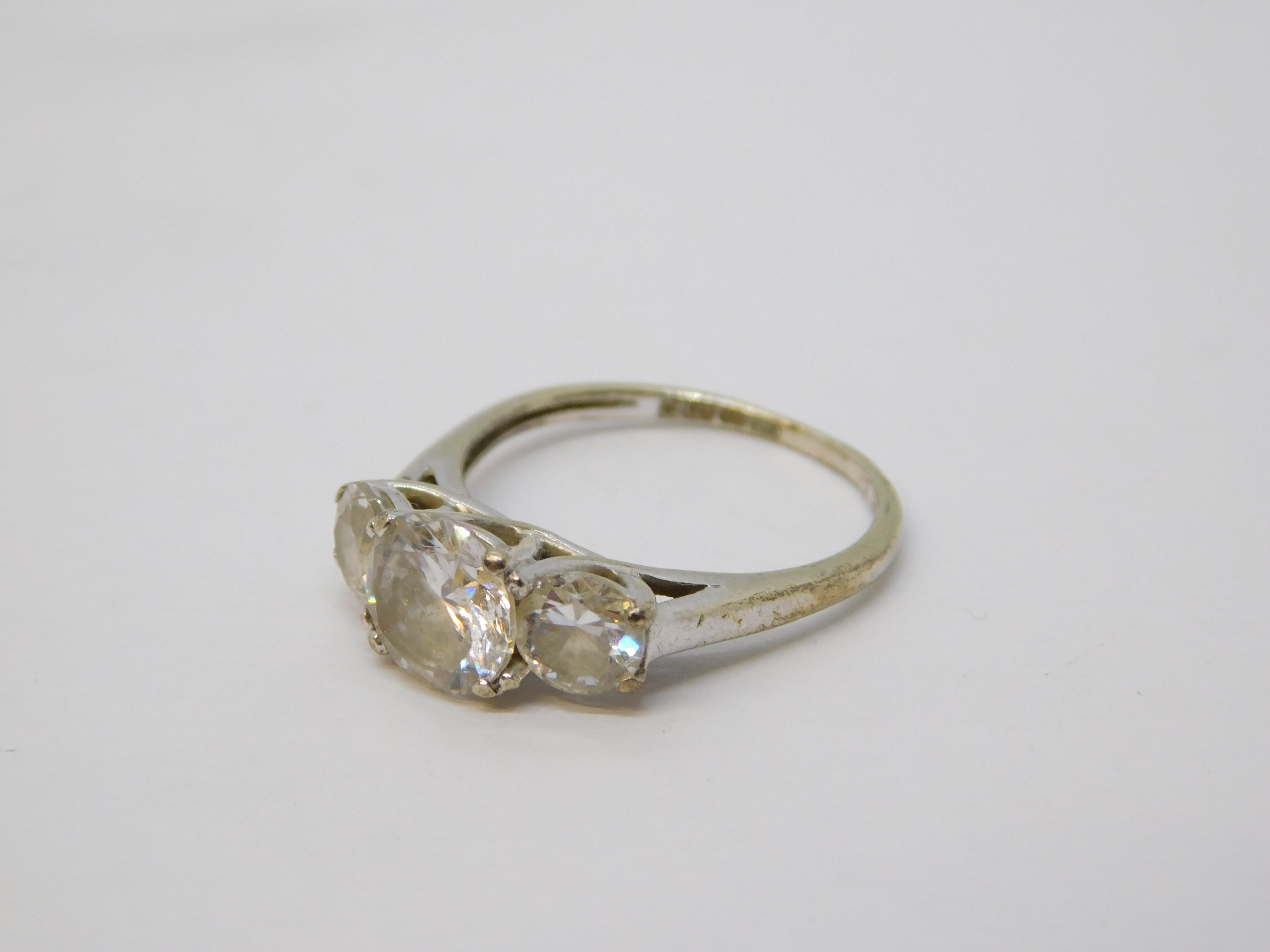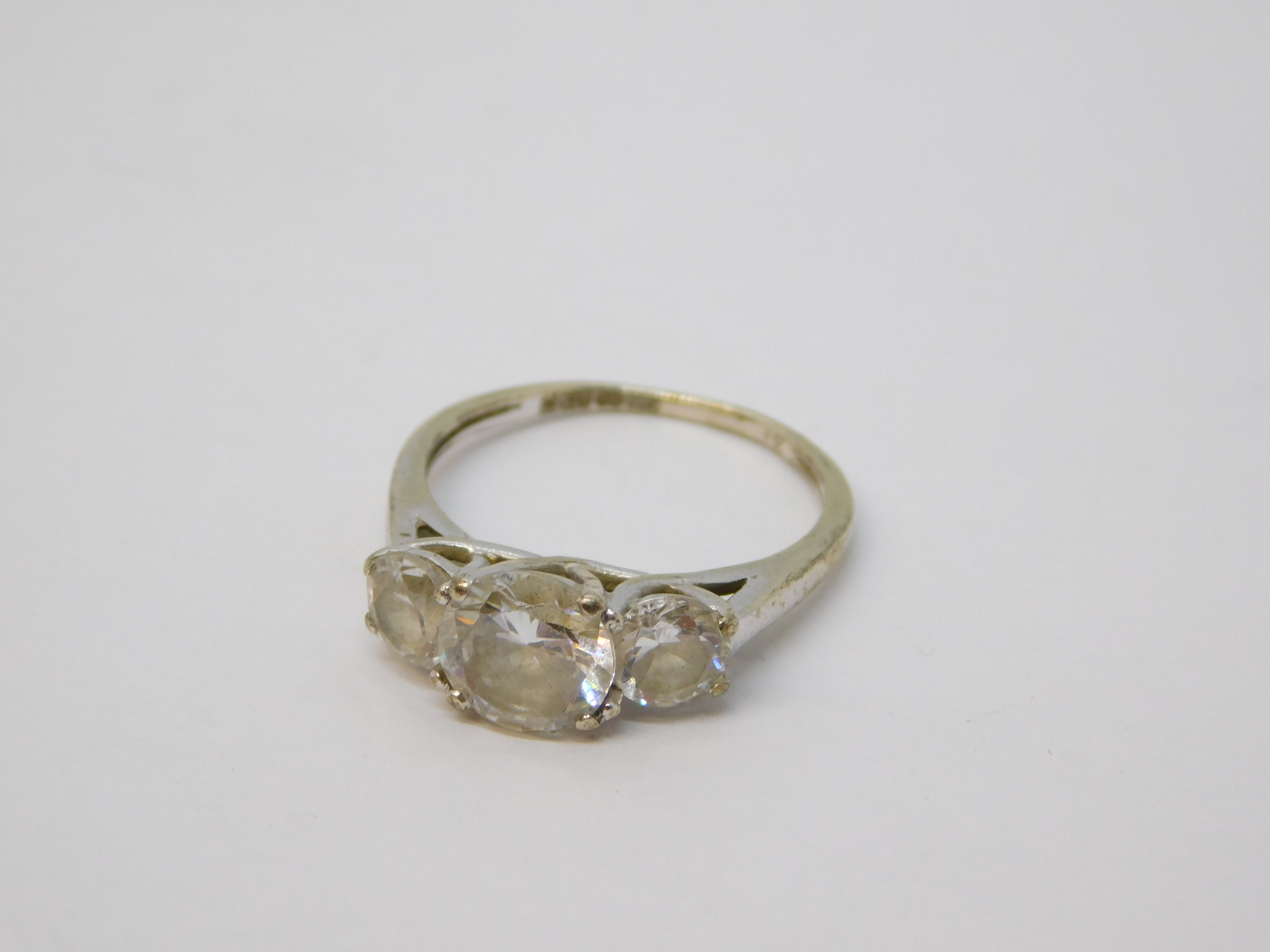 9ct White Gold Three-Stone Spinel Set Dress Ring Vintage c1980 Sheffield