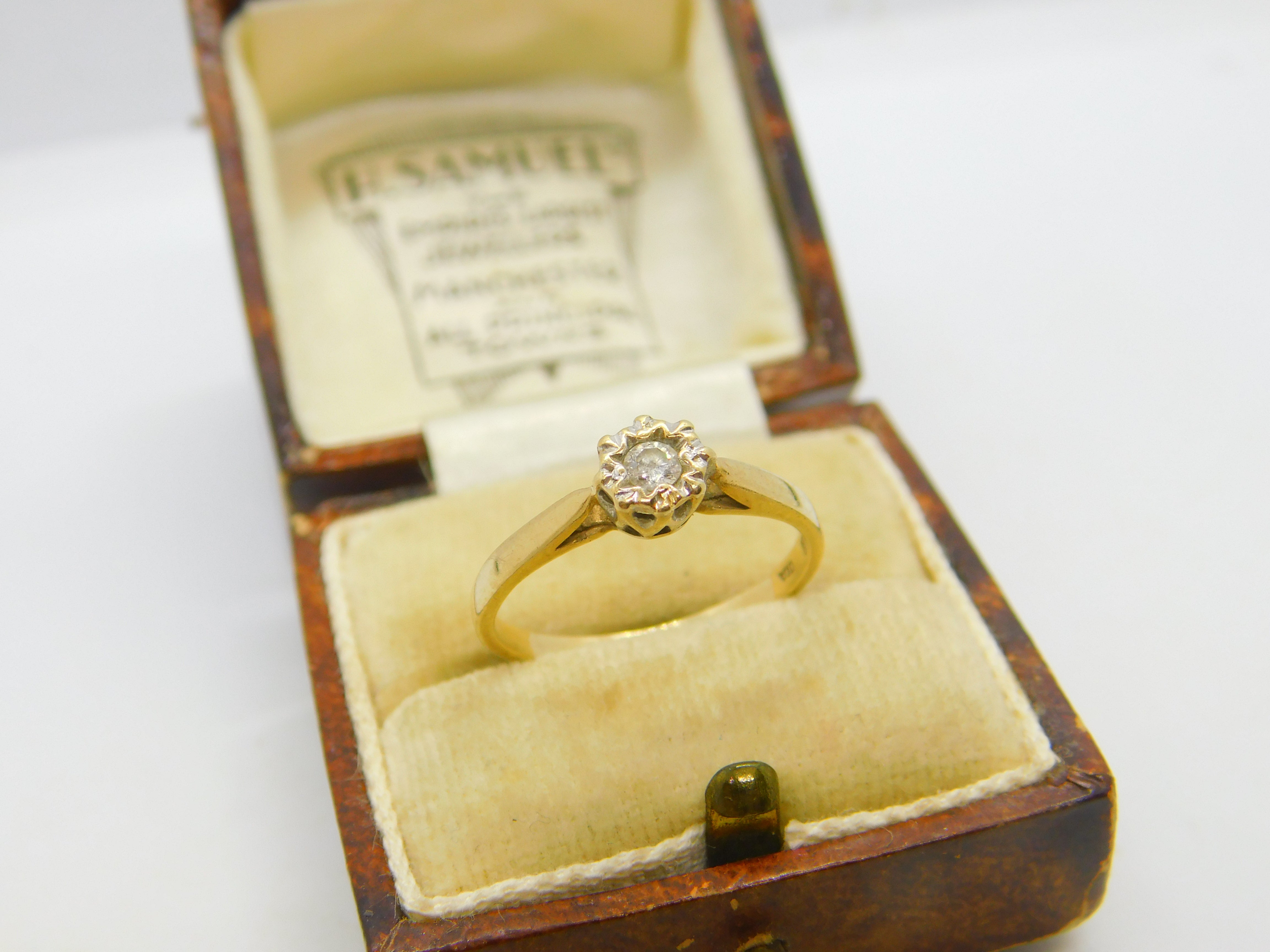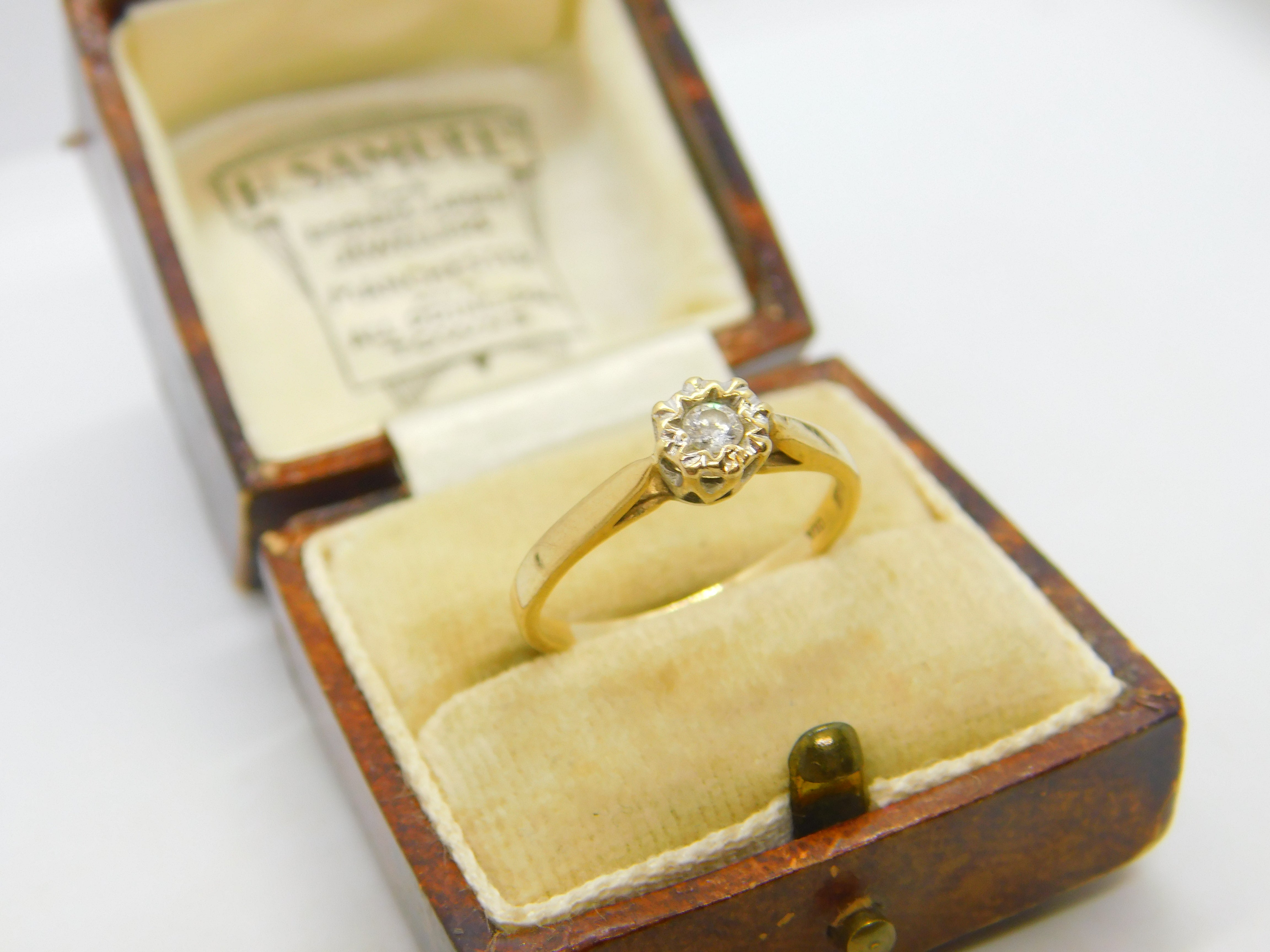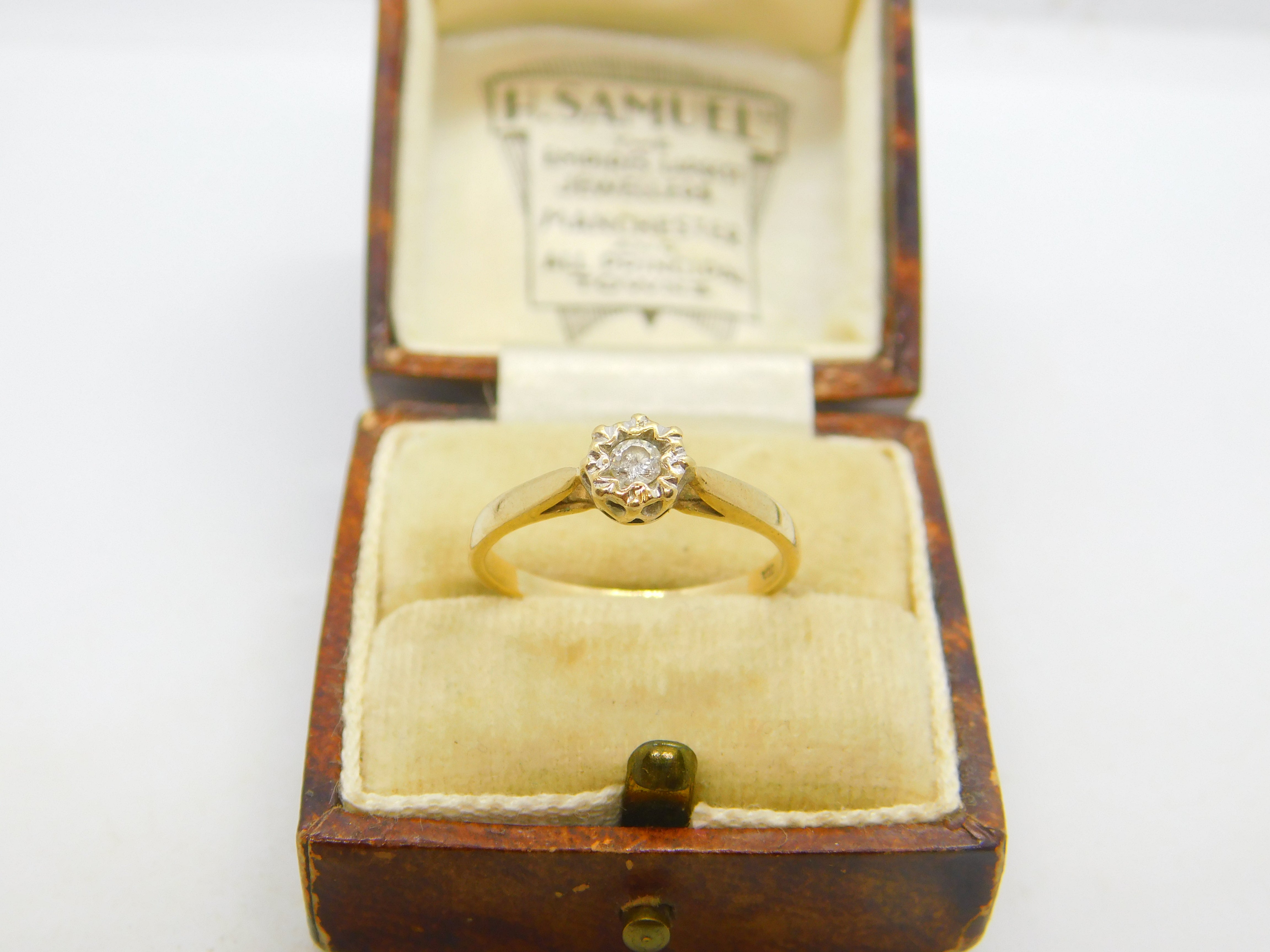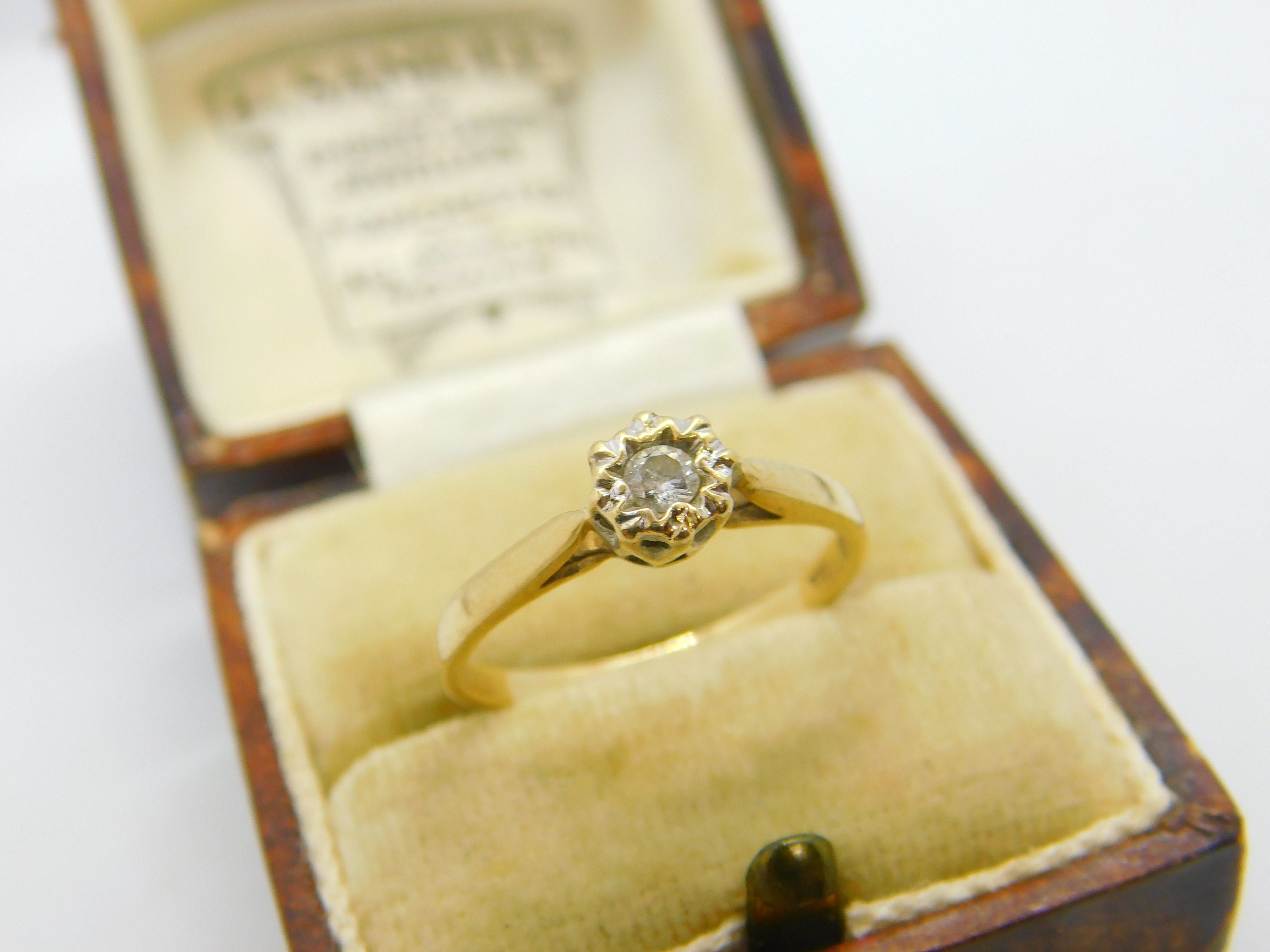 9ct Yellow Gold & 0.15ct Diamond Set Solitaire Ring Vintage c1990 Sheffield