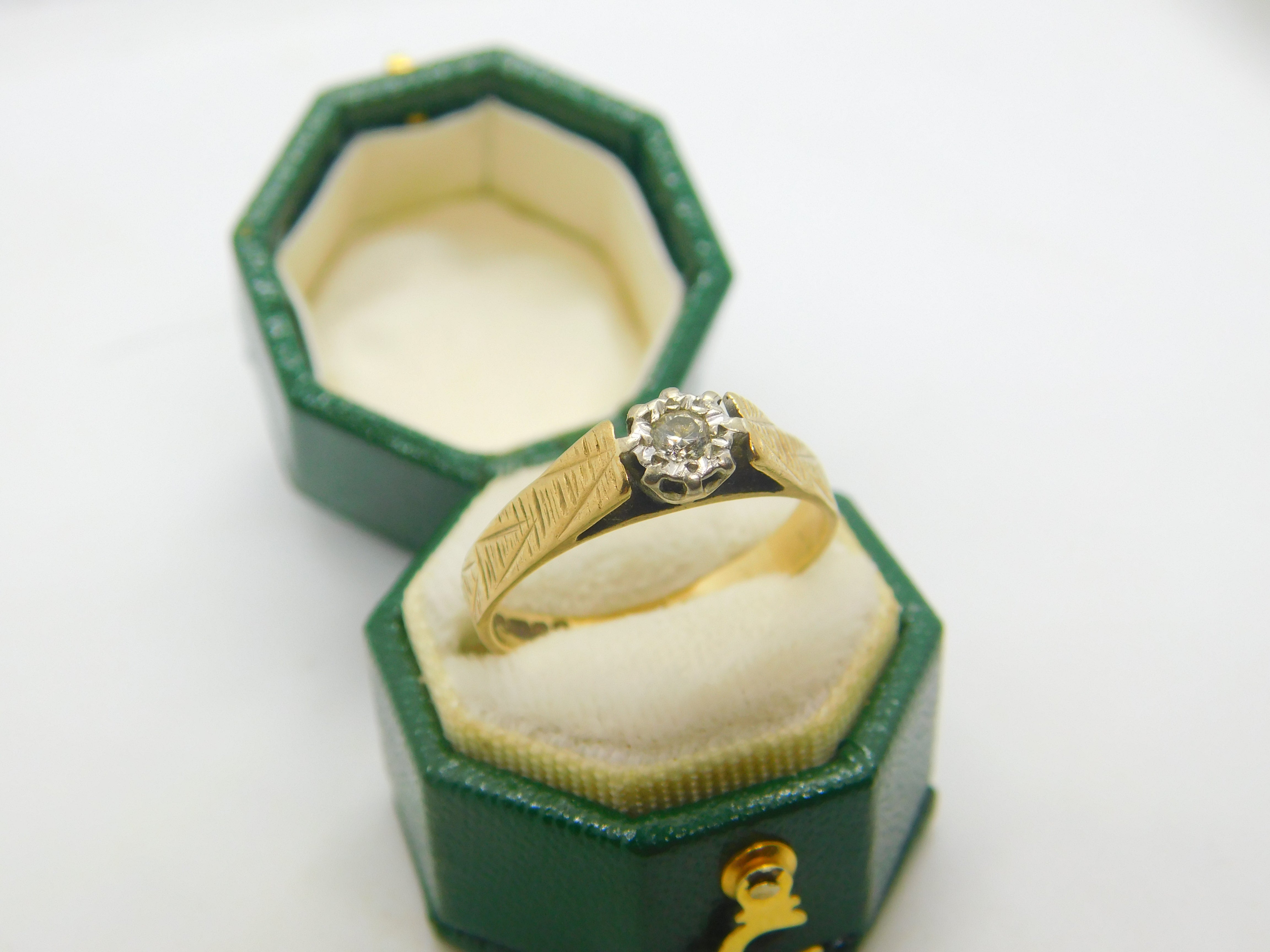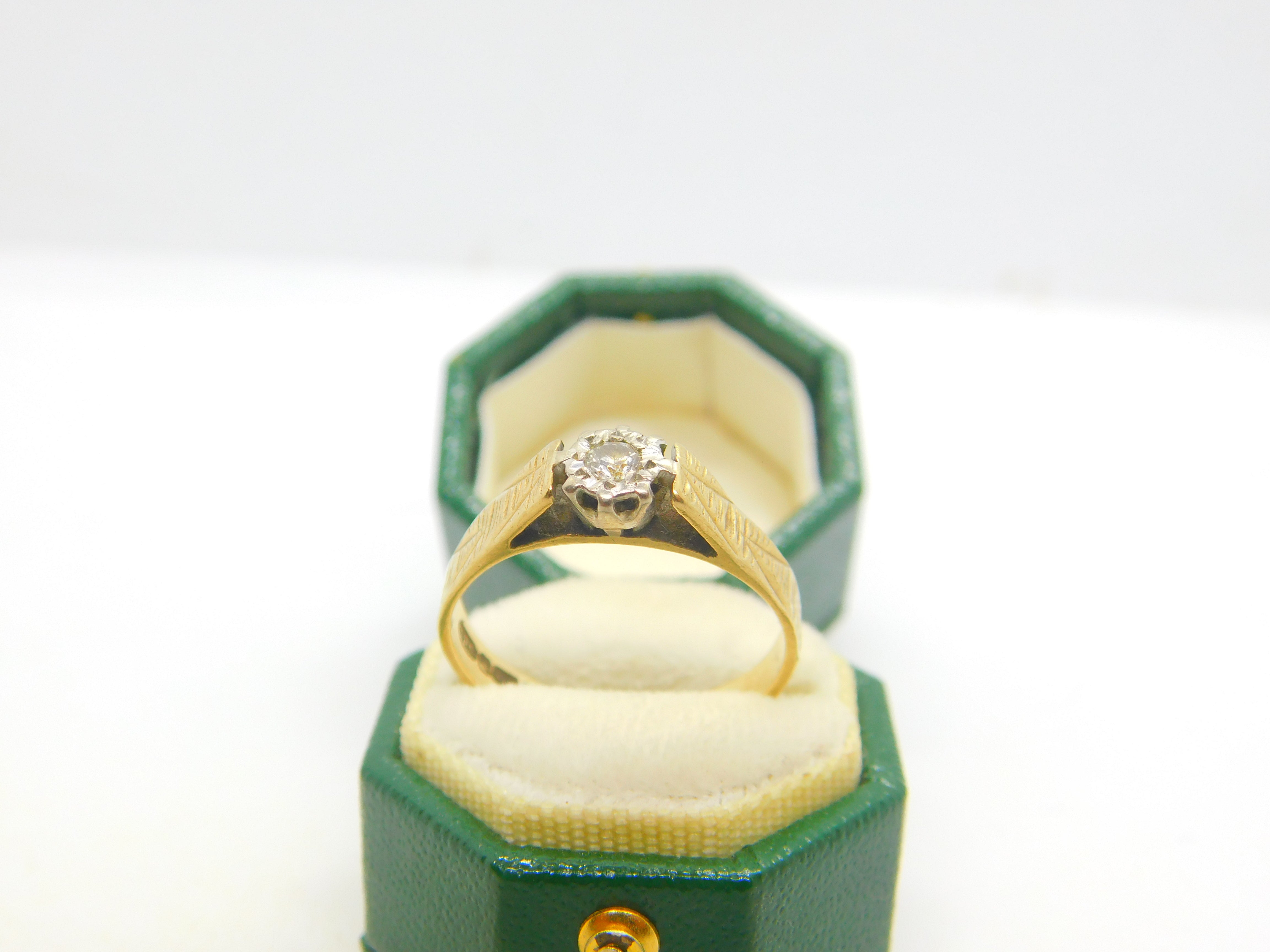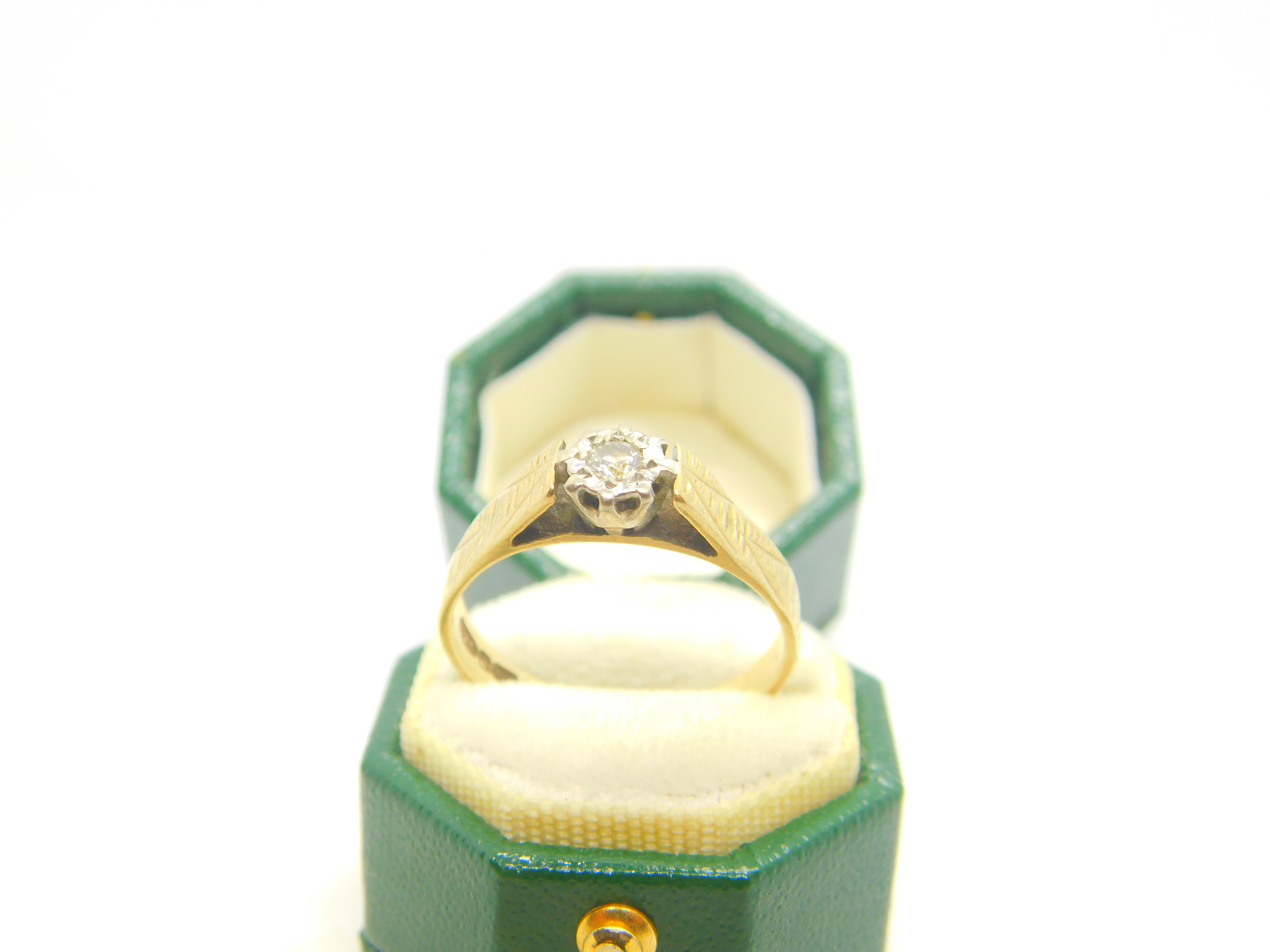 9ct Yellow Gold & 0.1ct Solitaire Set Dress Ring Vintage 1950 Birmingham