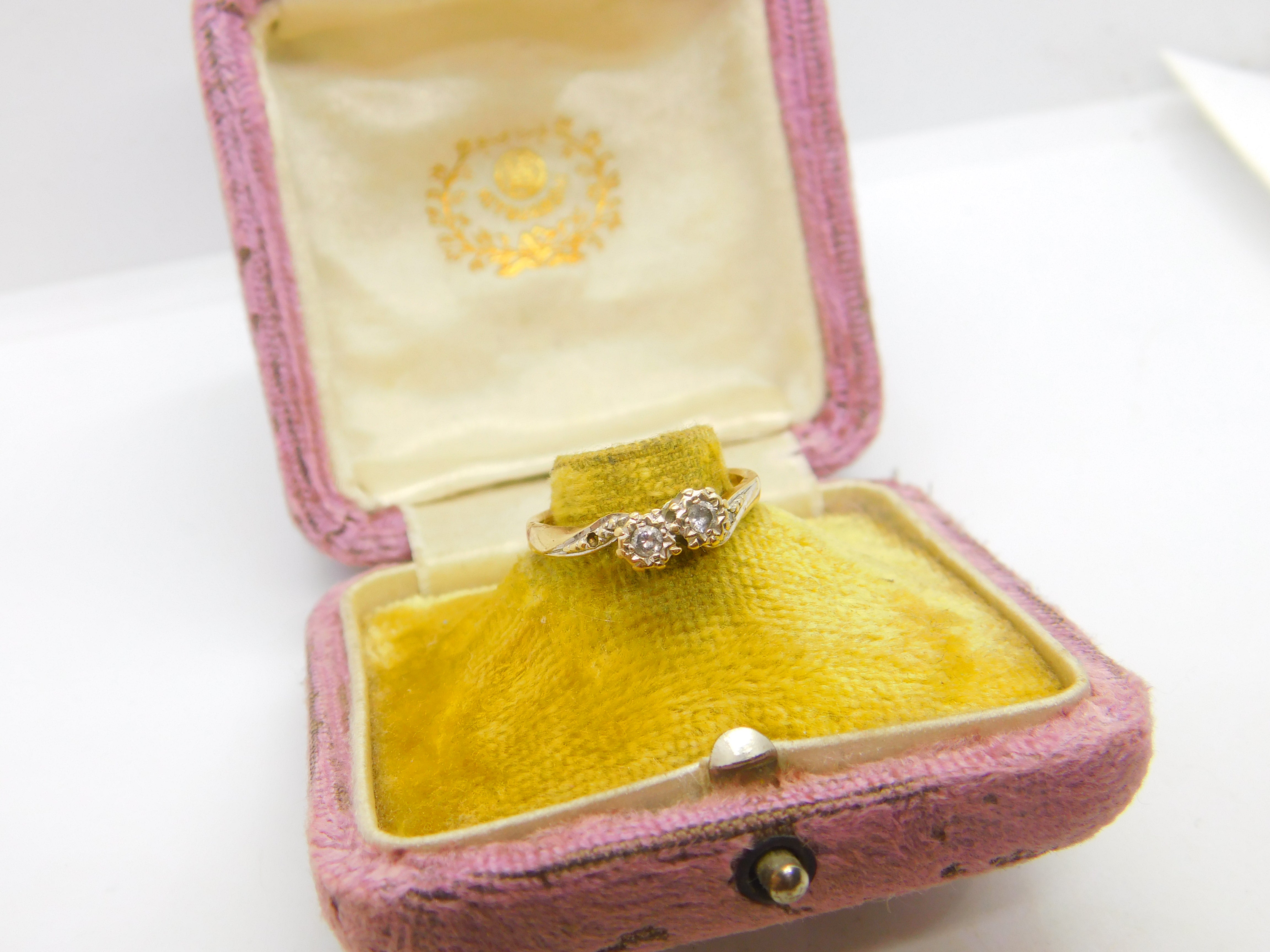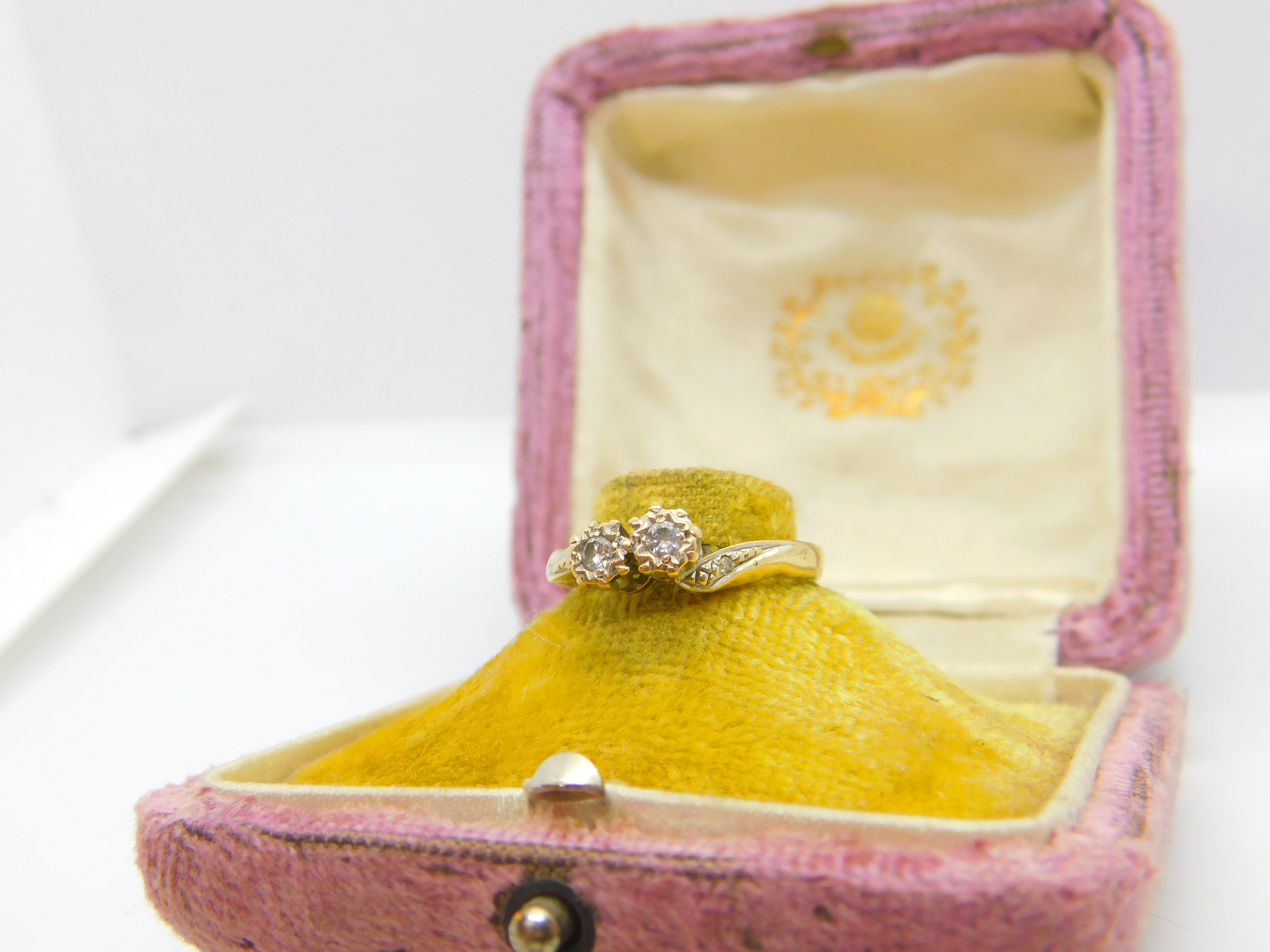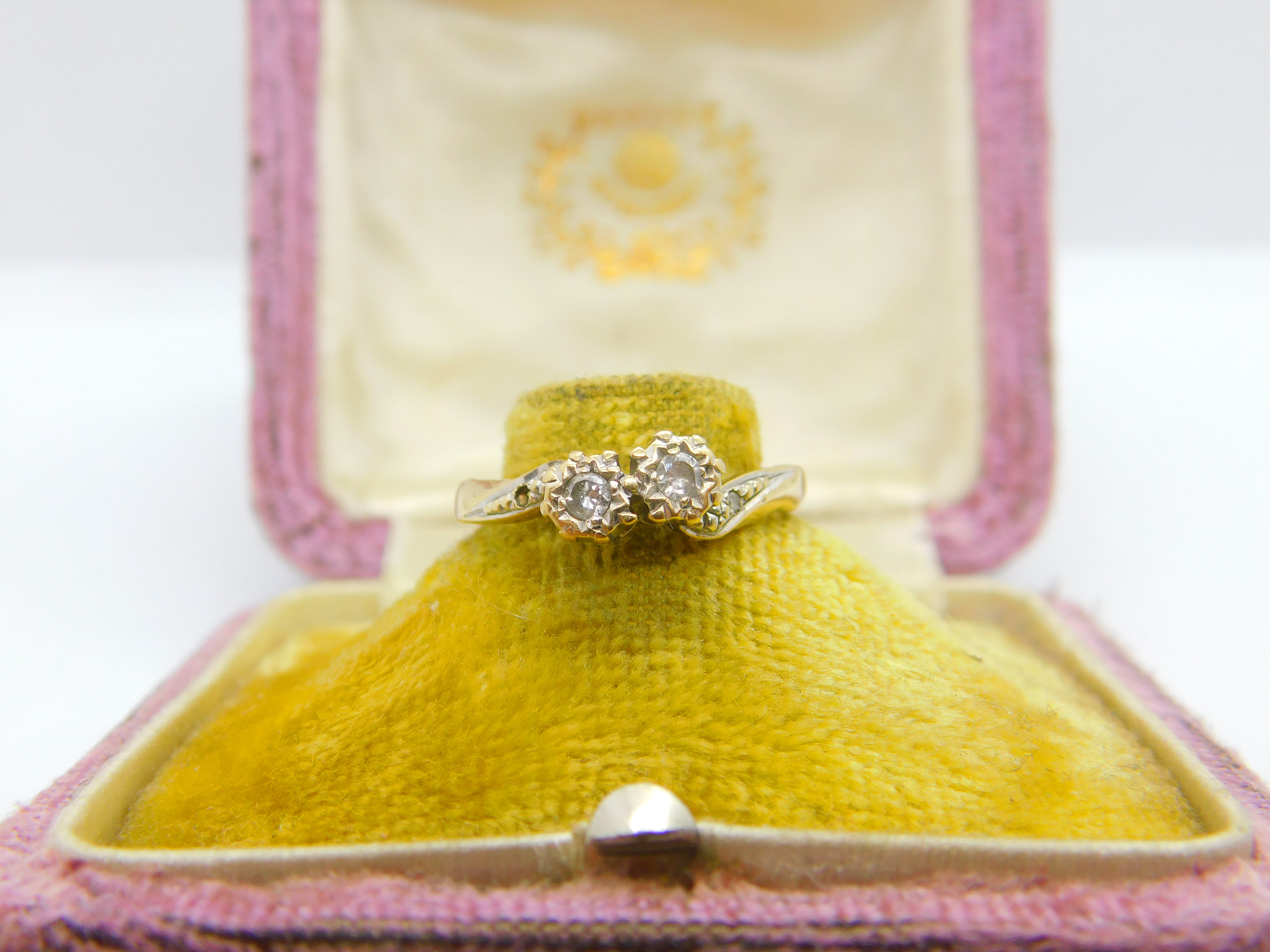 9ct Yellow Gold & 0.2ct Diamond Crossover Band Ring Vintage Birmingham c1970