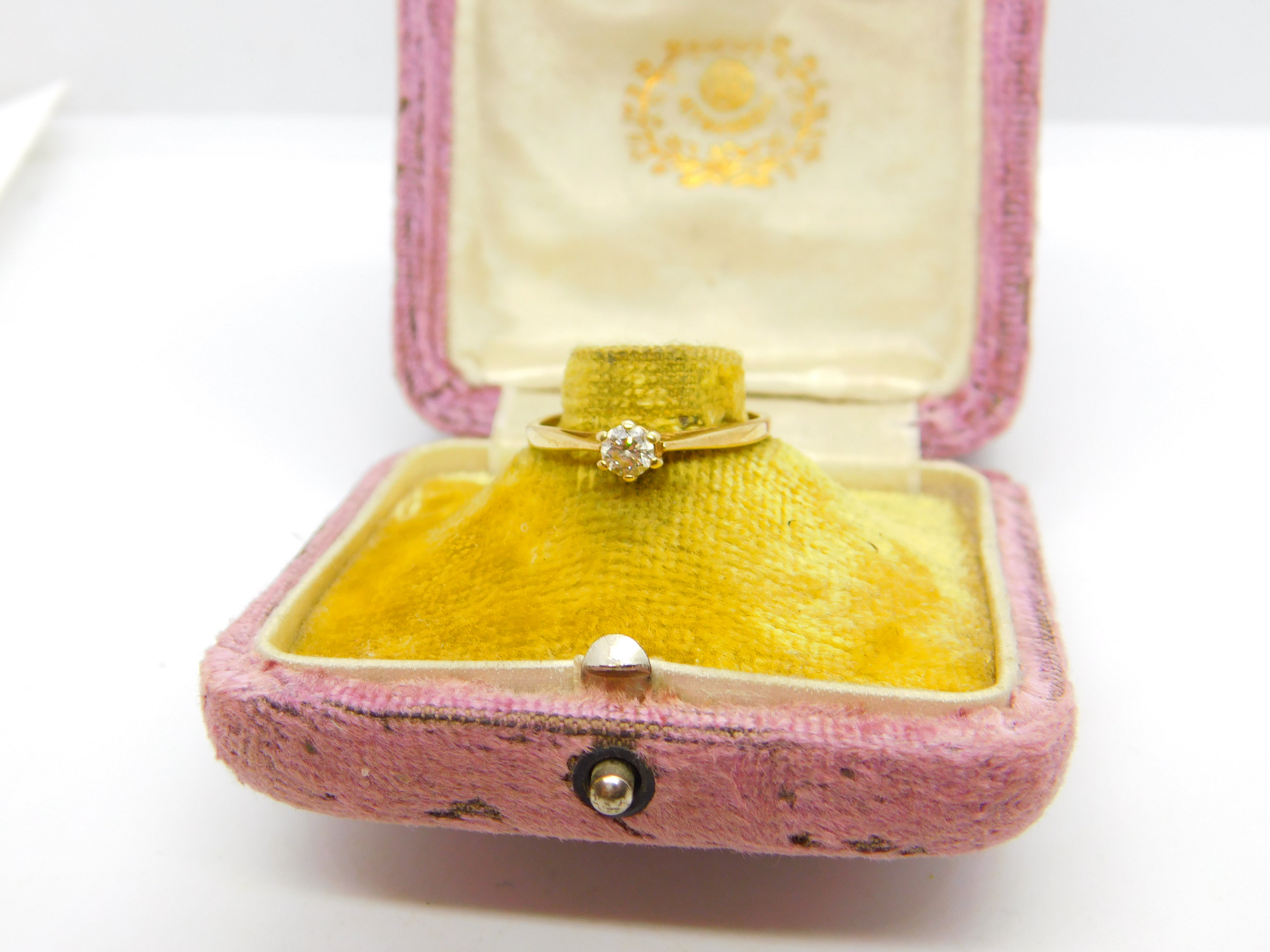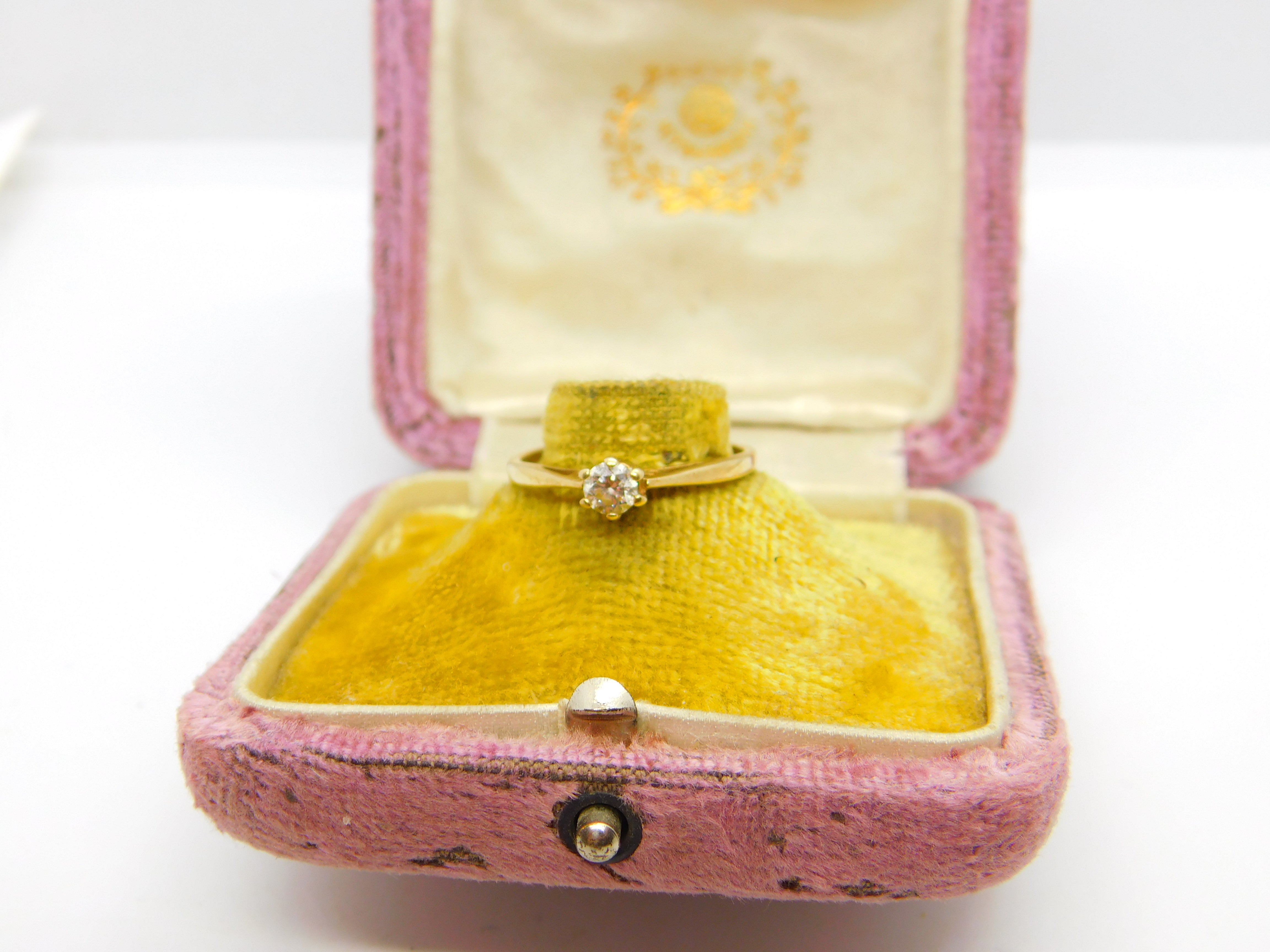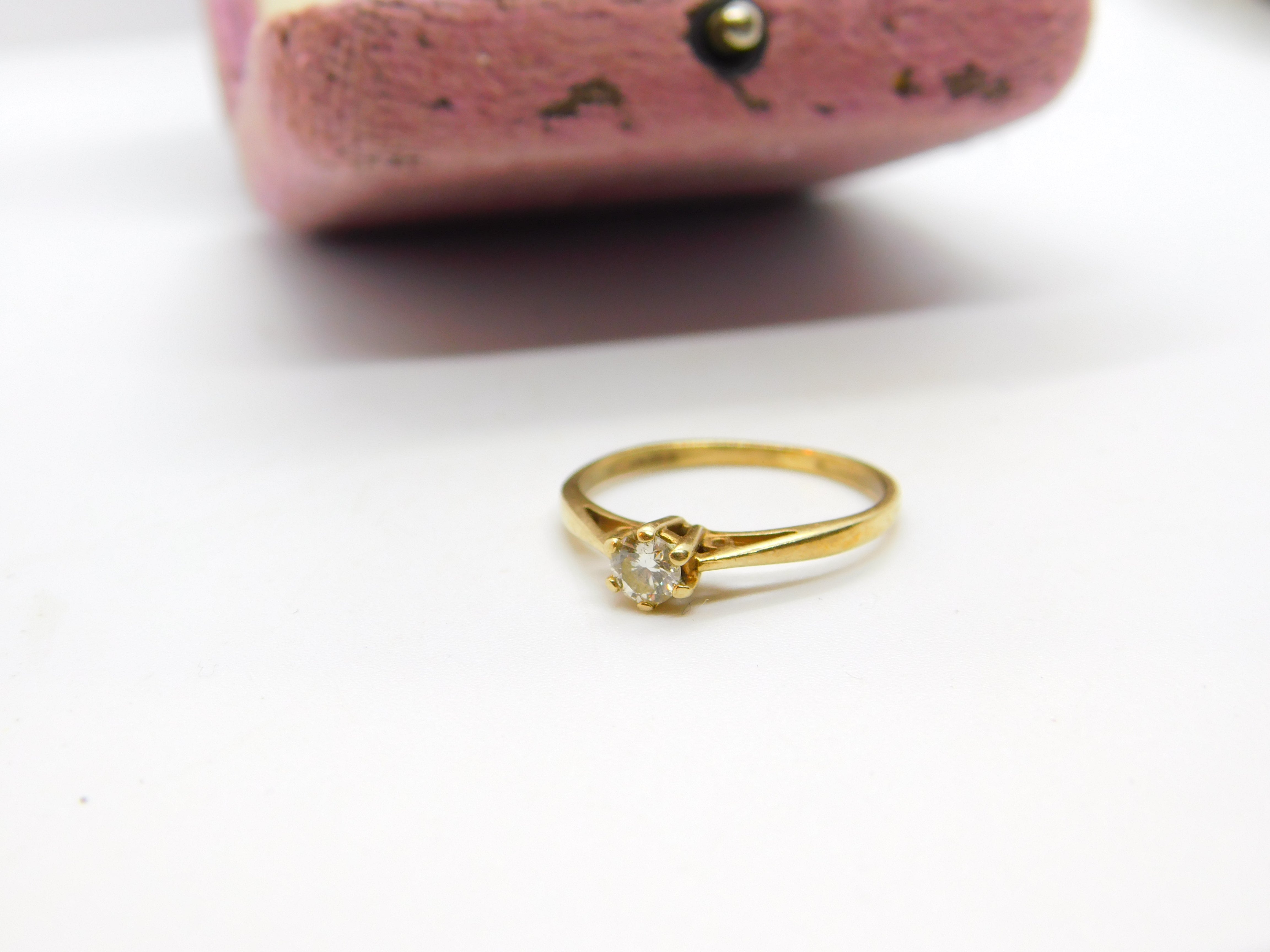 9ct Yellow Gold & 0.2ct Diamond Set Solitaire Ring Vintage c1990 Birmingham