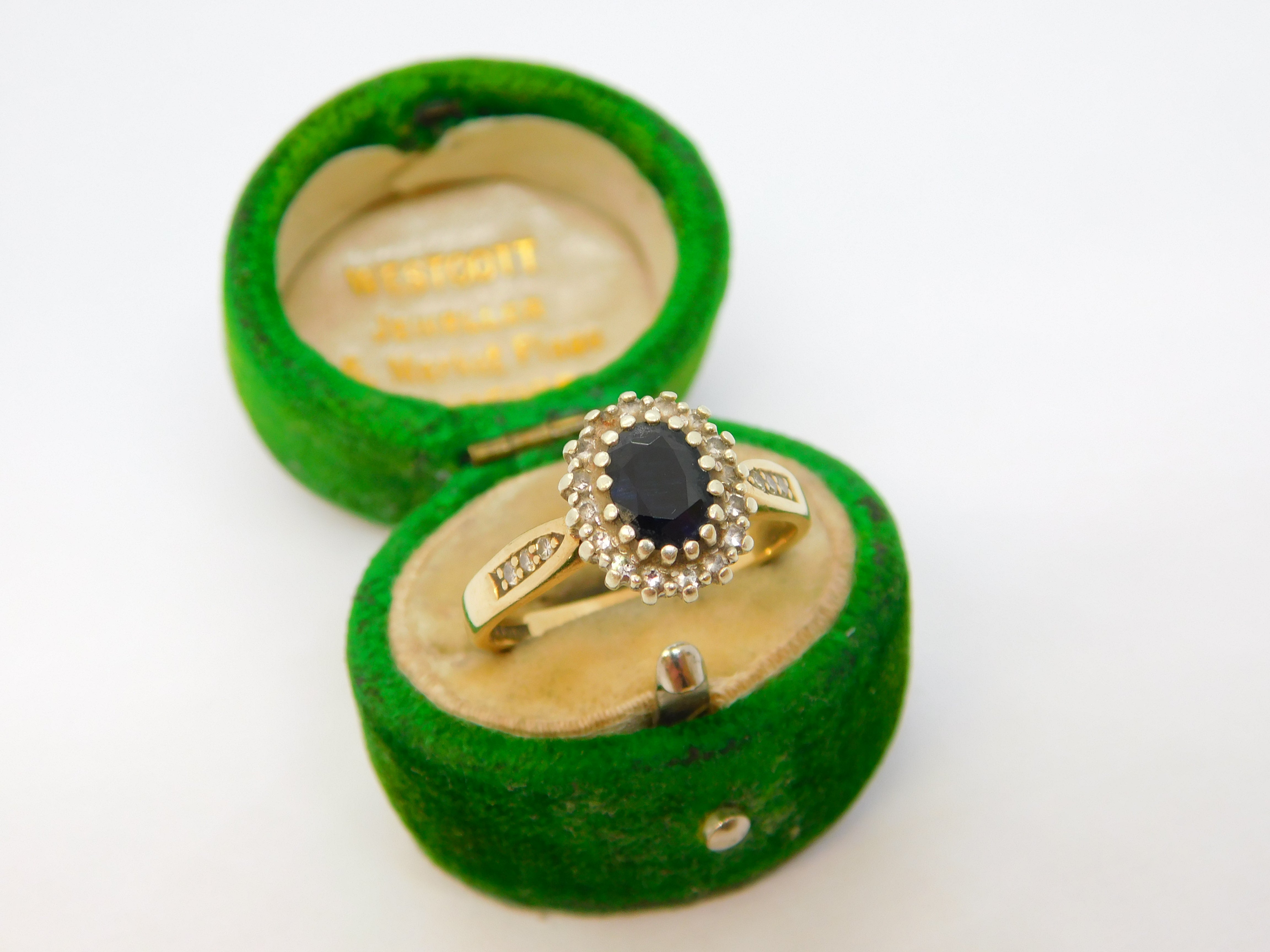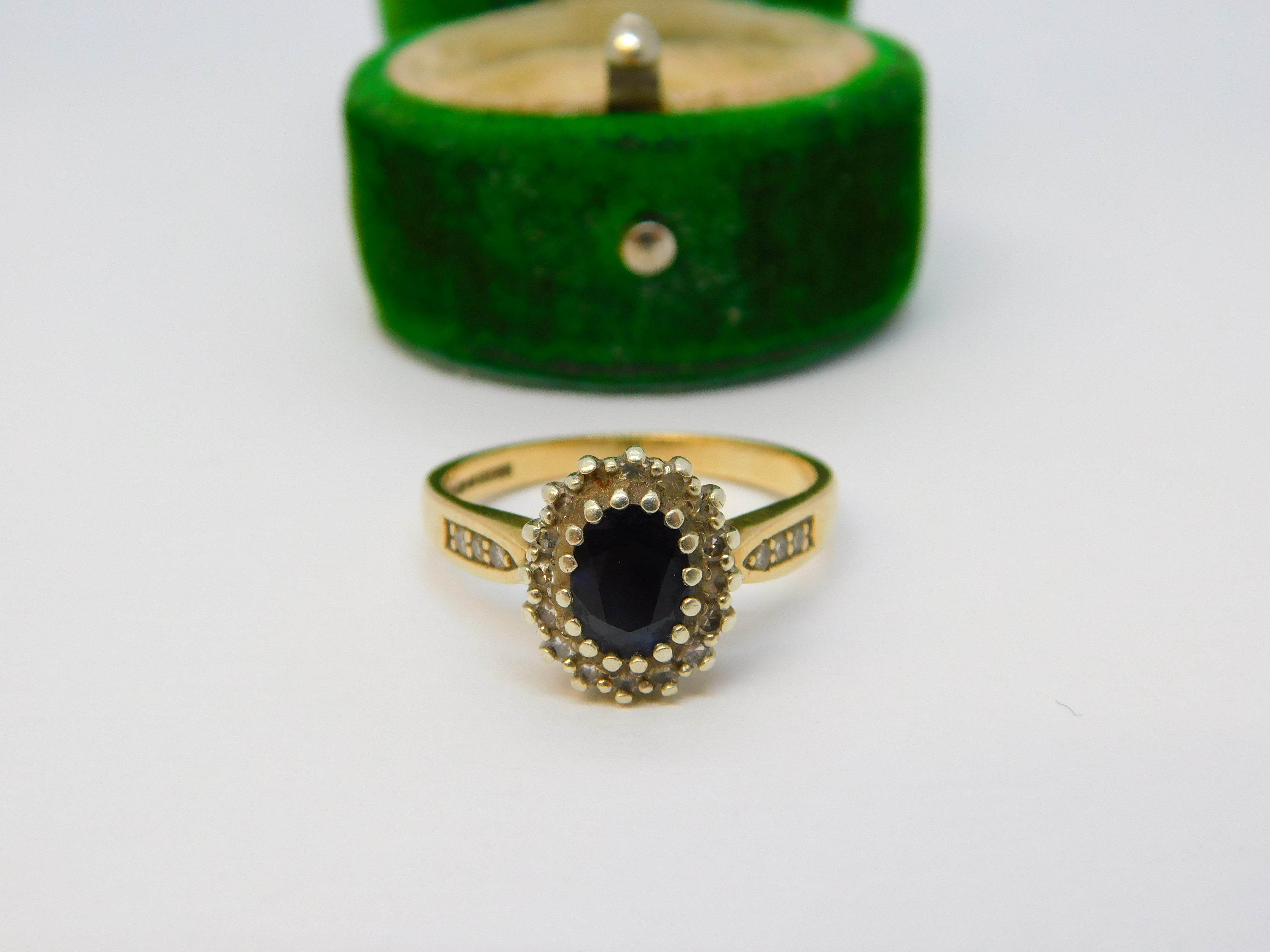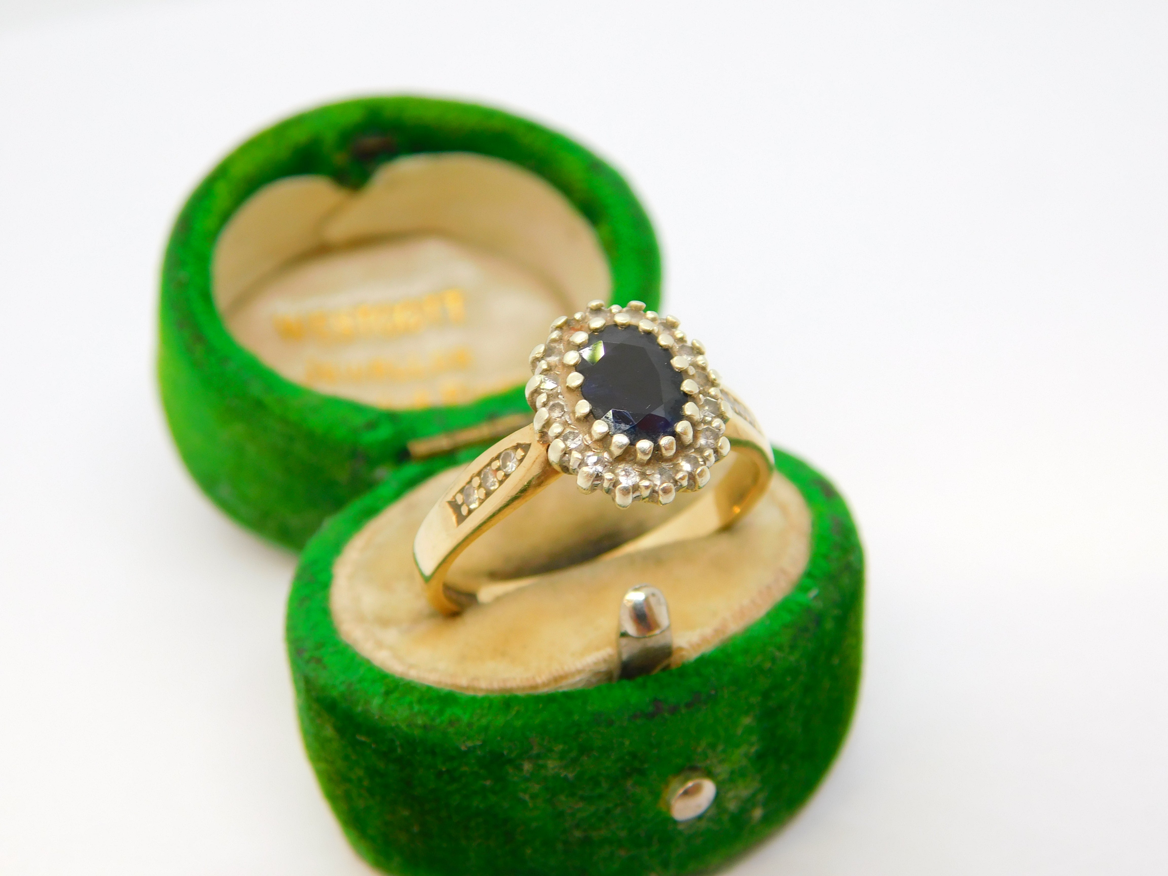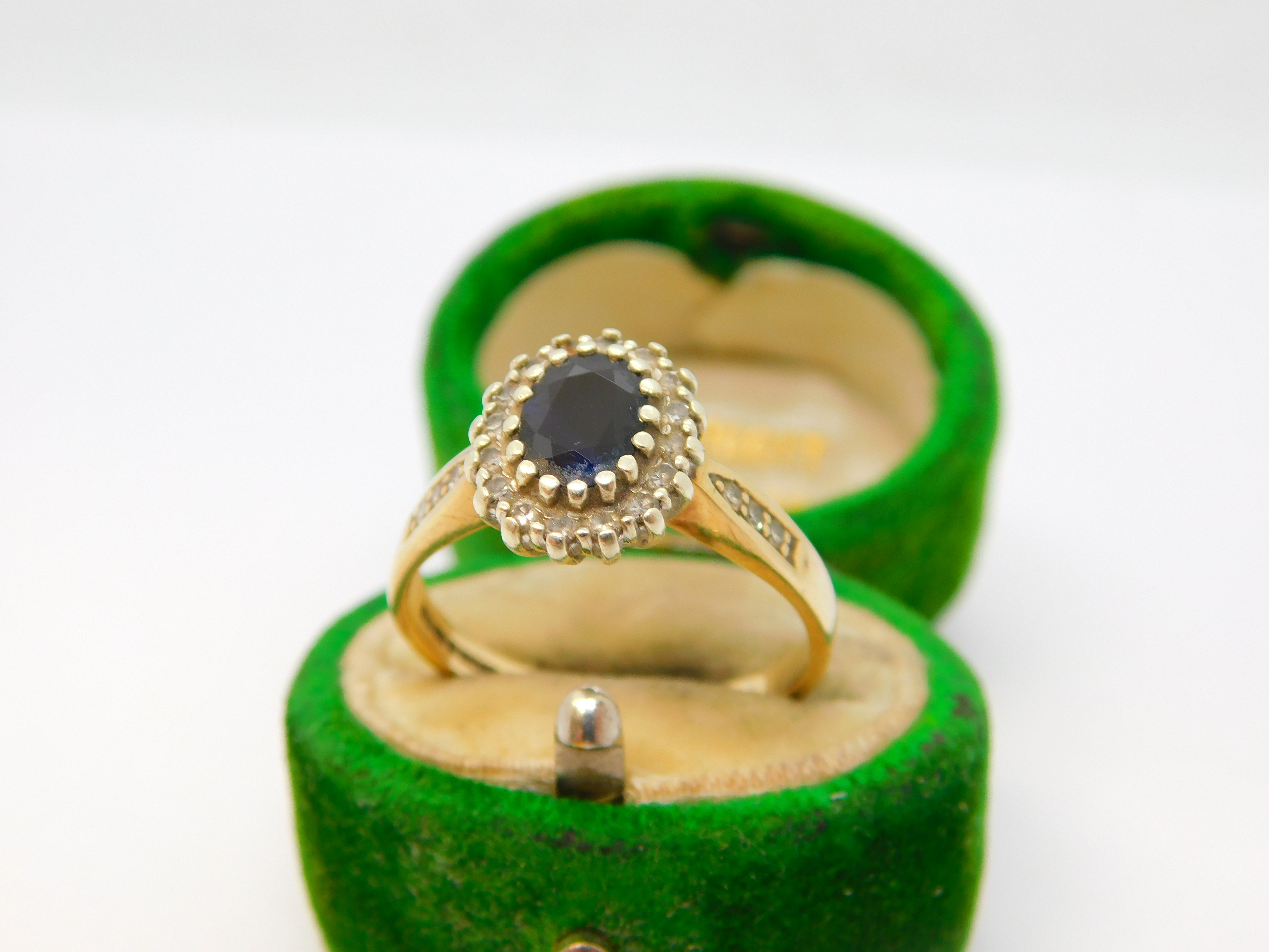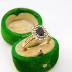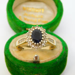 9ct Yellow Gold, 0.4ct Sapphire & Diamond Cluster Ring Vintage 1988 London
