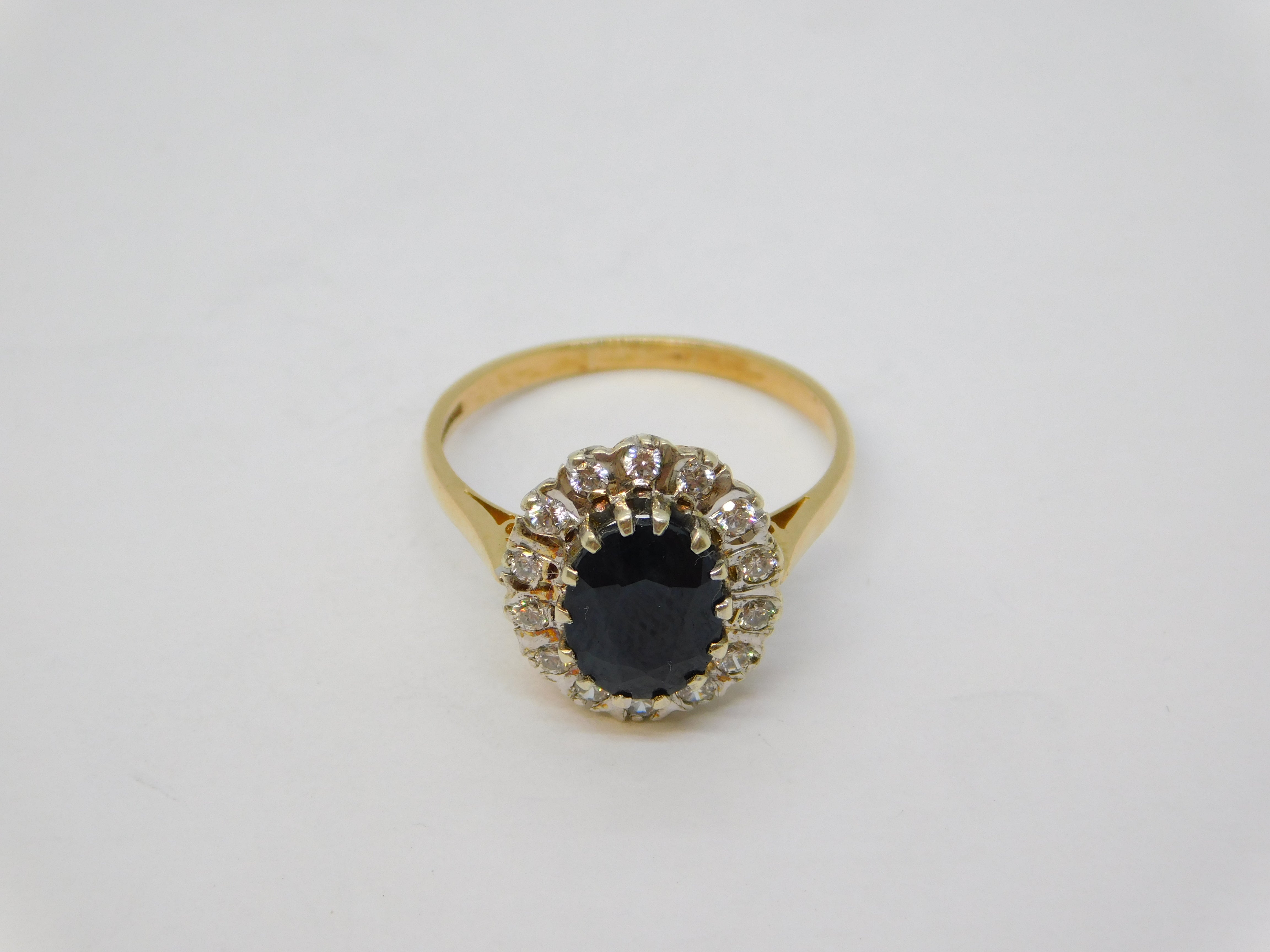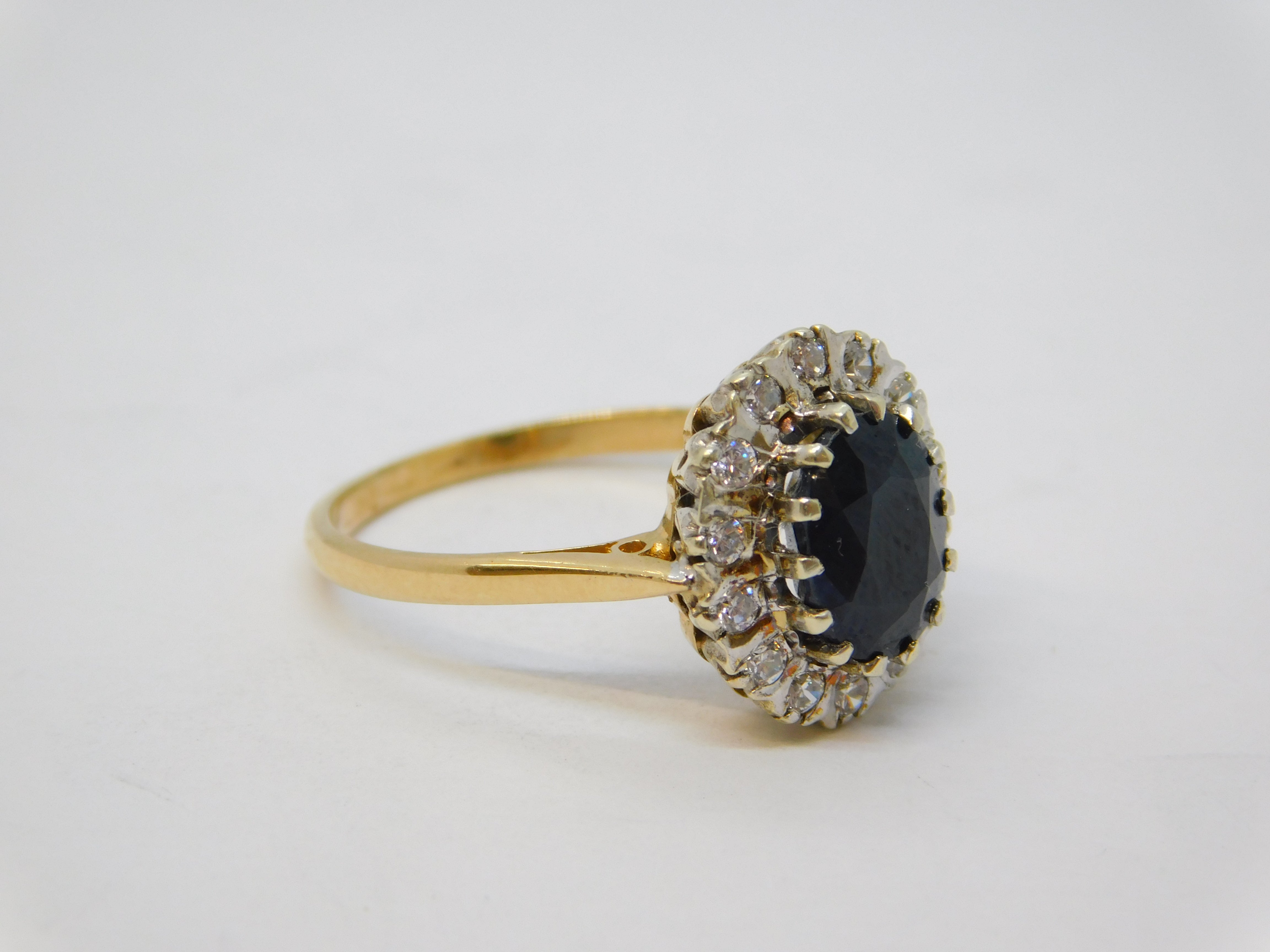 9ct Yellow Gold 2ct Sapphire & Spinel Set Engagement Ring Vintage 1986 London